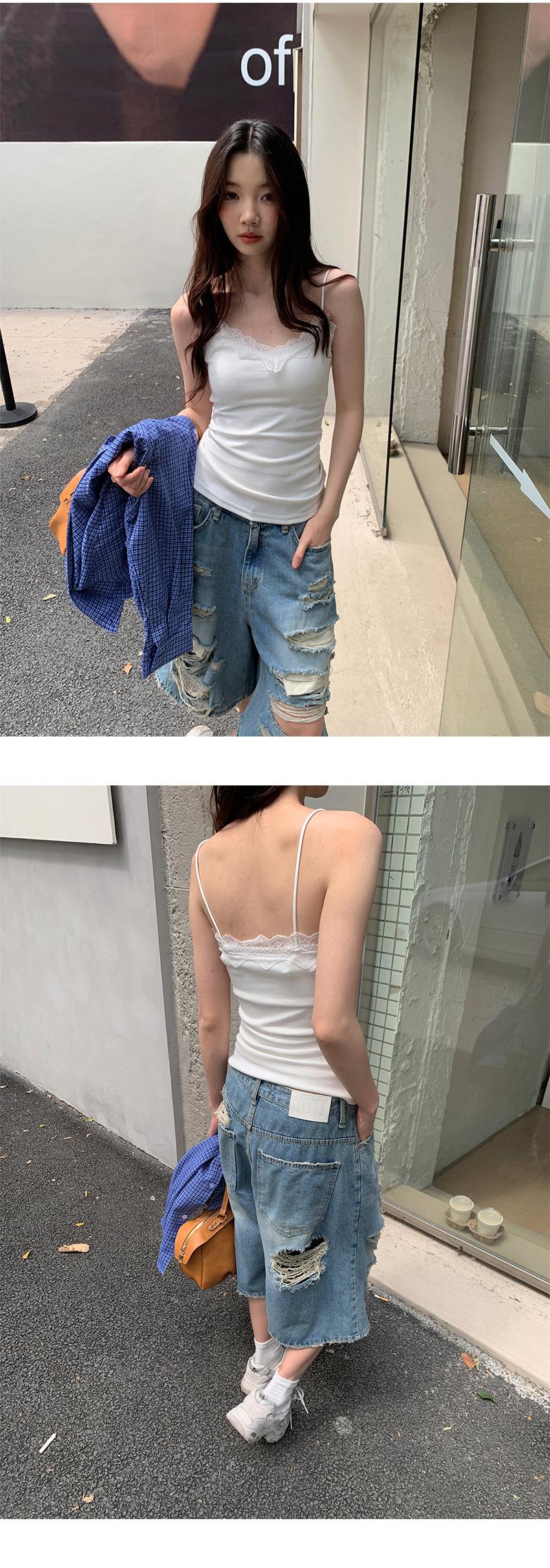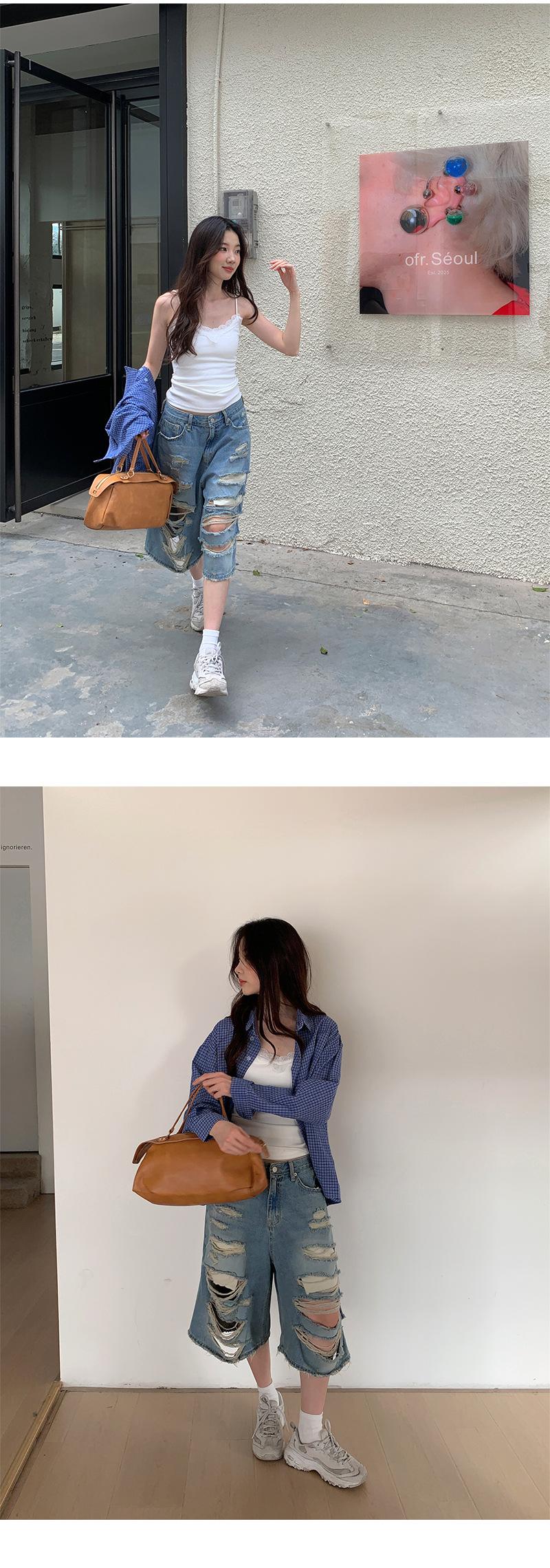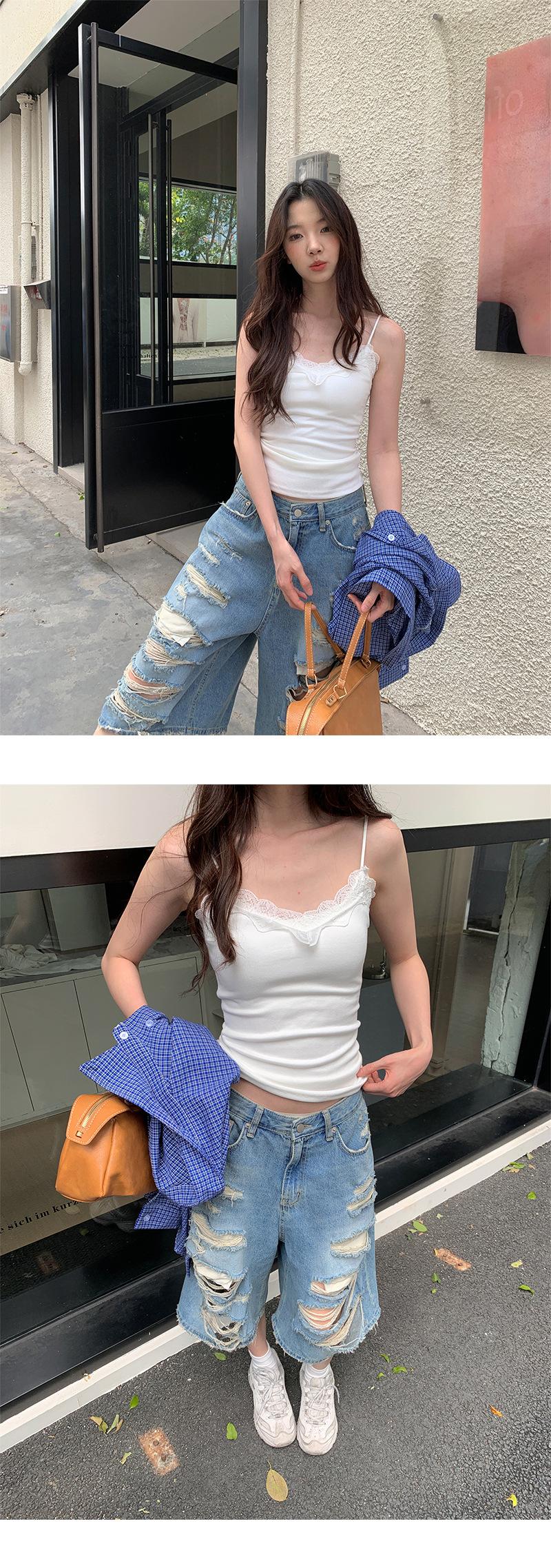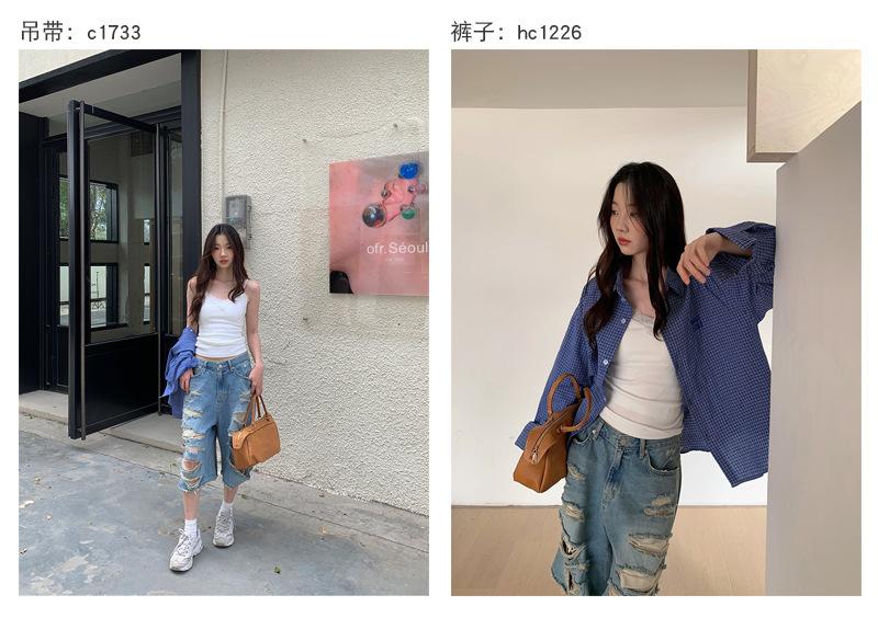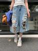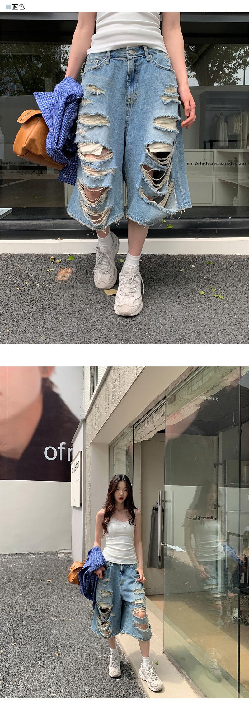 Yuyi - Nuevos pantalones vaqueros rasgados de estilo americano de verano 2025 para mujer, estilo retro de pierna ancha, hc1226