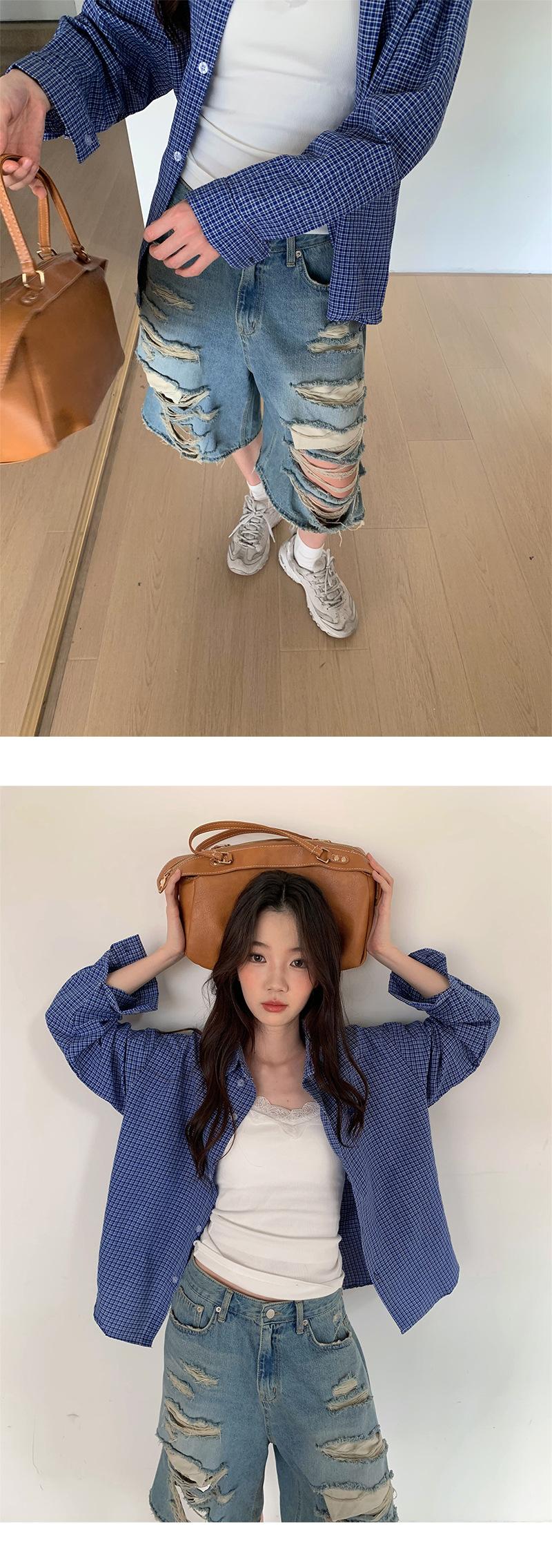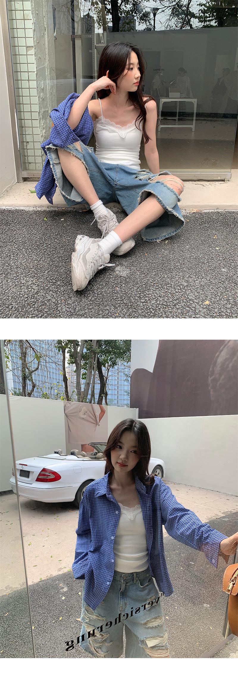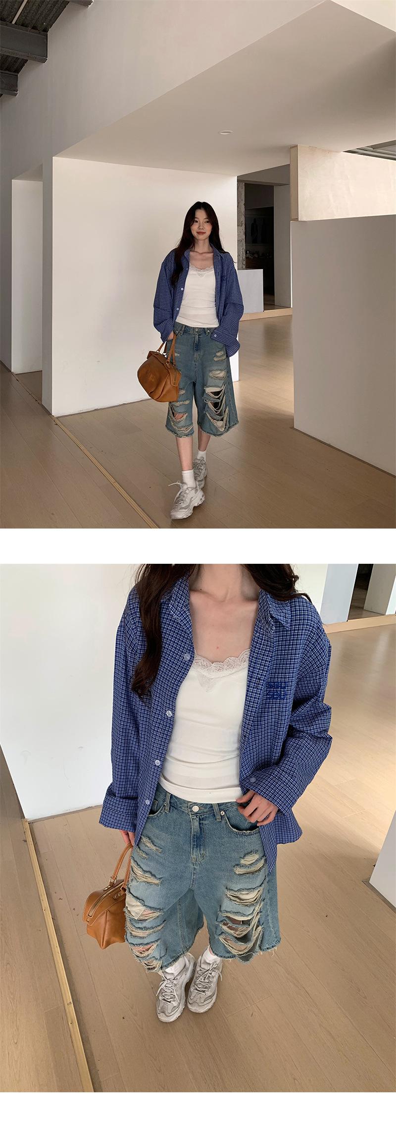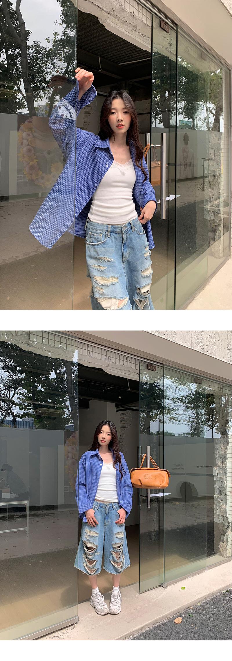 Yuyi - Nuevos pantalones vaqueros rasgados de estilo americano de verano 2025 para mujer, estilo retro de pierna ancha, hc1226