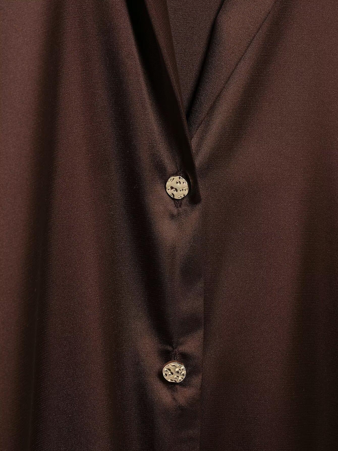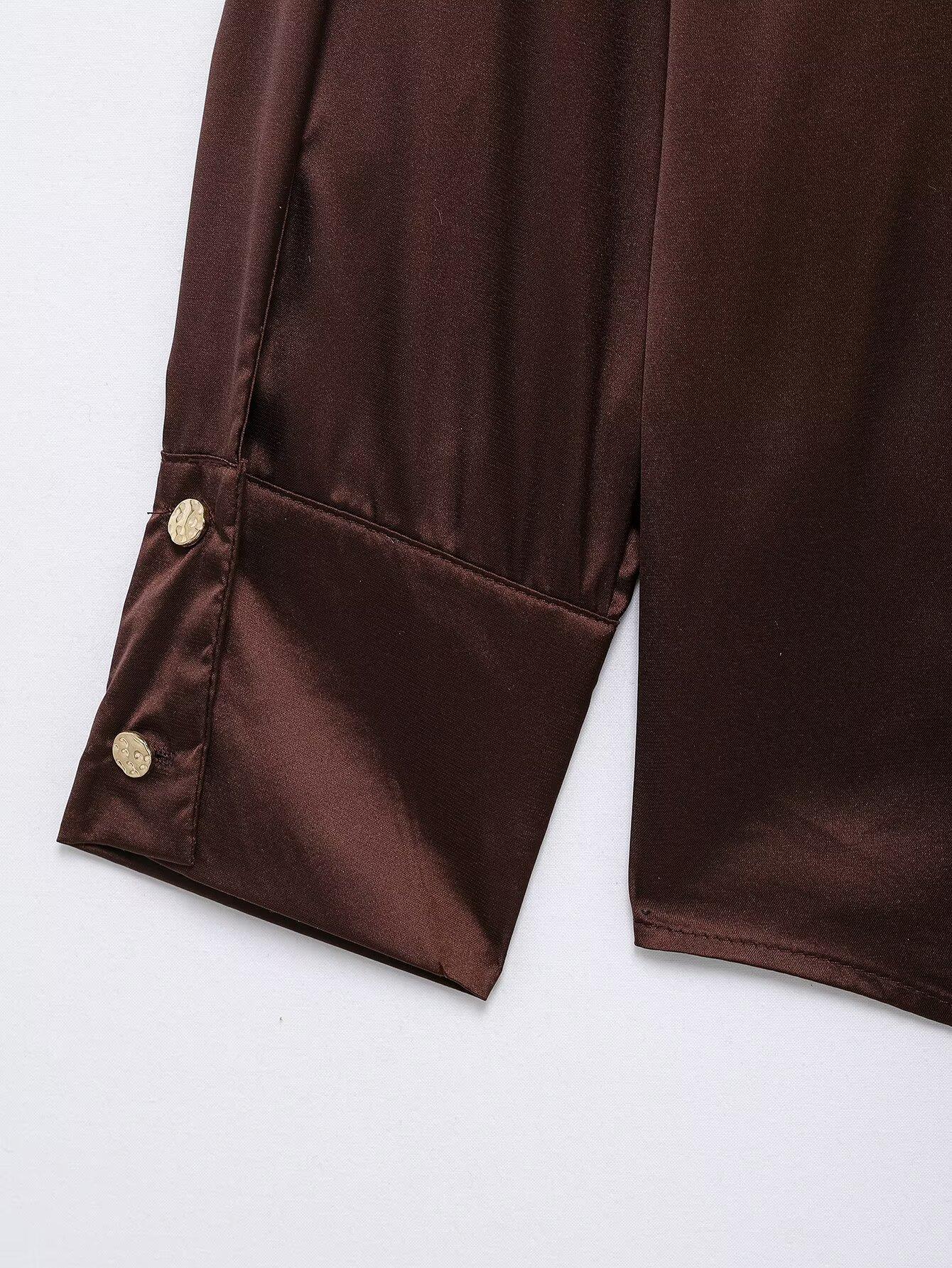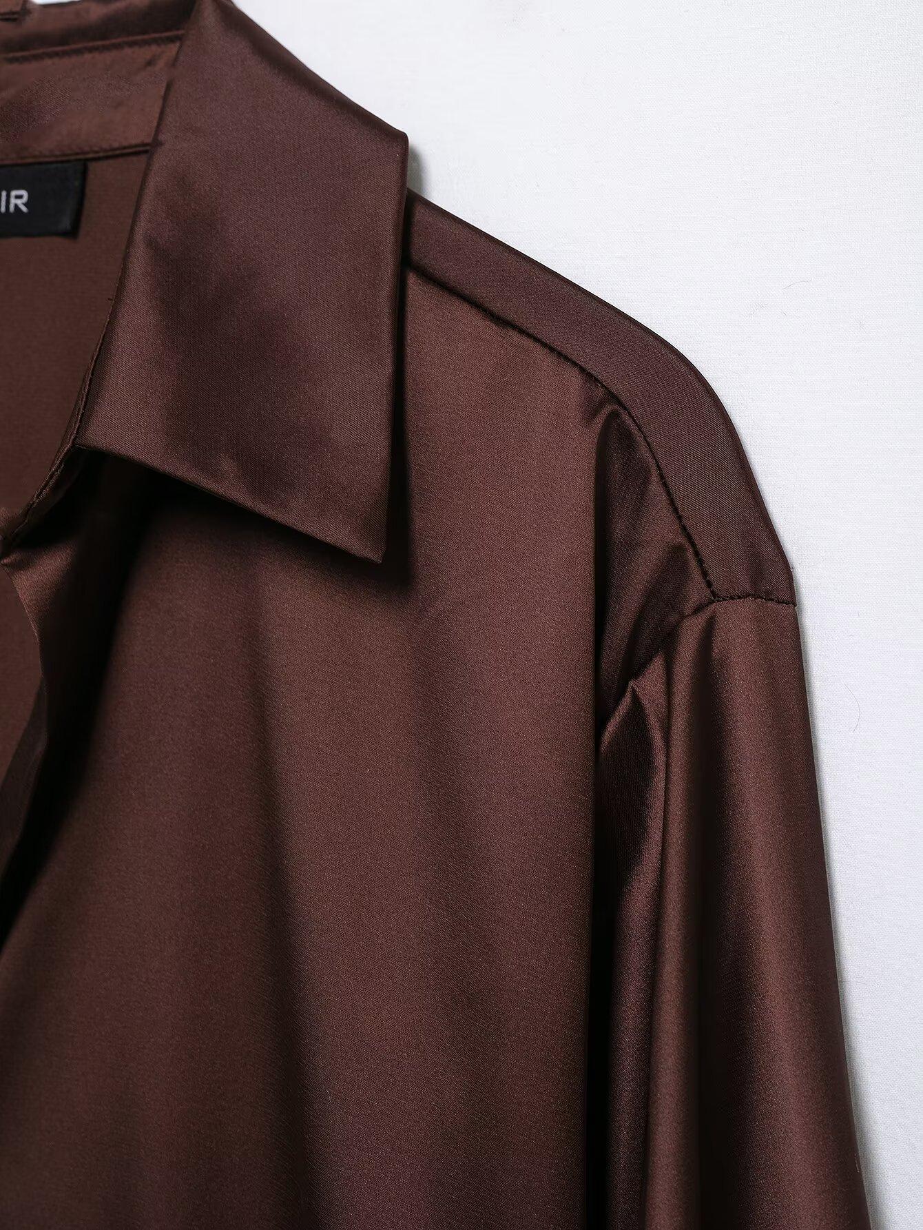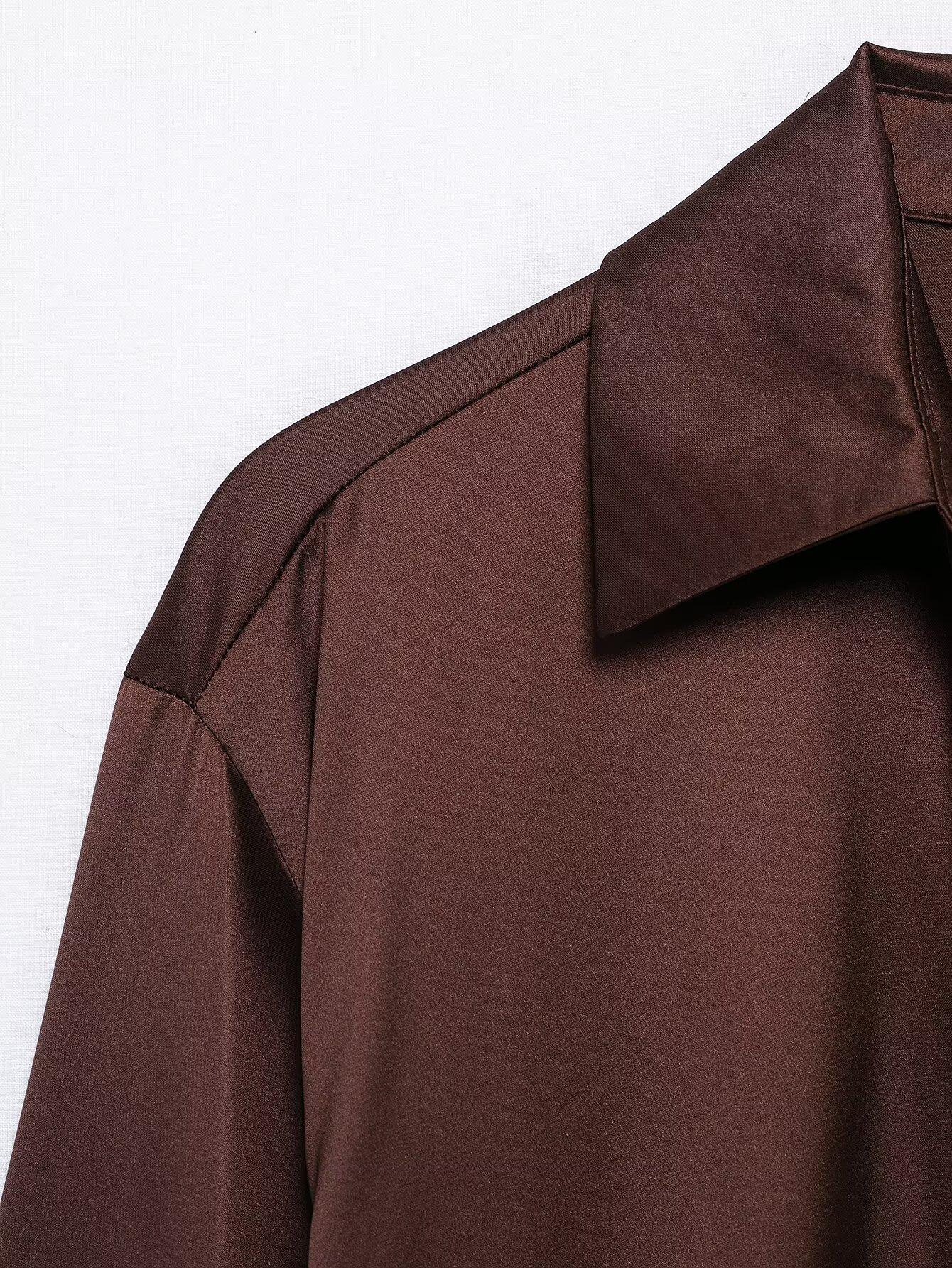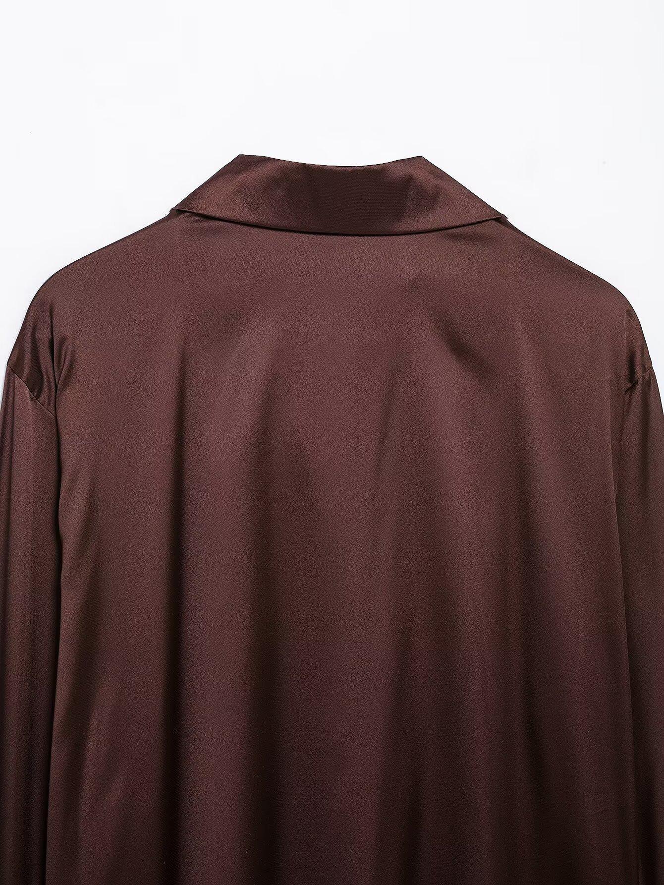 Camisa de satén de seda de manga larga con solapa de color liso, holgada, para mujer europea y americana, primavera 2025