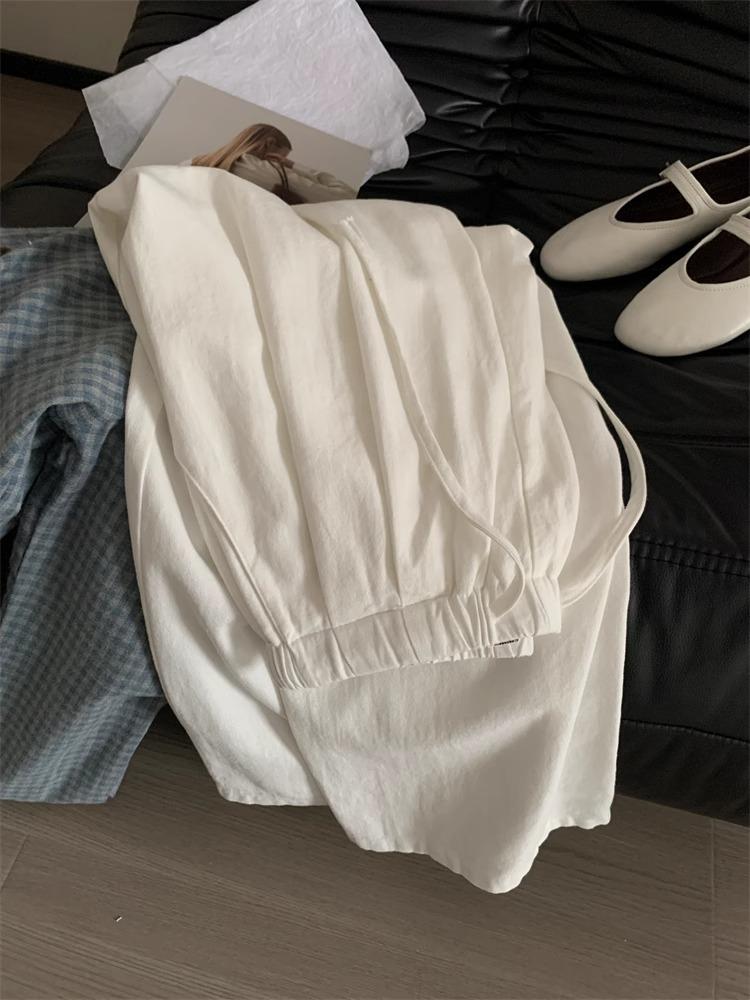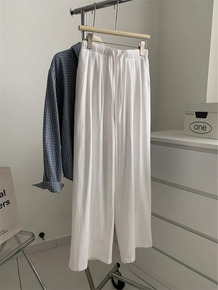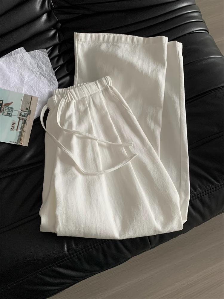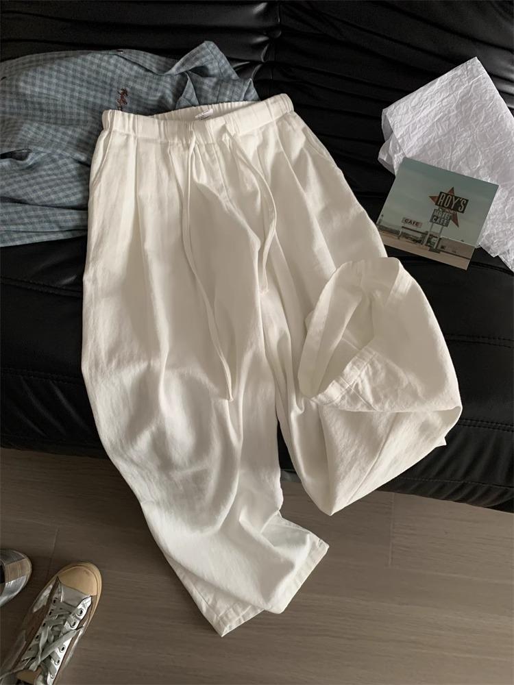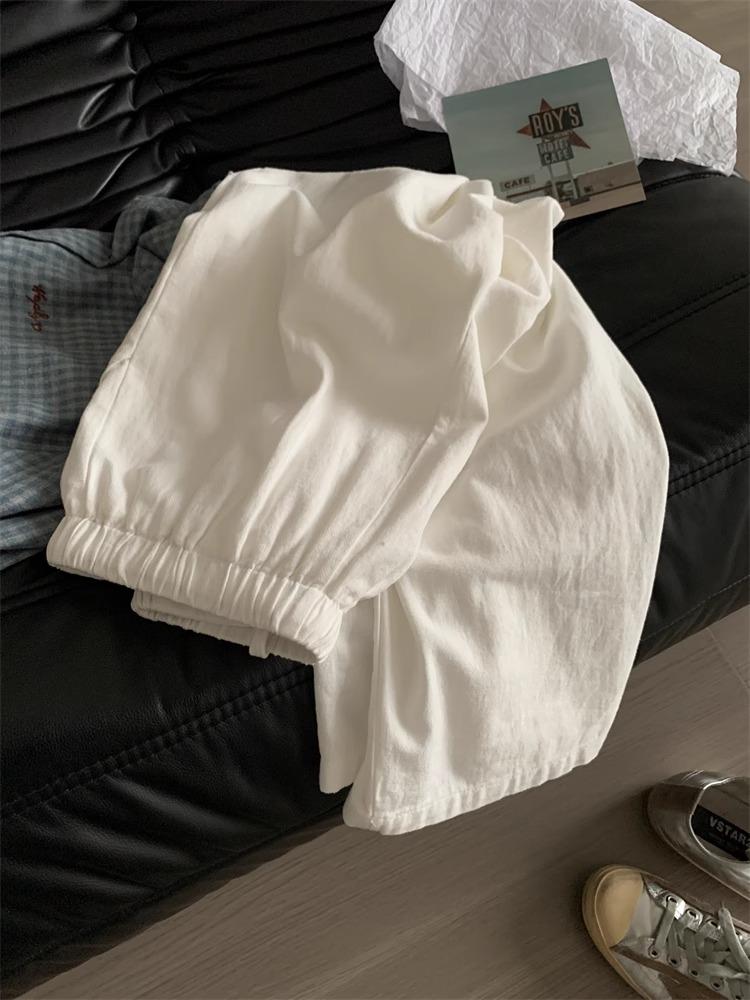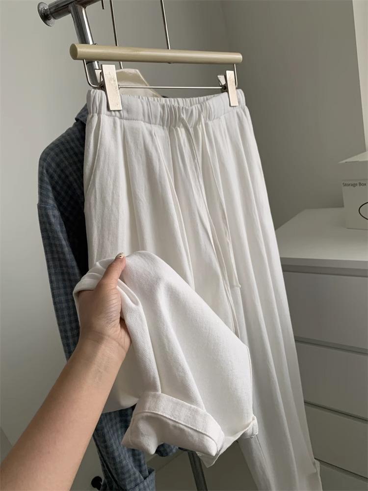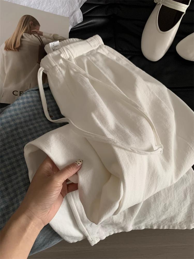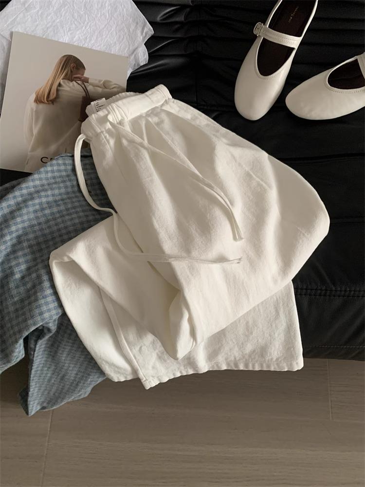 Pantalones blancos de imitación de lino de estilo temperamental para mujer, pantalones casuales rectos con forro de alta gama, sueltos e informales, para primavera y verano