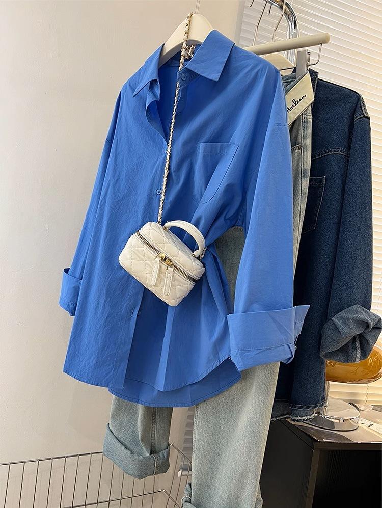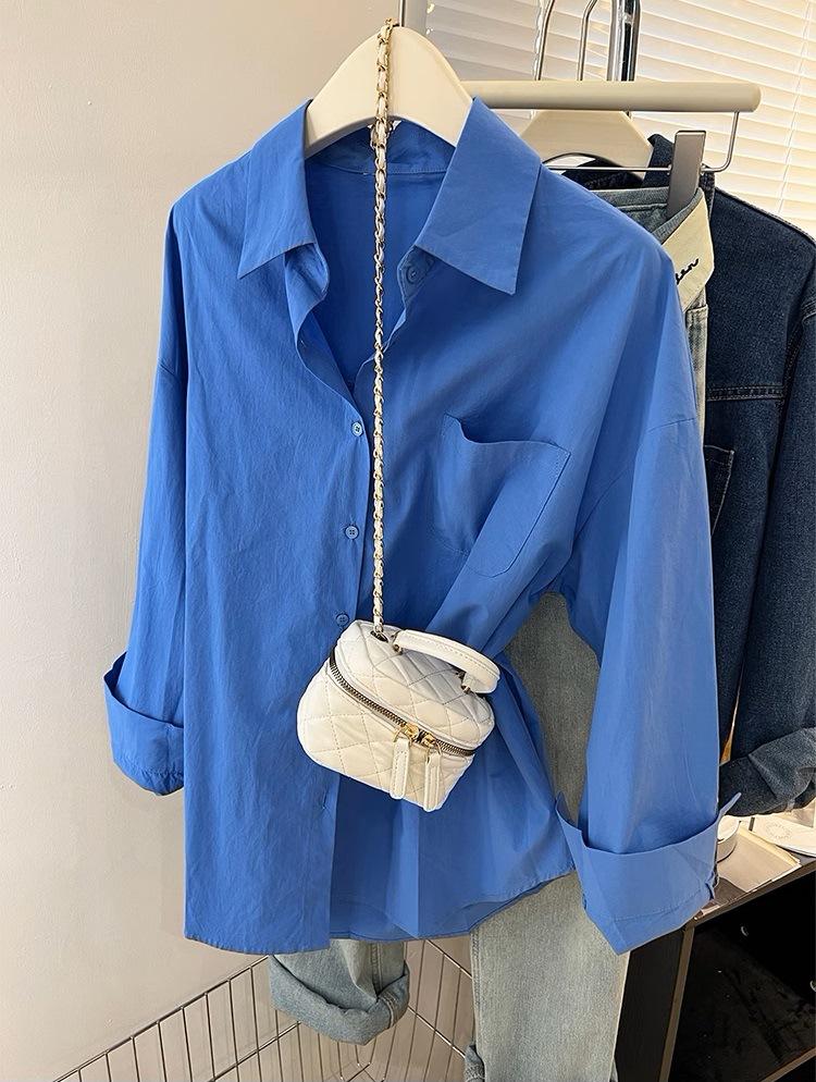 Compra Camisa azul para mujer, primavera y otoño 2024, nuevo diseño, estilo nicho, informal, holgada, de manga larga, abrigo superior al por mayor en Joom.pro