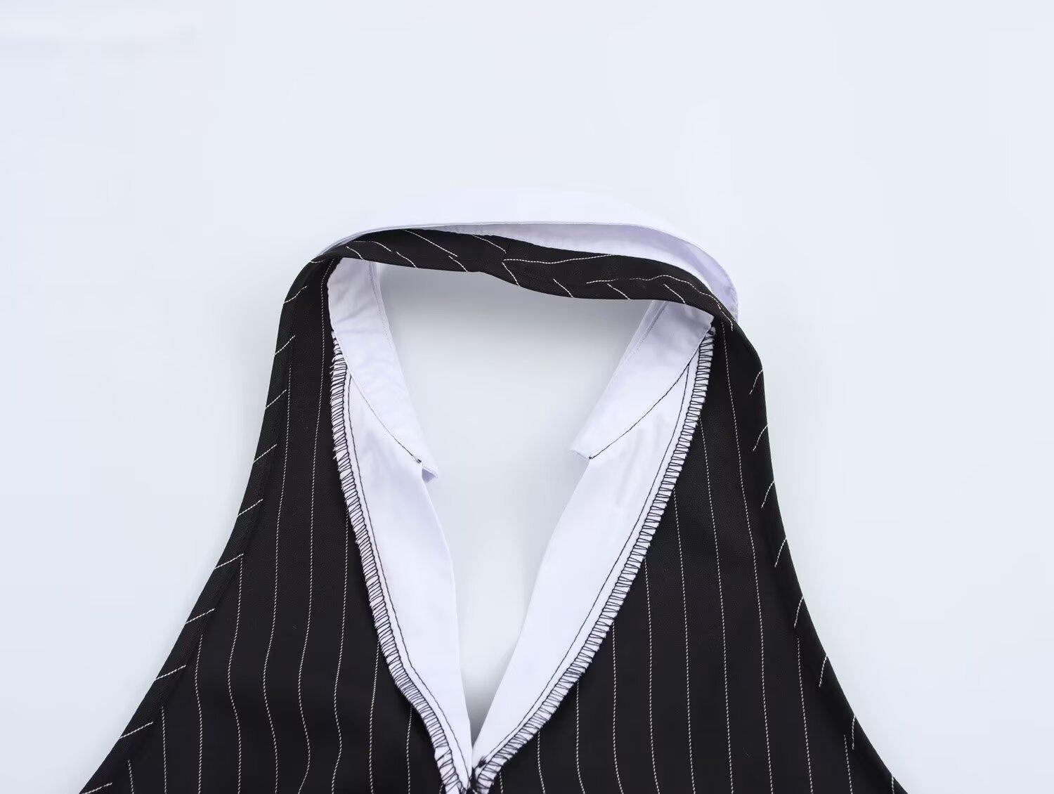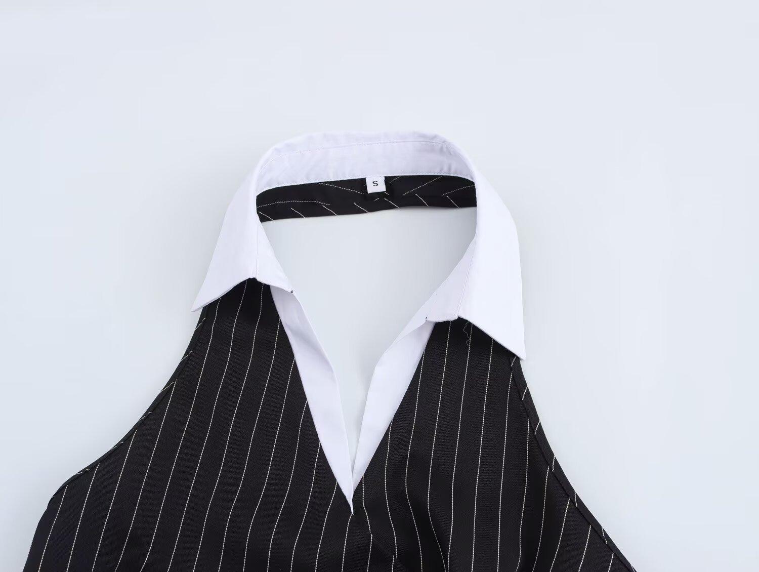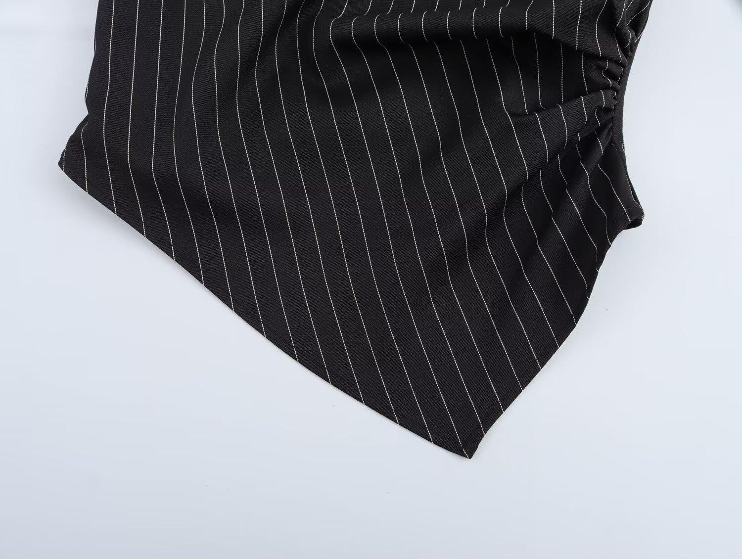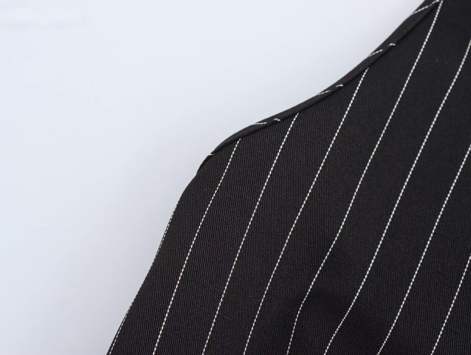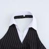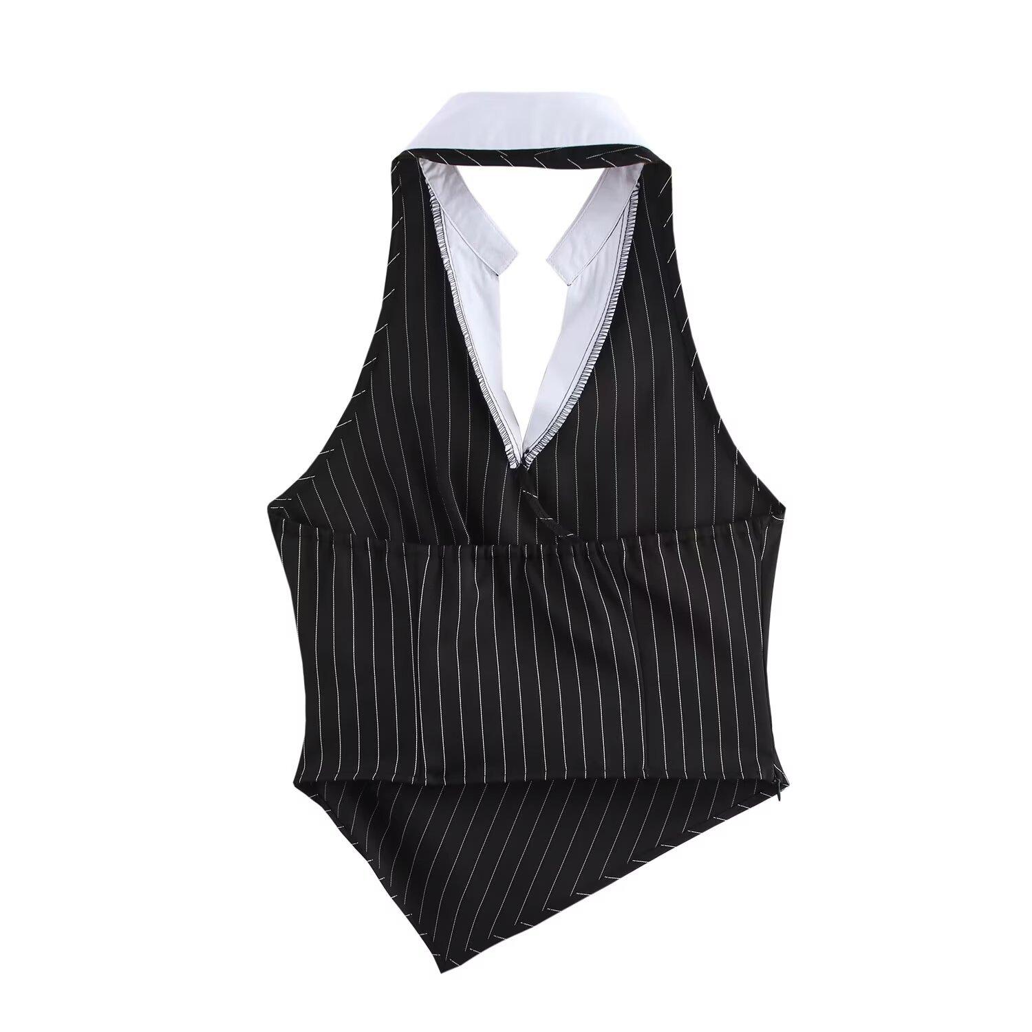 6995-25 Primavera Nuevo Viento Europeo y Americano Raya Solapa en Contraste Costuras Chaqueta Irregular Cuello Inclinado Chaleco