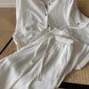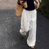 Pantalones de pierna ancha con colgante blanco delgado para mujer, Verano 2025, Nuevo estilo coreano, Algodón y lino, Adelgazantes, Rectos