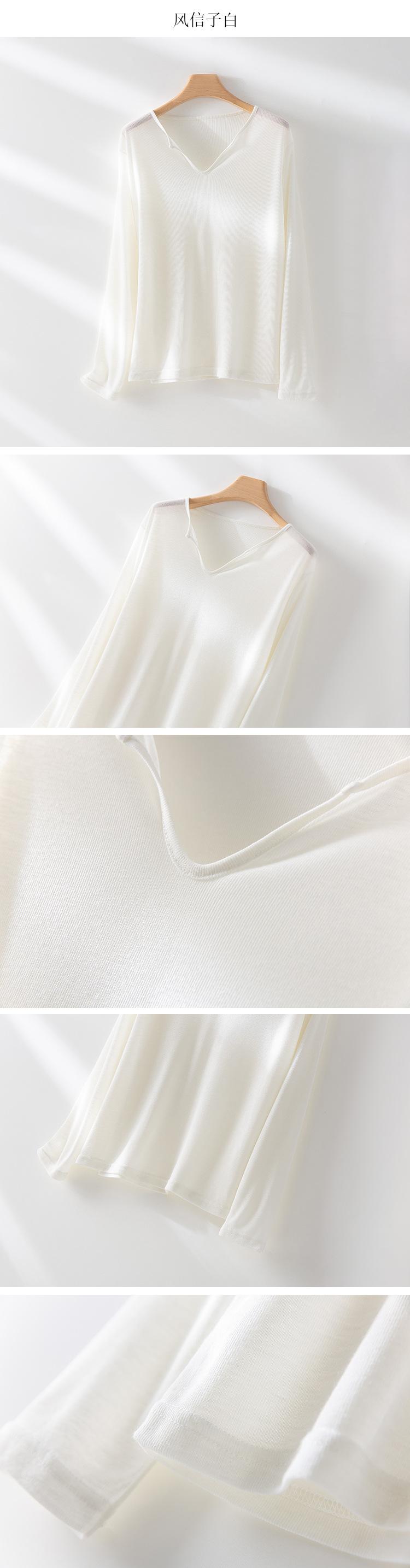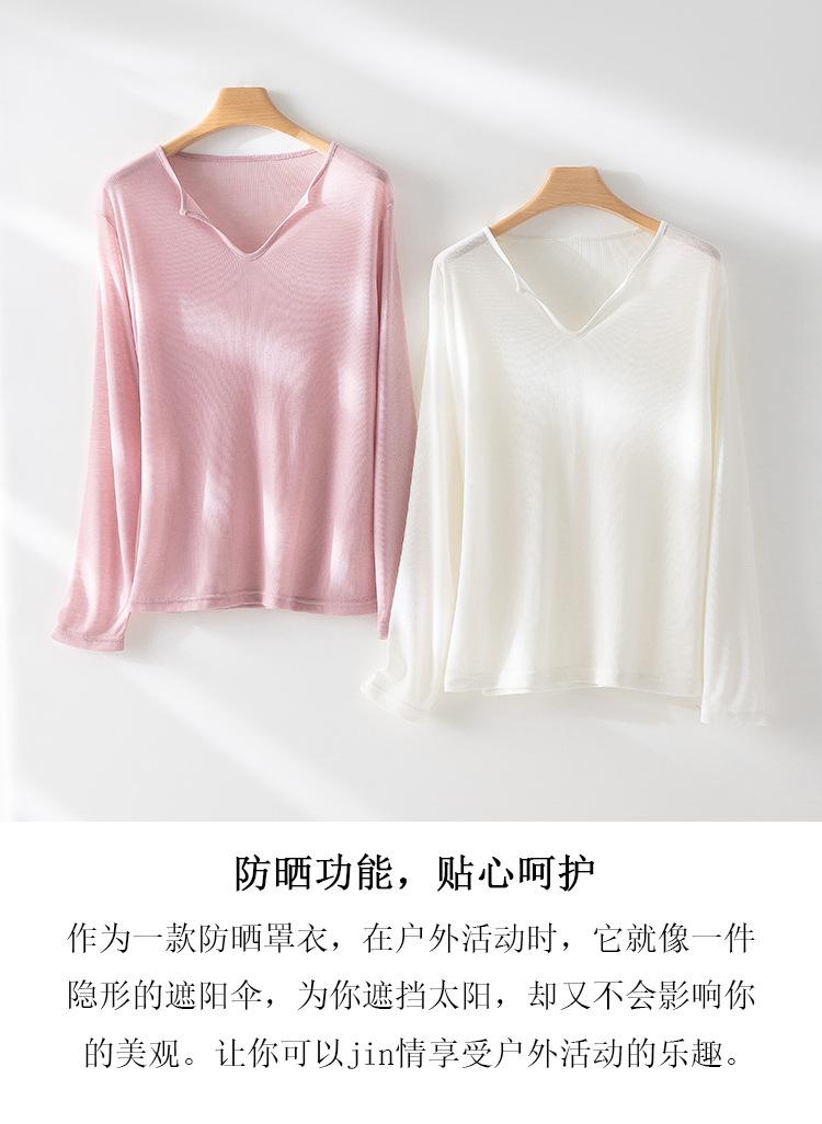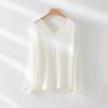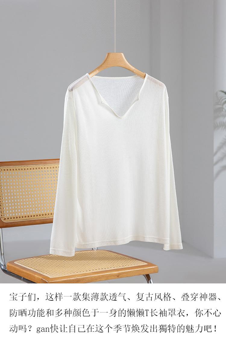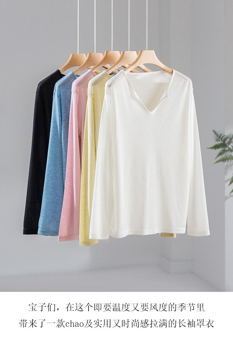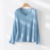 Compra Blusa de punto de manga larga con cuello en V estilo francés para mujer, fina, holgada, adelgazante y con protección solar, de verano, a la moda. al por mayor en Joom.pro