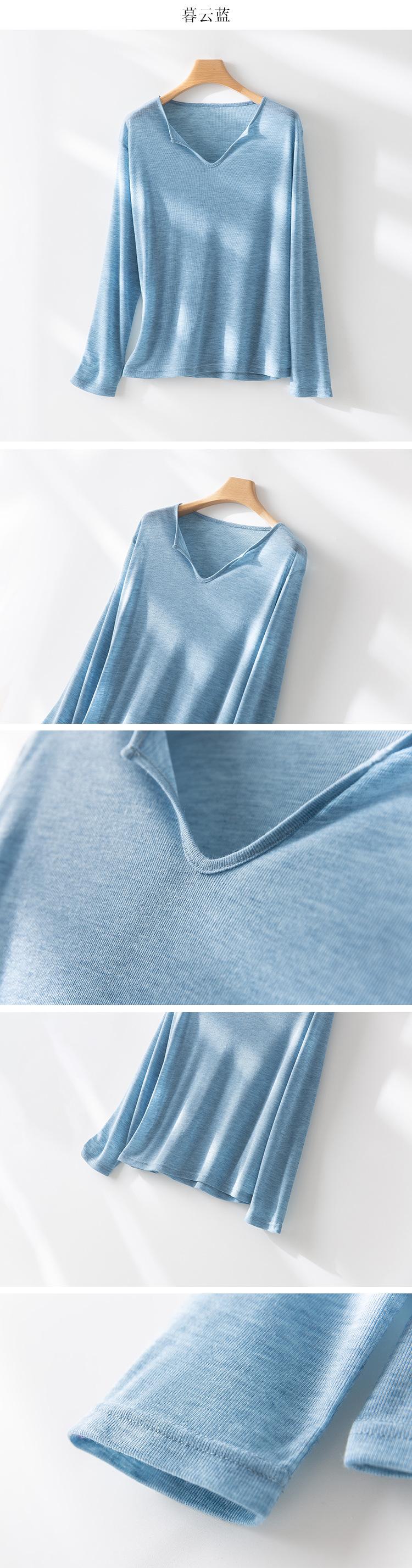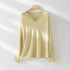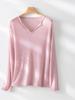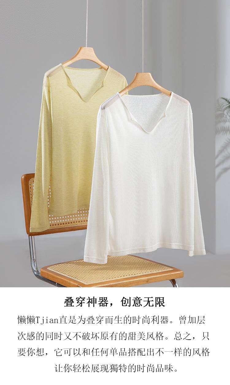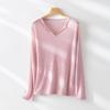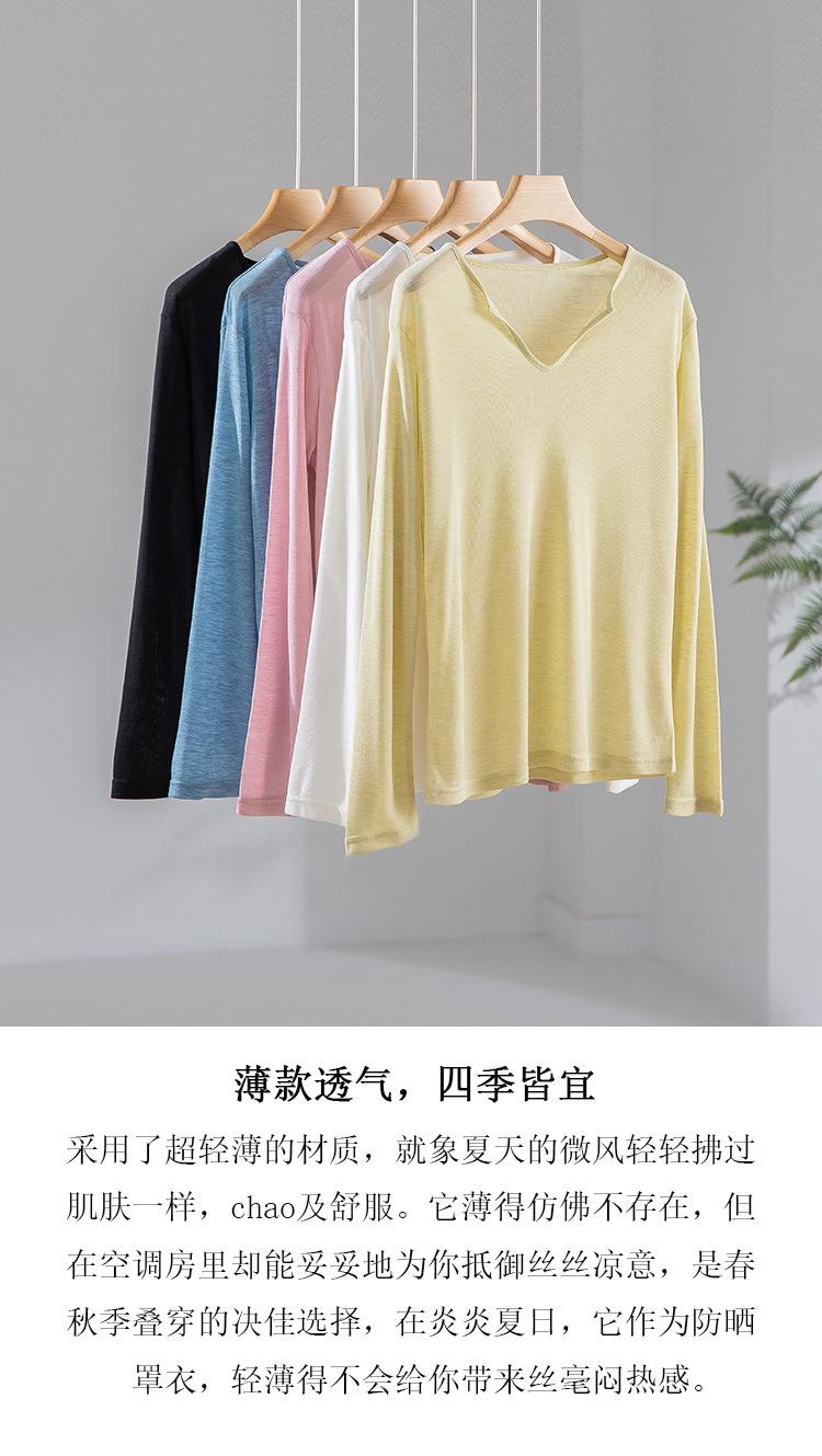 Compra Blusa de punto de manga larga con cuello en V estilo francés para mujer, fina, holgada, adelgazante y con protección solar, de verano, a la moda. al por mayor en Joom.pro