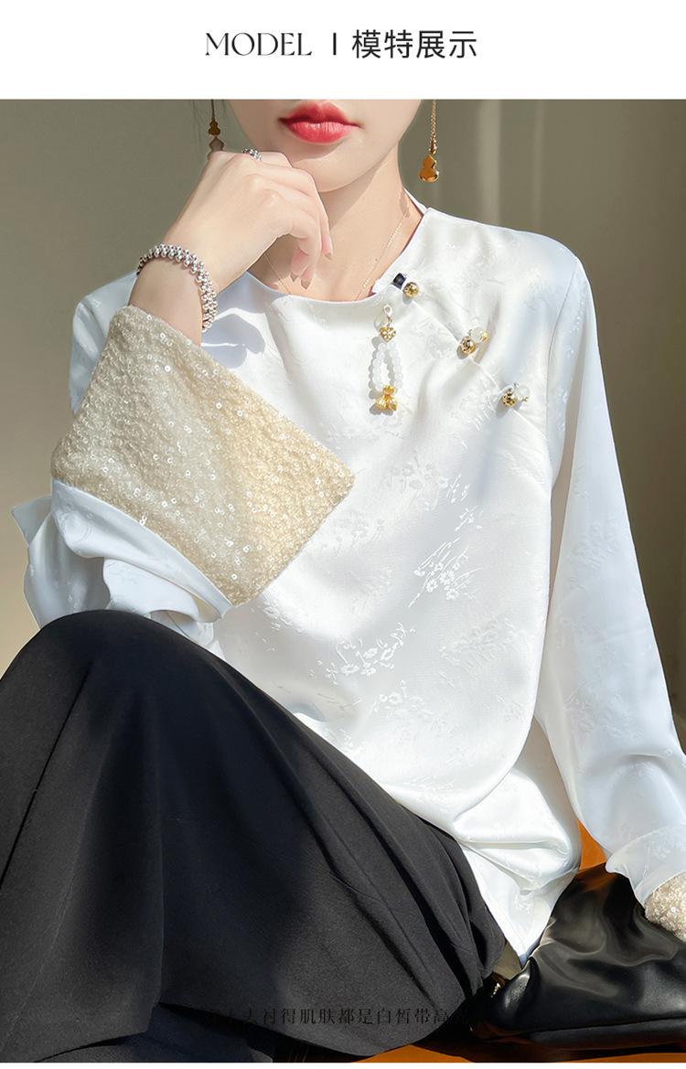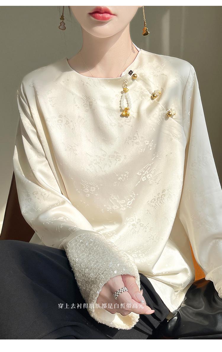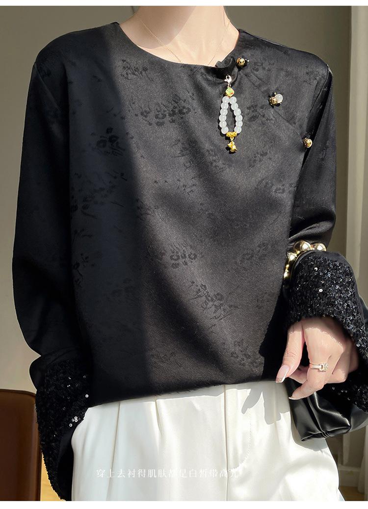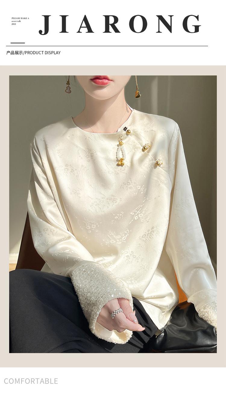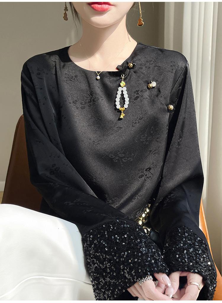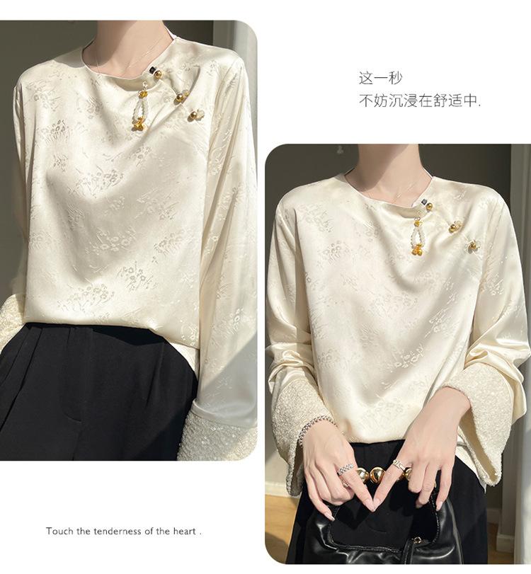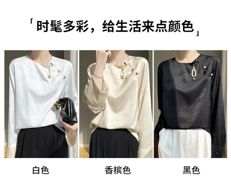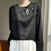 Satén de Seda 2025 Primavera y Verano Nuevo Cuello Redondo para Mujer Corto Moderno Nuevo Estilo Chino Estilo Nacional Top Camiseta Base