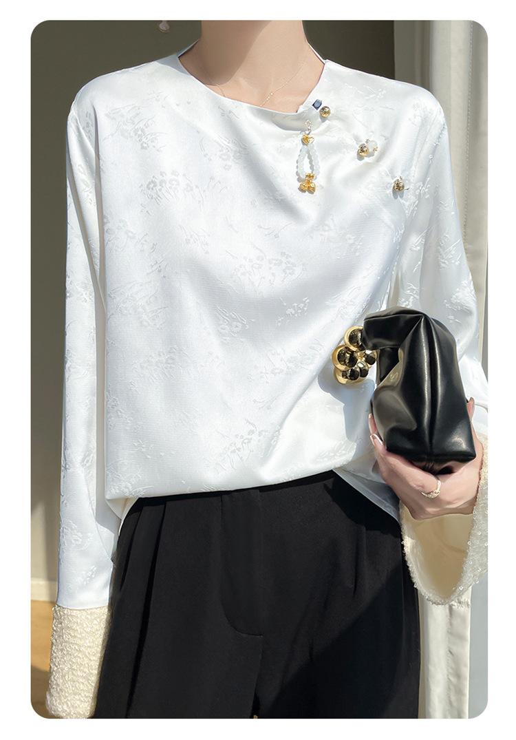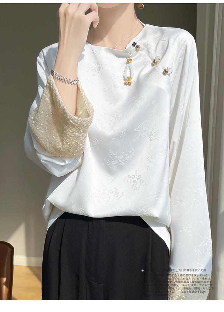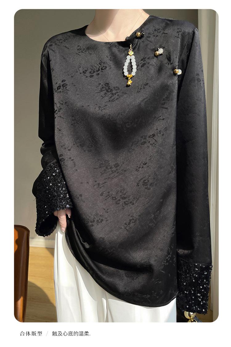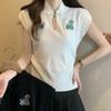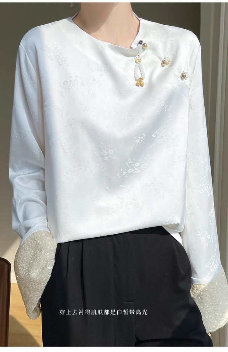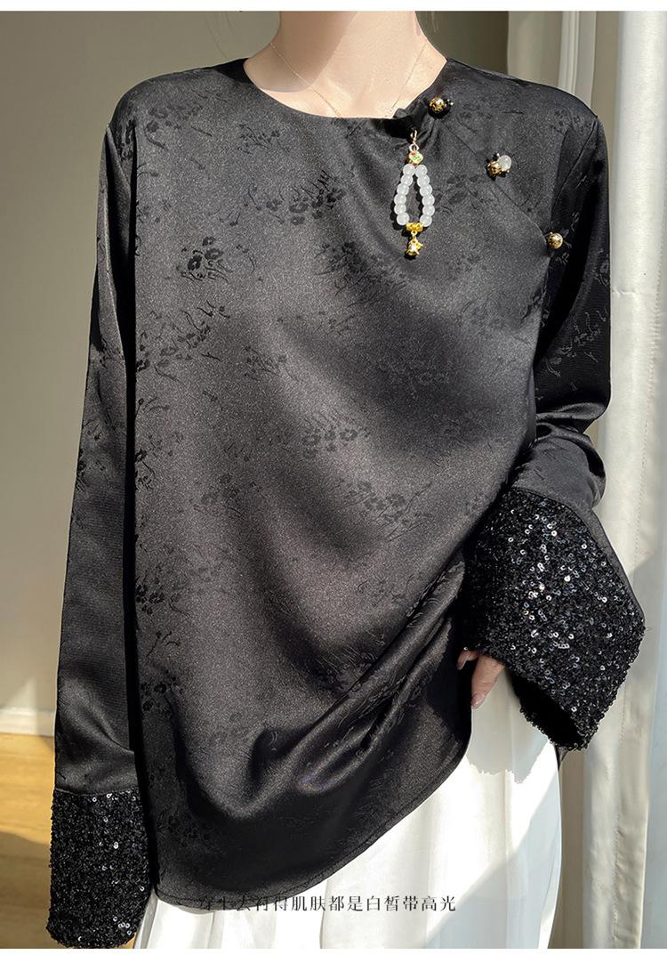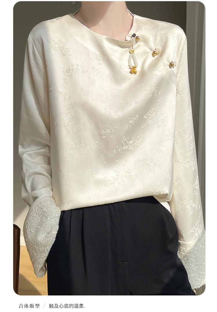 Satén de Seda 2025 Primavera y Verano Nuevo Cuello Redondo para Mujer Corto Moderno Nuevo Estilo Chino Estilo Nacional Top Camiseta Base