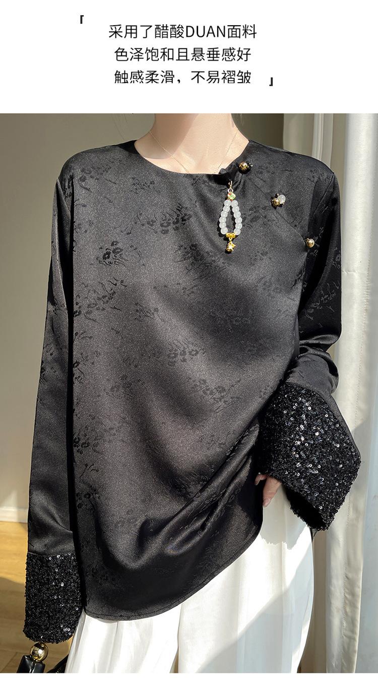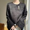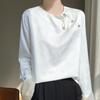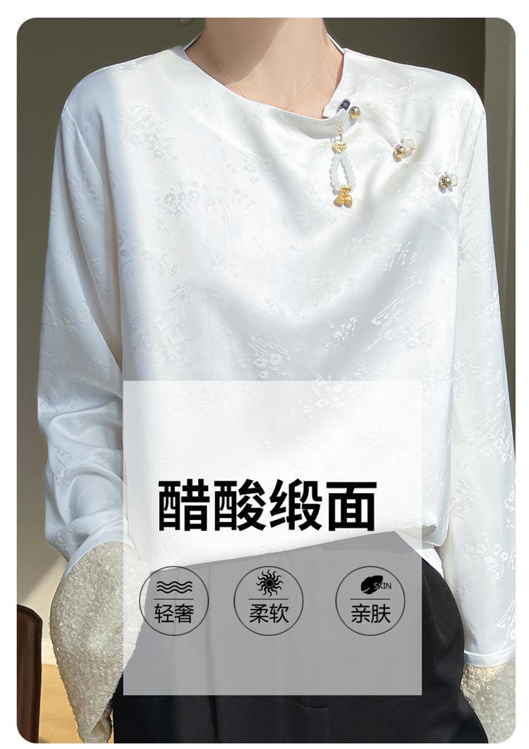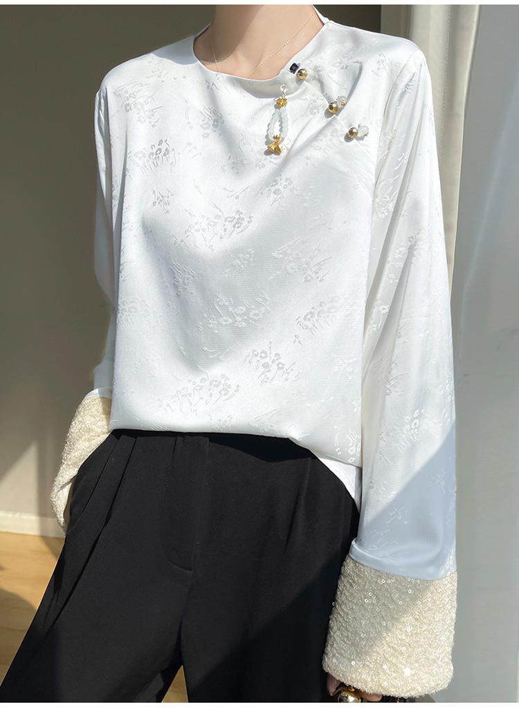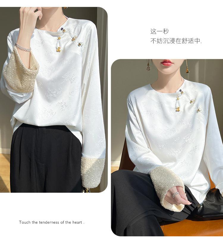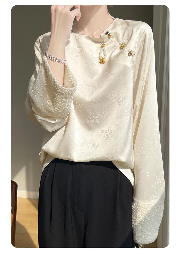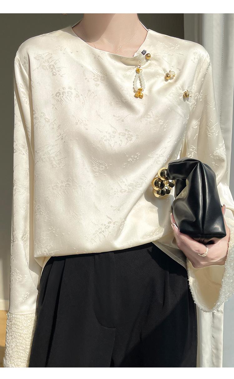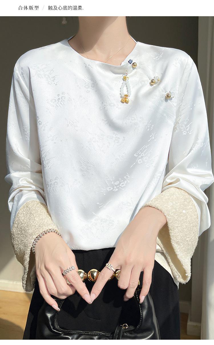 Satén de Seda 2025 Primavera y Verano Nuevo Cuello Redondo para Mujer Corto Moderno Nuevo Estilo Chino Estilo Nacional Top Camiseta Base