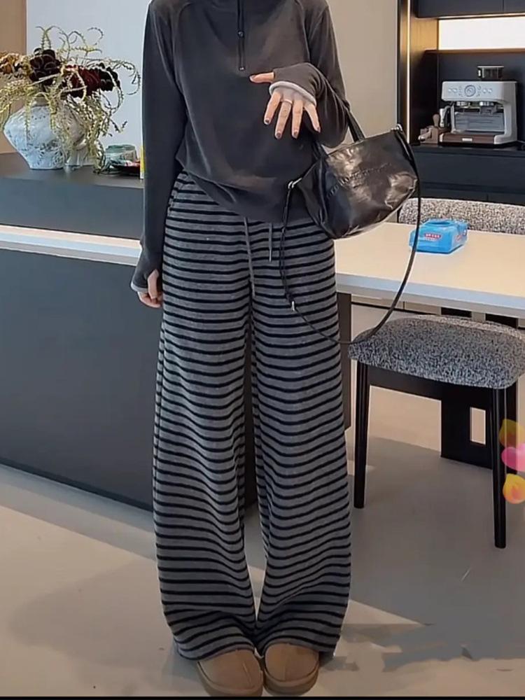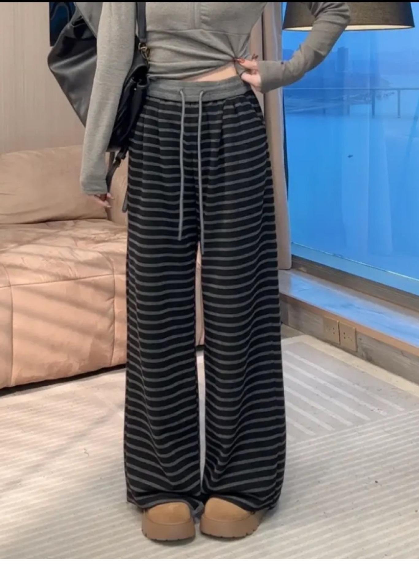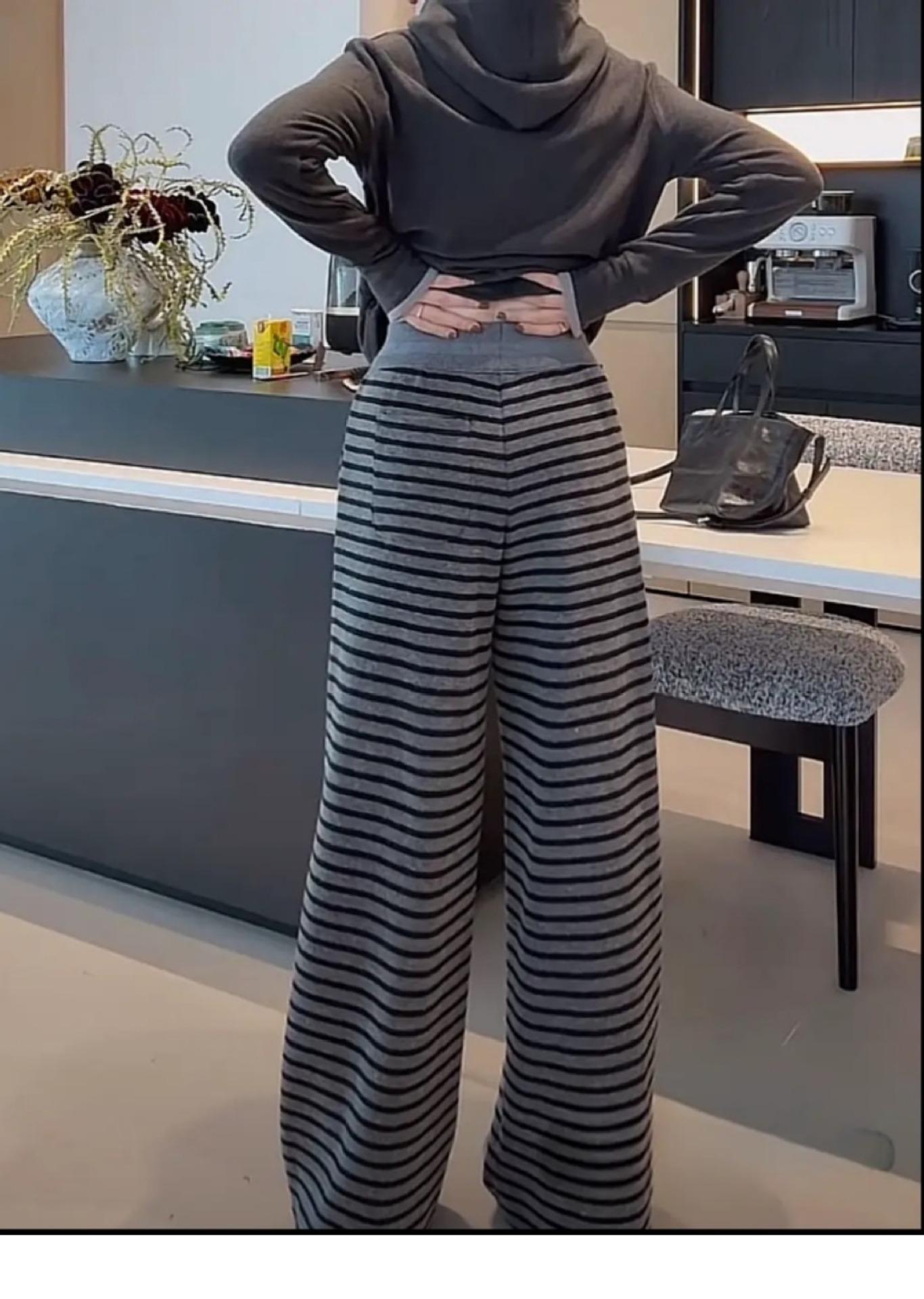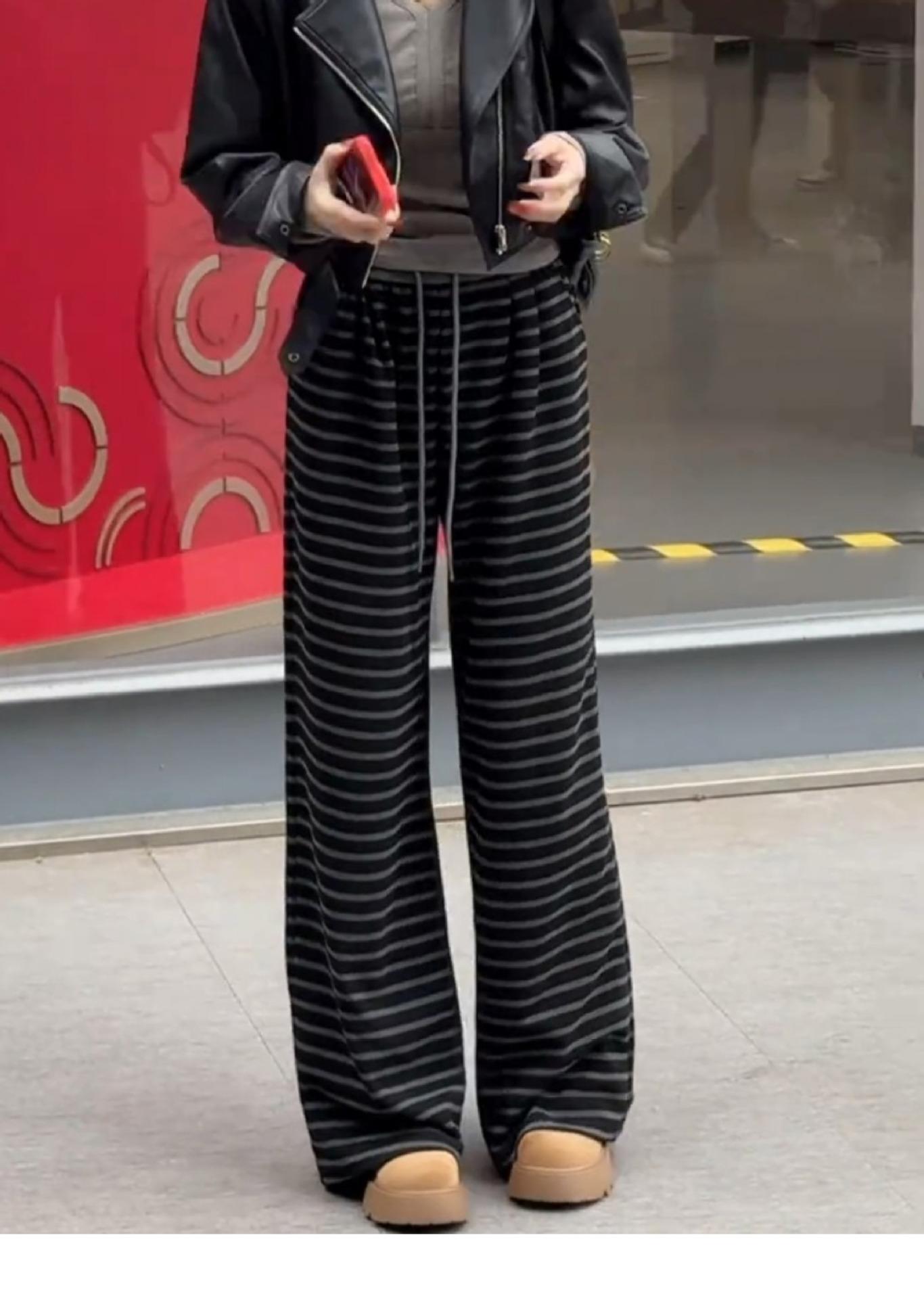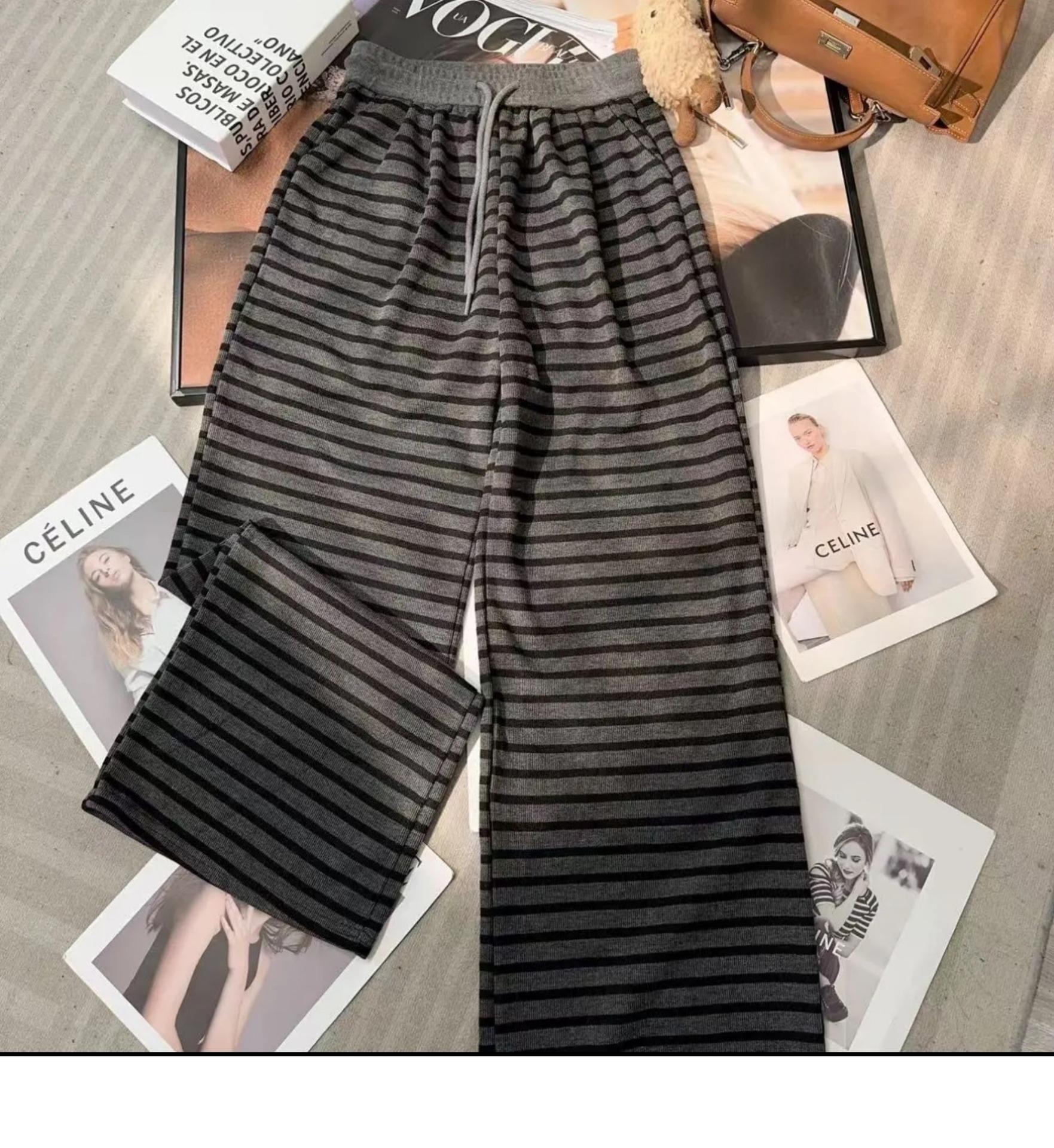Pantalones anchos informales a rayas para mujer, pantalón largo, adelgazante, combinable con todo, cintura holgada, primavera 2025