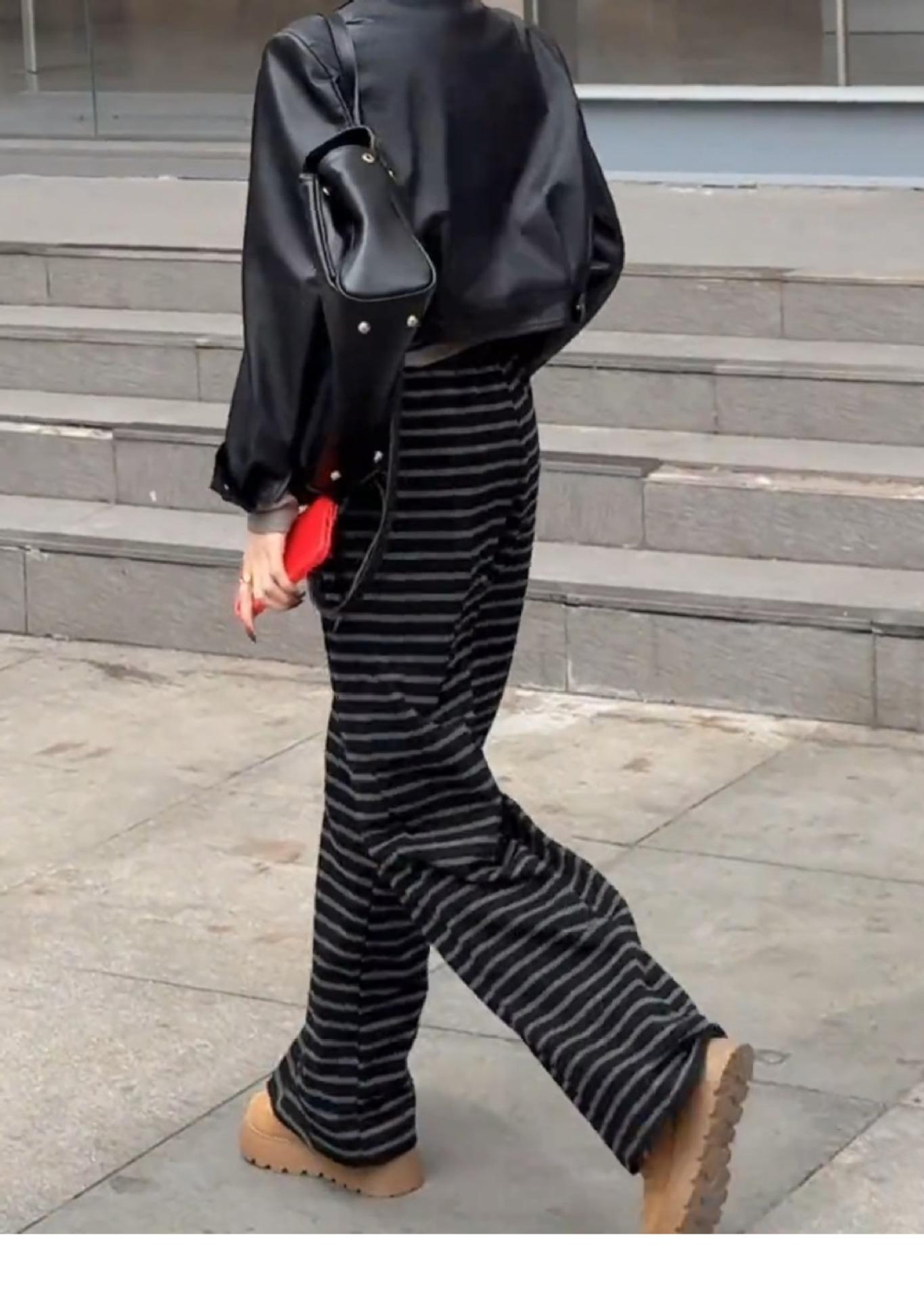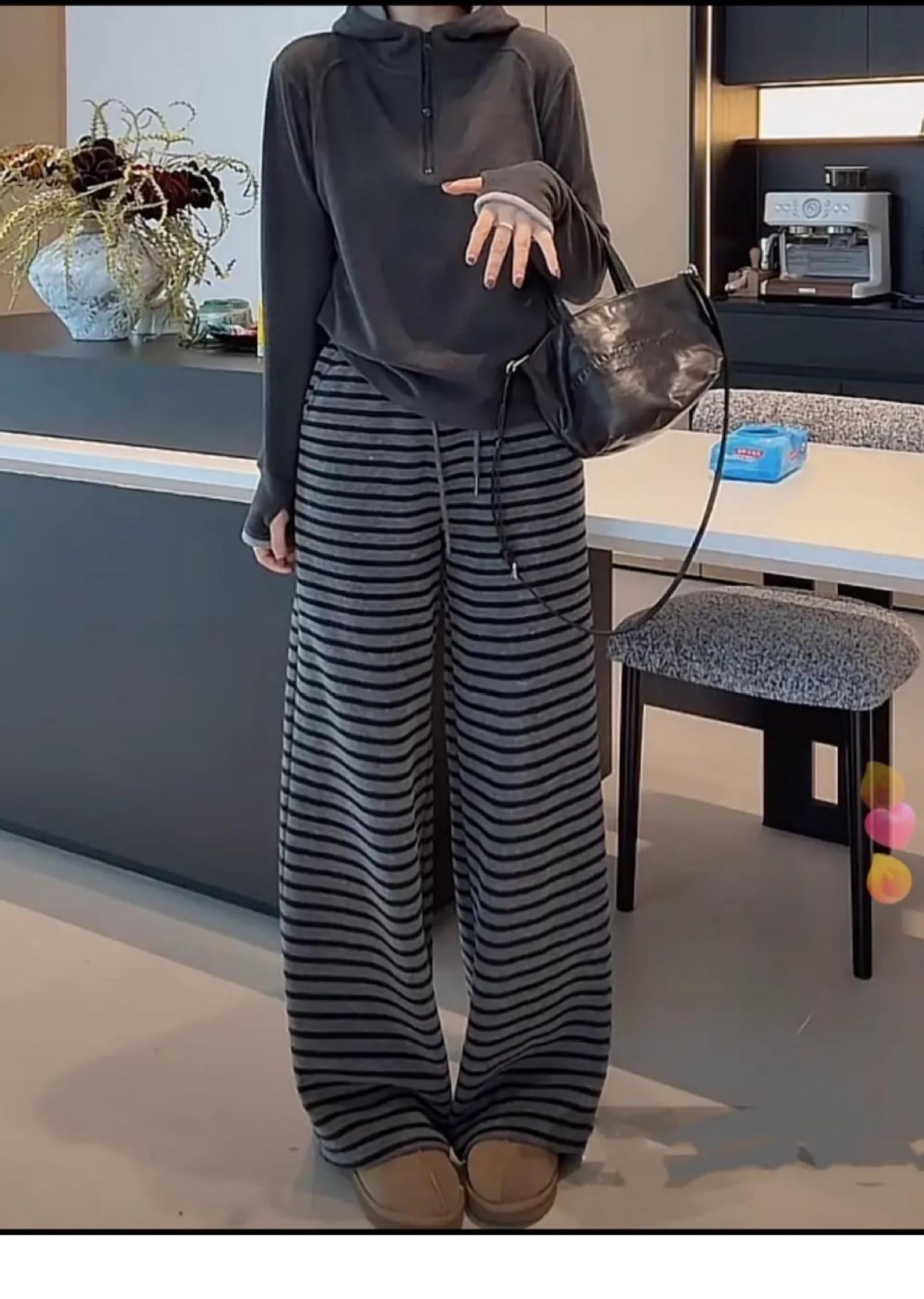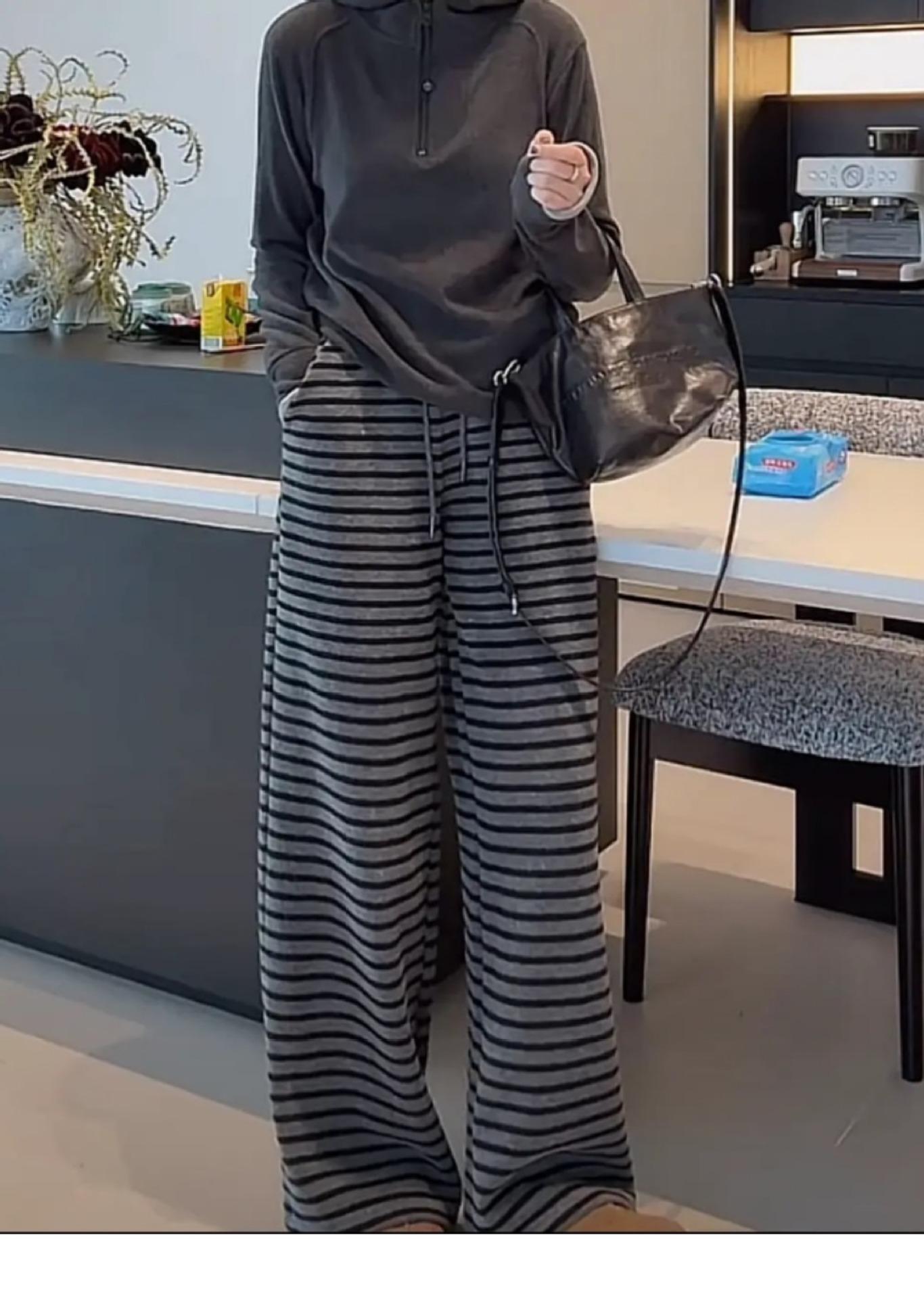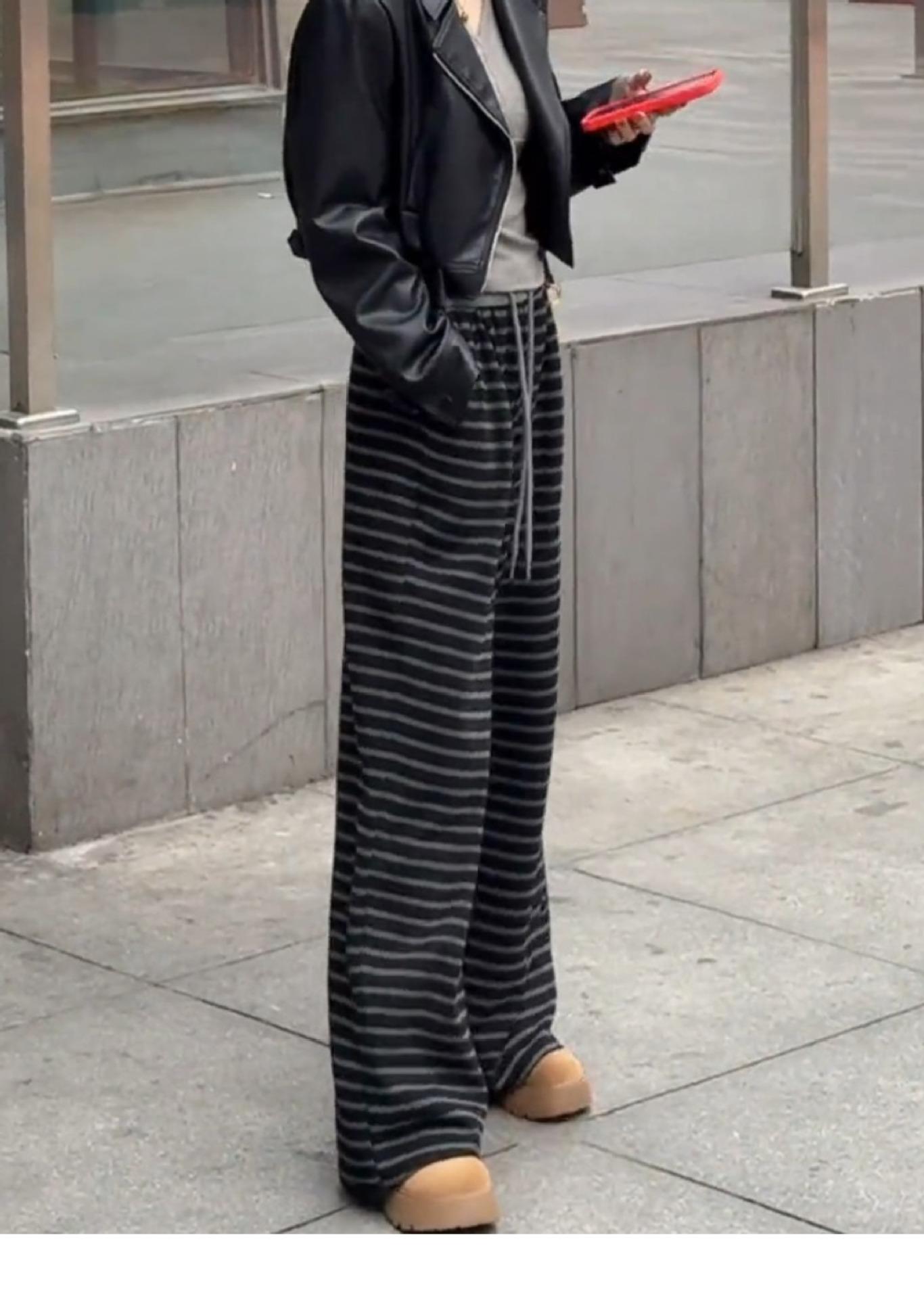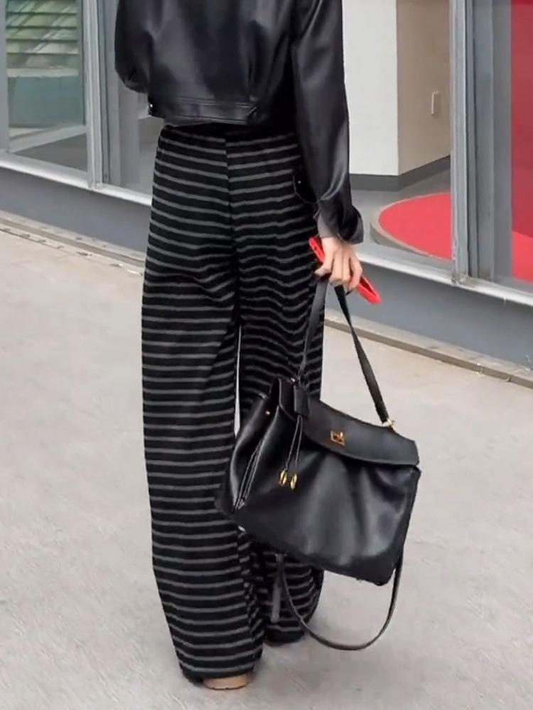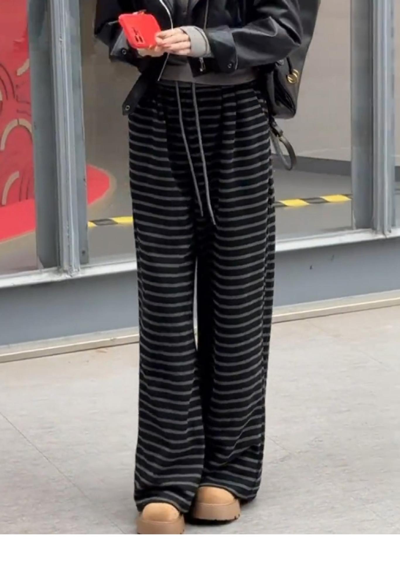 Pantalones anchos informales a rayas para mujer, pantalón largo, adelgazante, combinable con todo, cintura holgada, primavera 2025