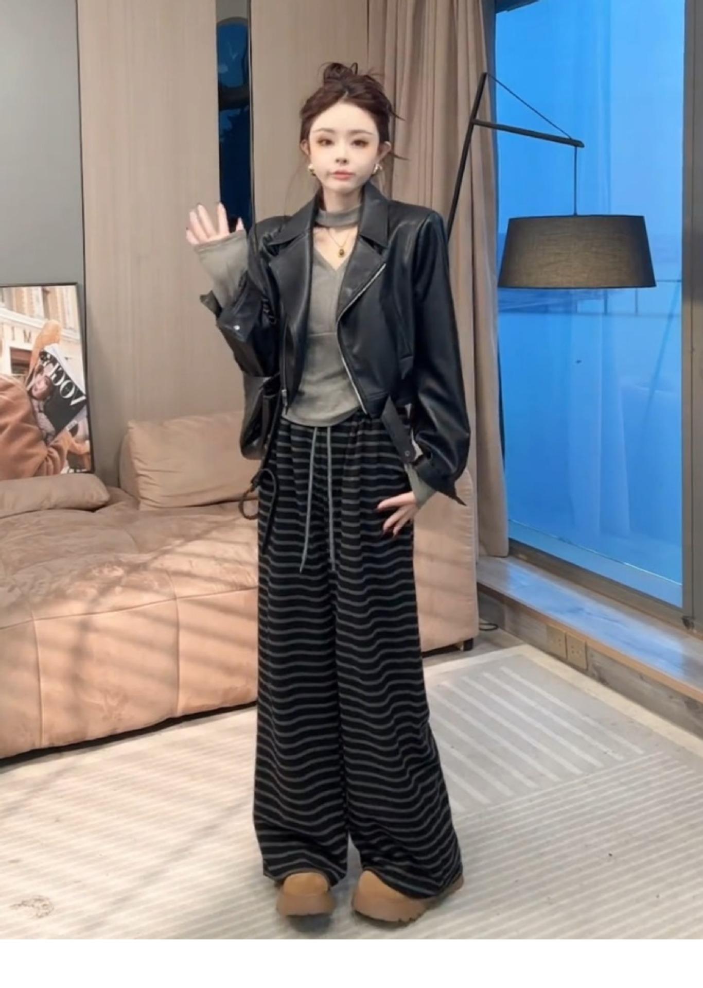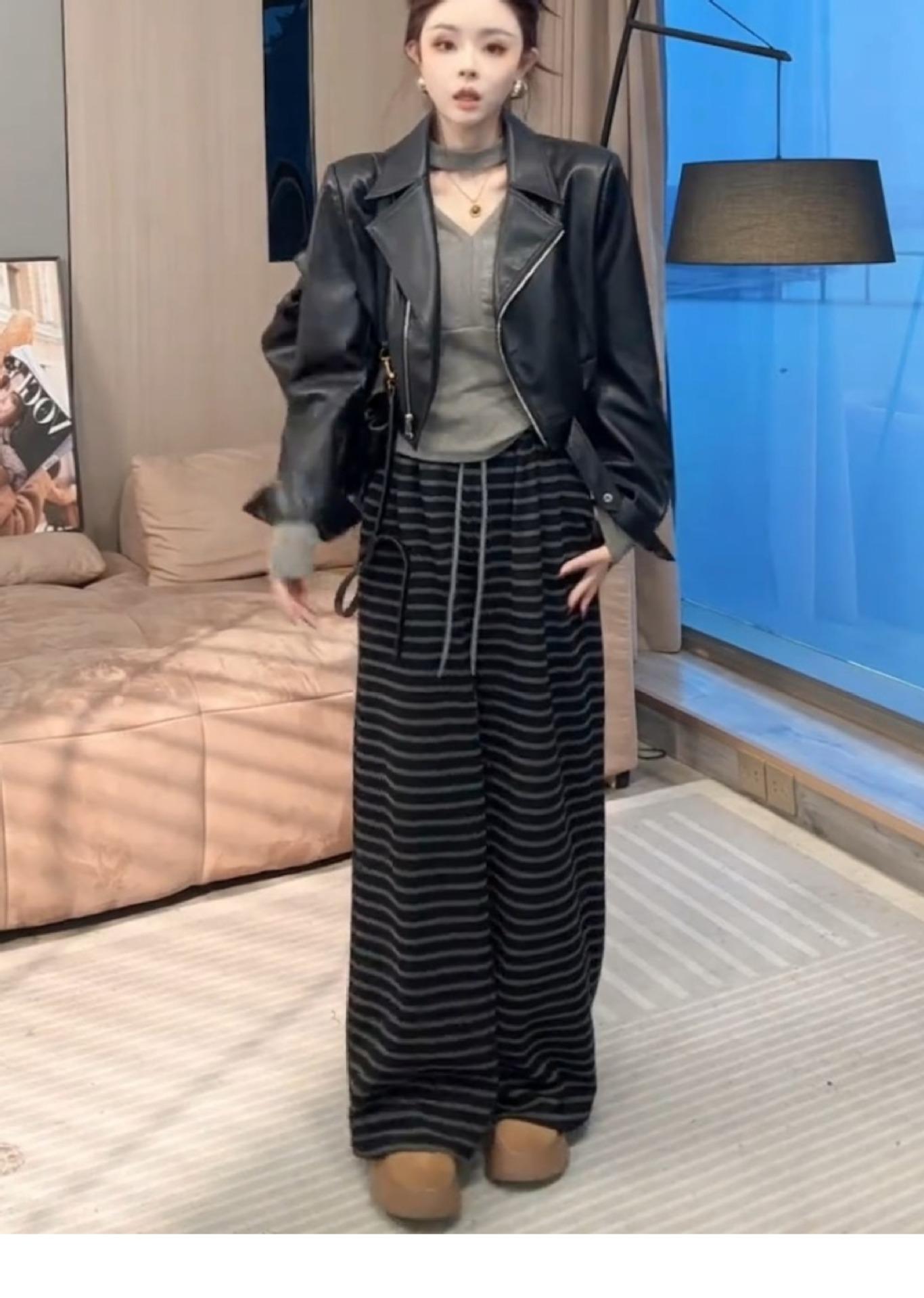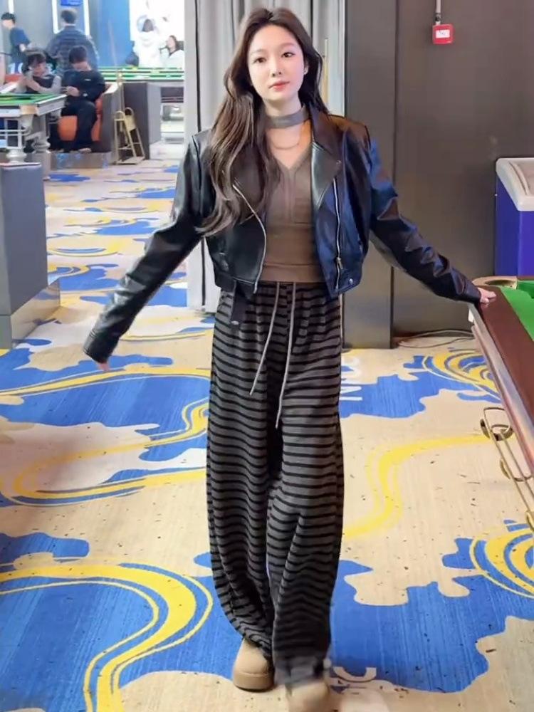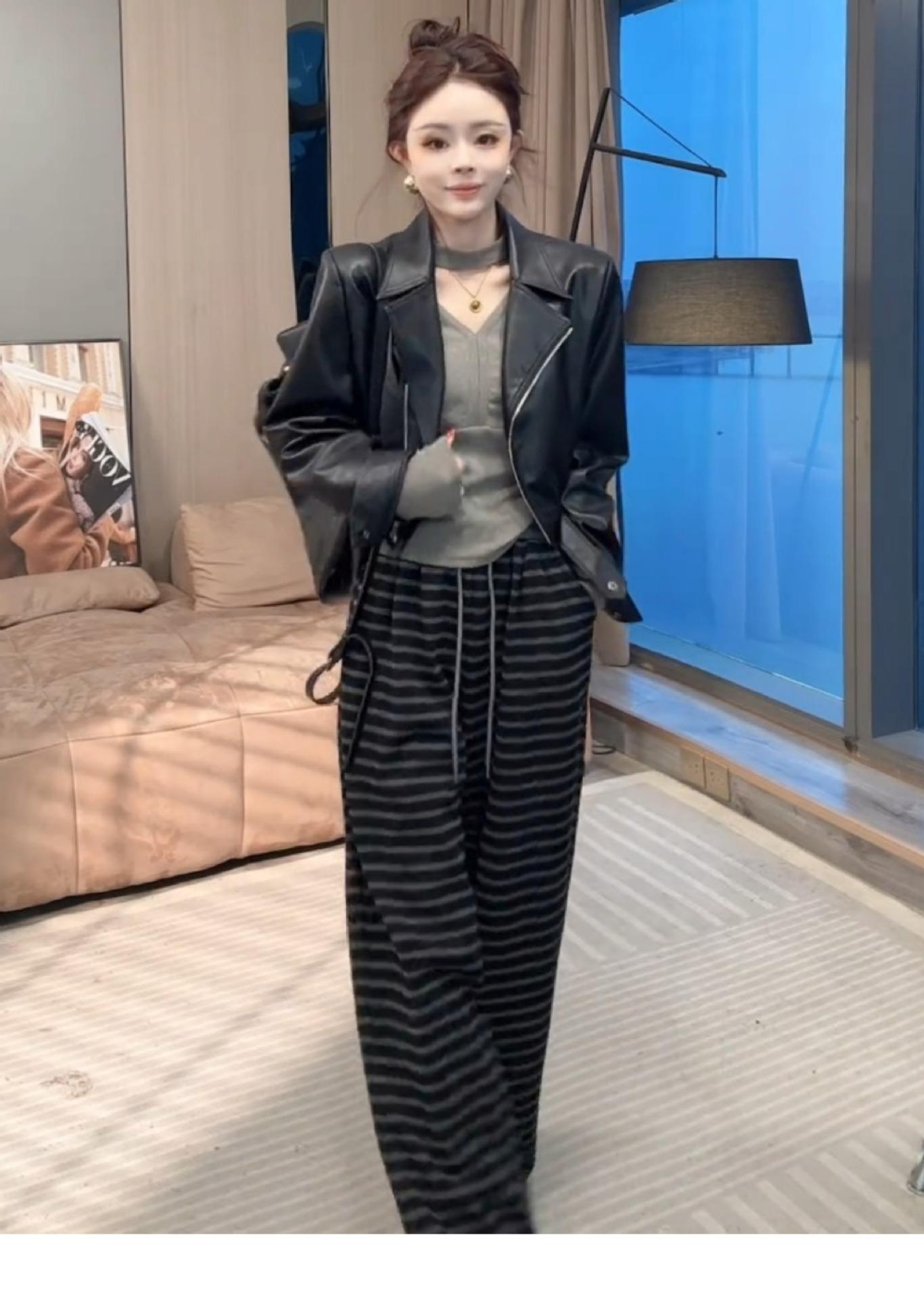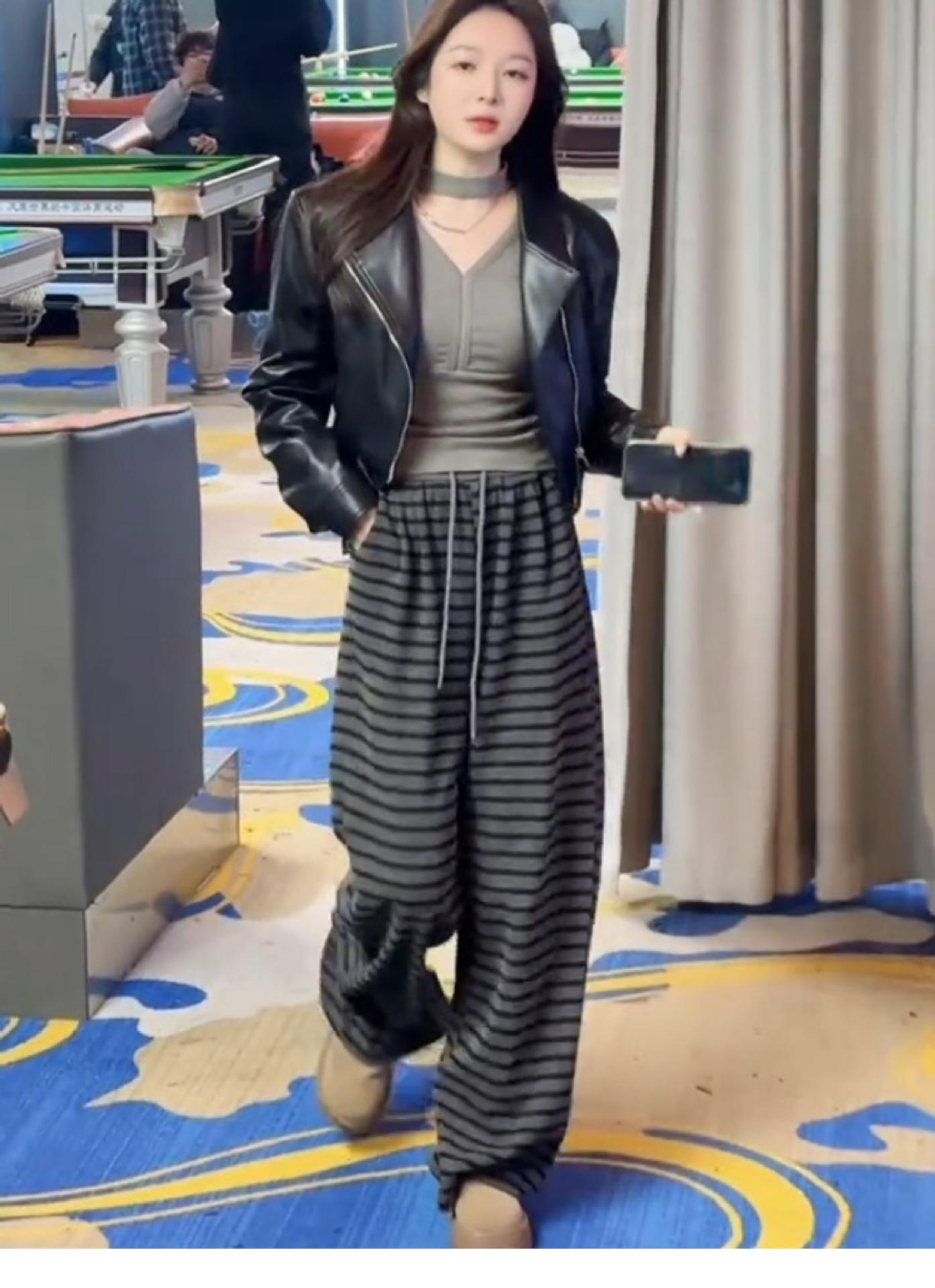 Pantalones anchos informales a rayas para mujer, pantalón largo, adelgazante, combinable con todo, cintura holgada, primavera 2025