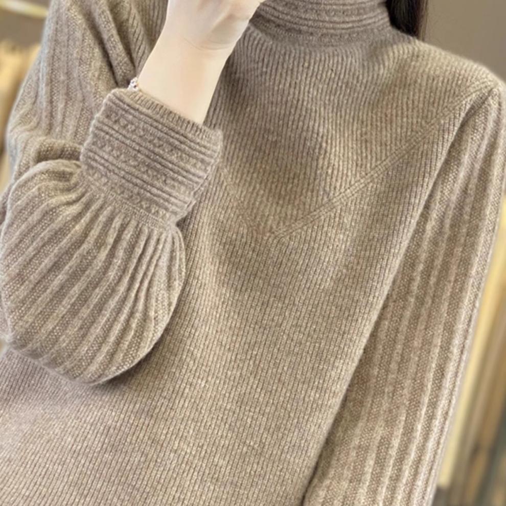 Compra 2024 Nueva Camisa de Cuello Semi-alto con Manga Abullonada para Mujer Suéter Base de Punto Holgado y Ajustado para Mujer Suéter de Punto de Otoño para Mujer al por mayor en Joom.pro