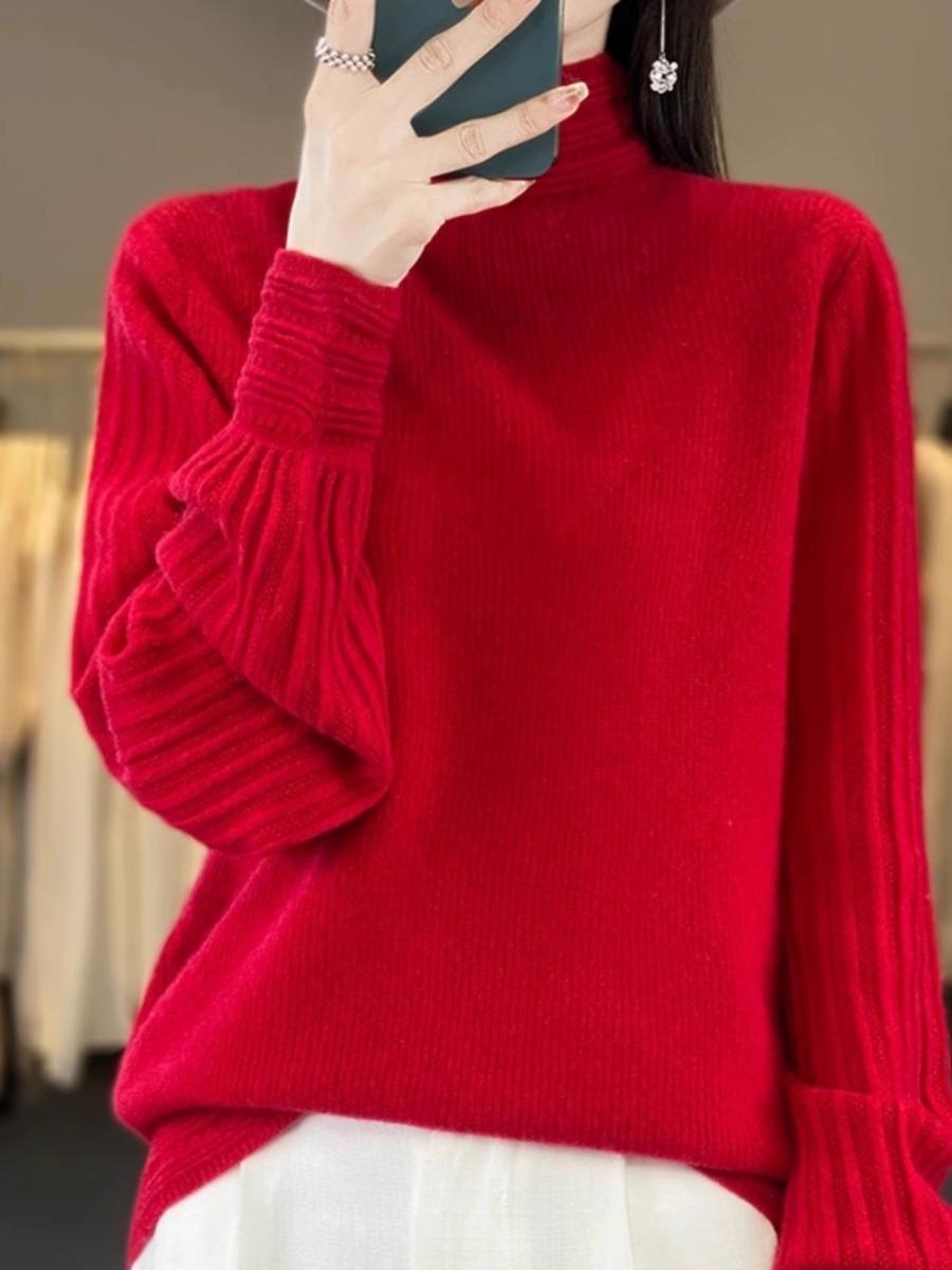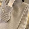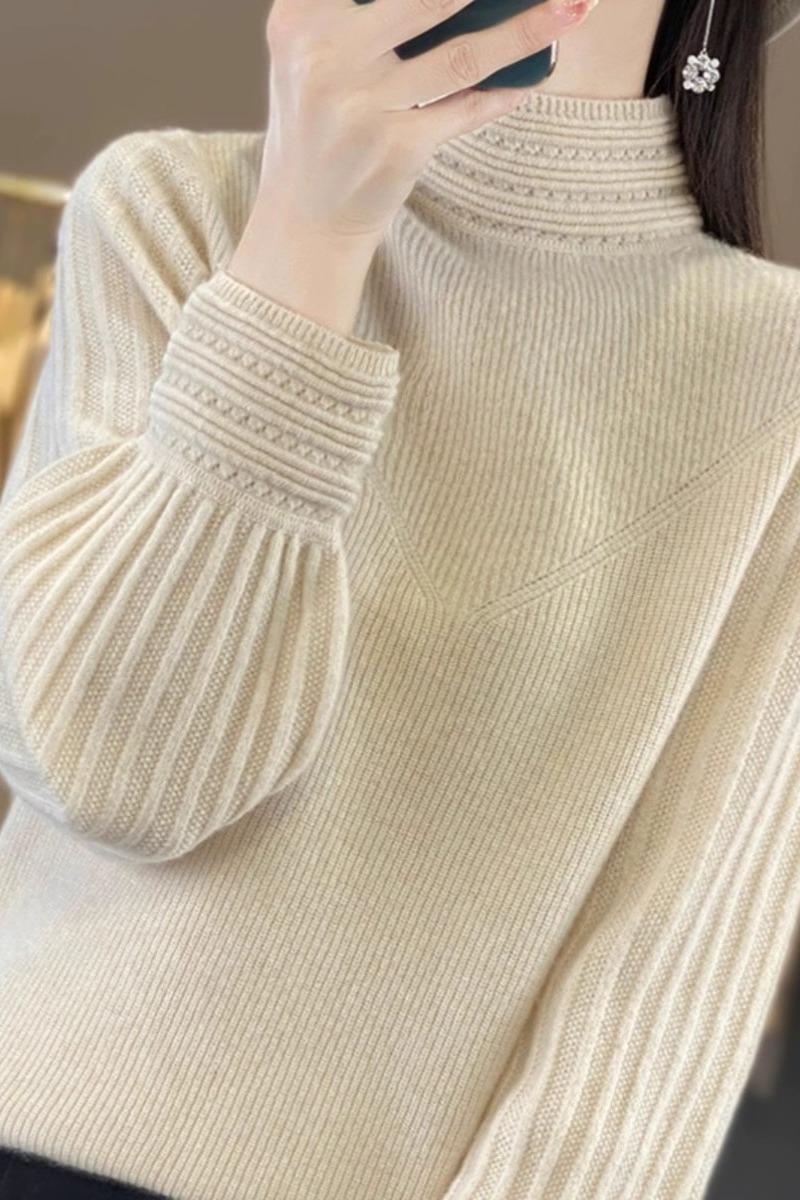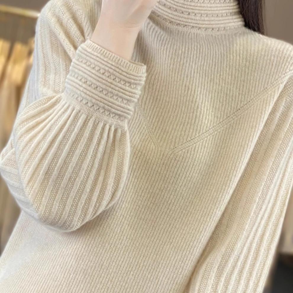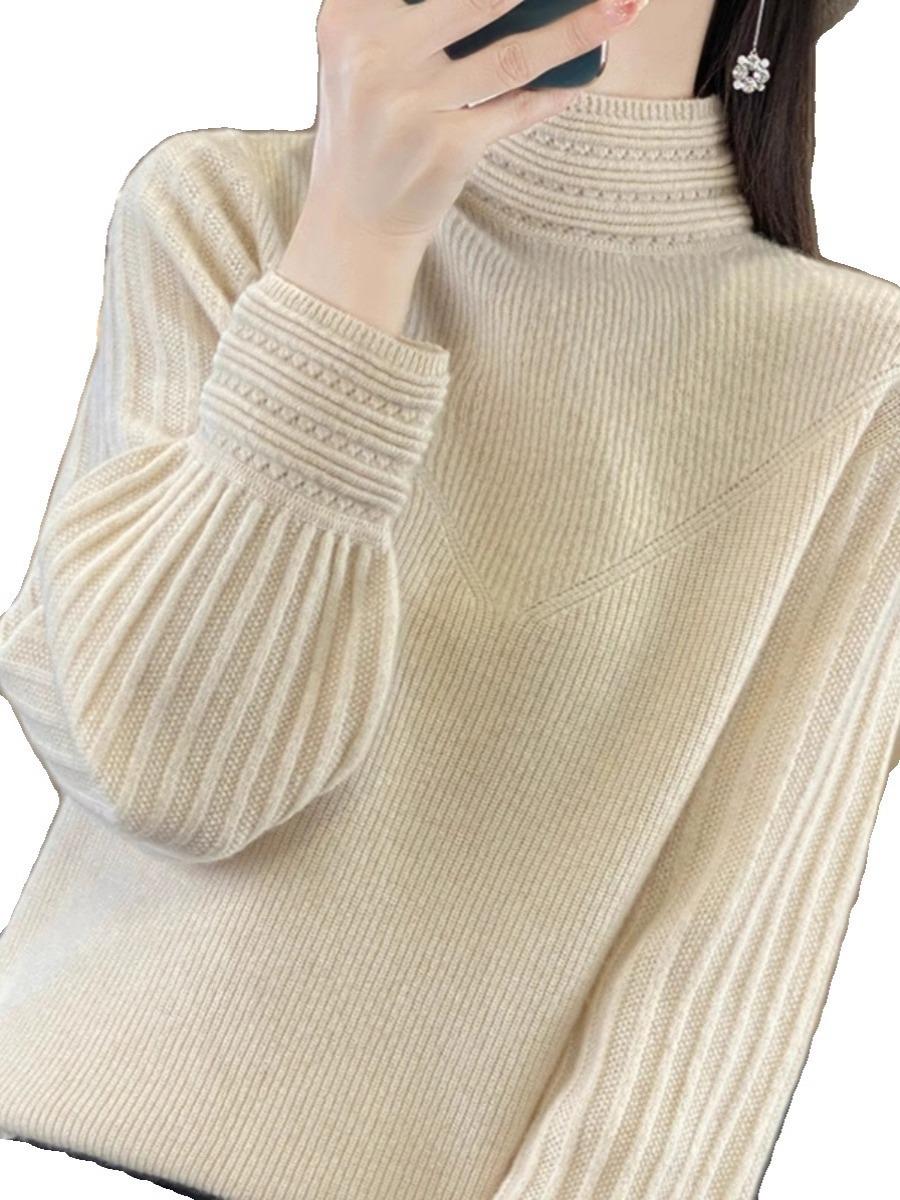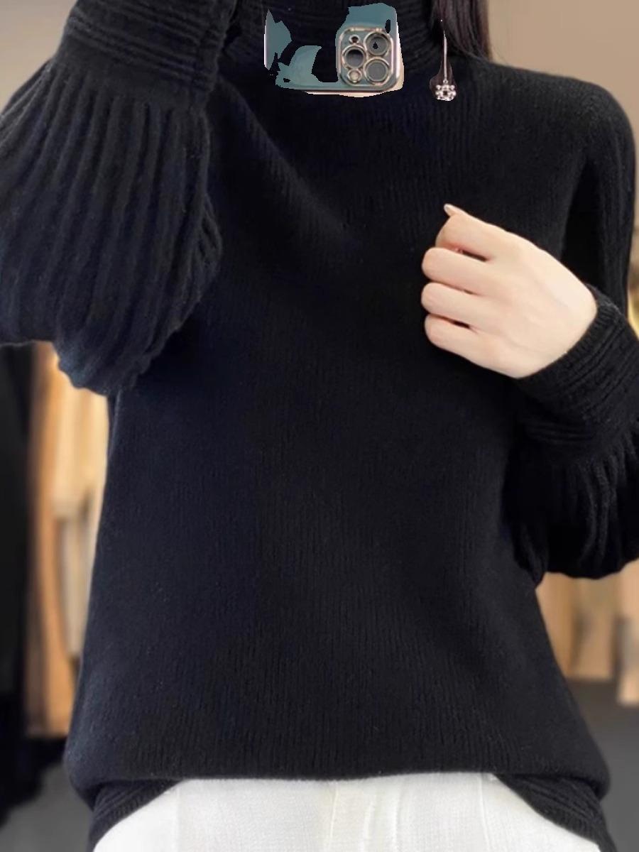 2024 Nueva Camisa de Cuello Semi-alto con Manga Abullonada para Mujer Suéter Base de Punto Holgado y Ajustado para Mujer Suéter de Punto de Otoño para Mujer