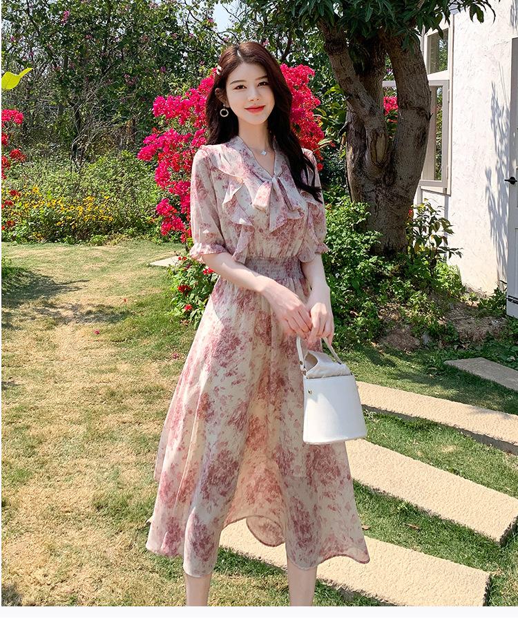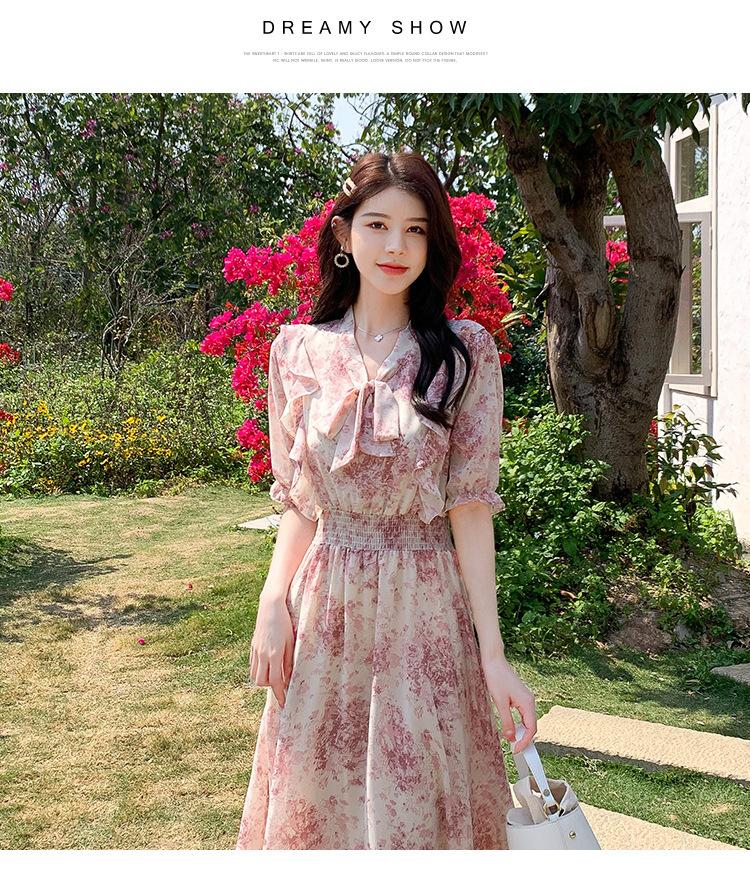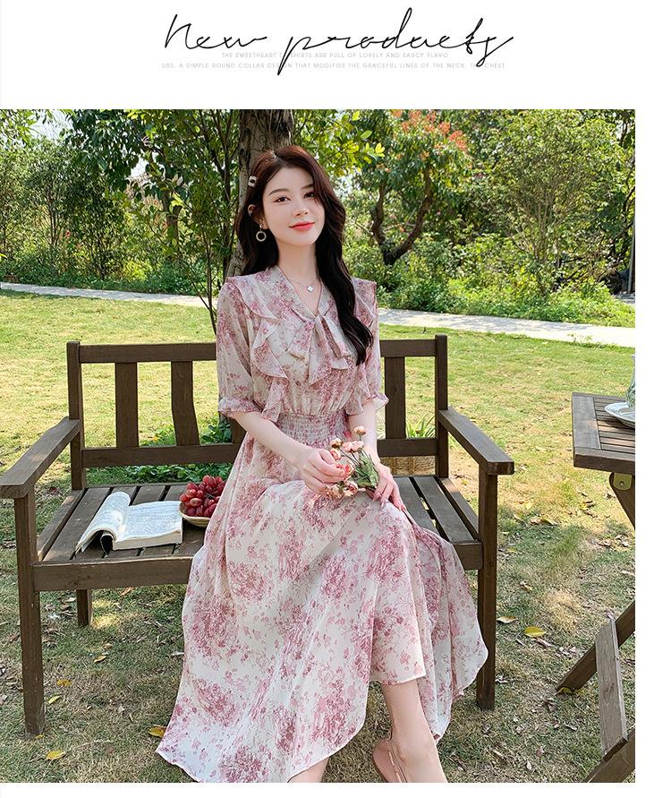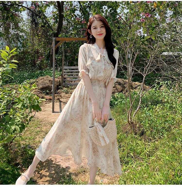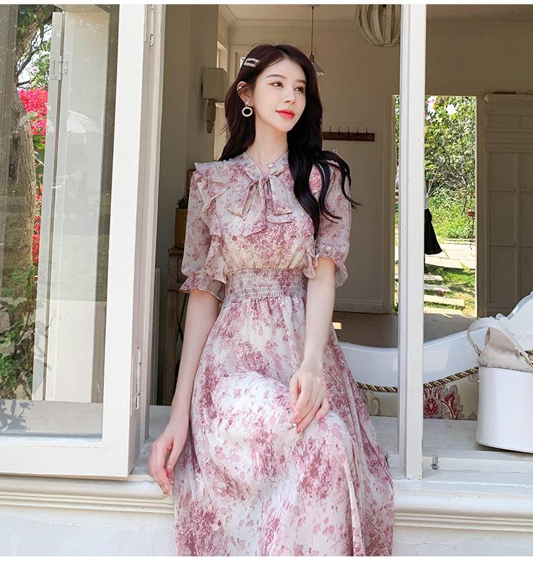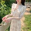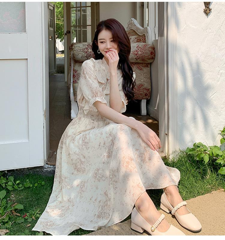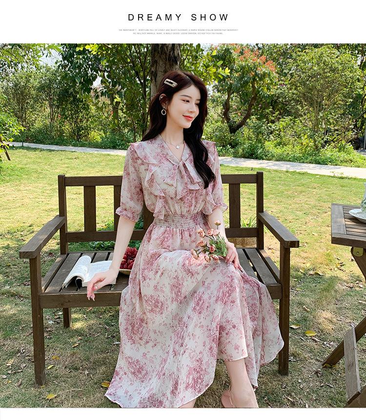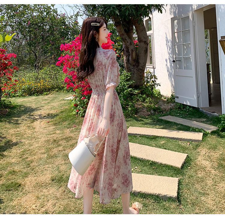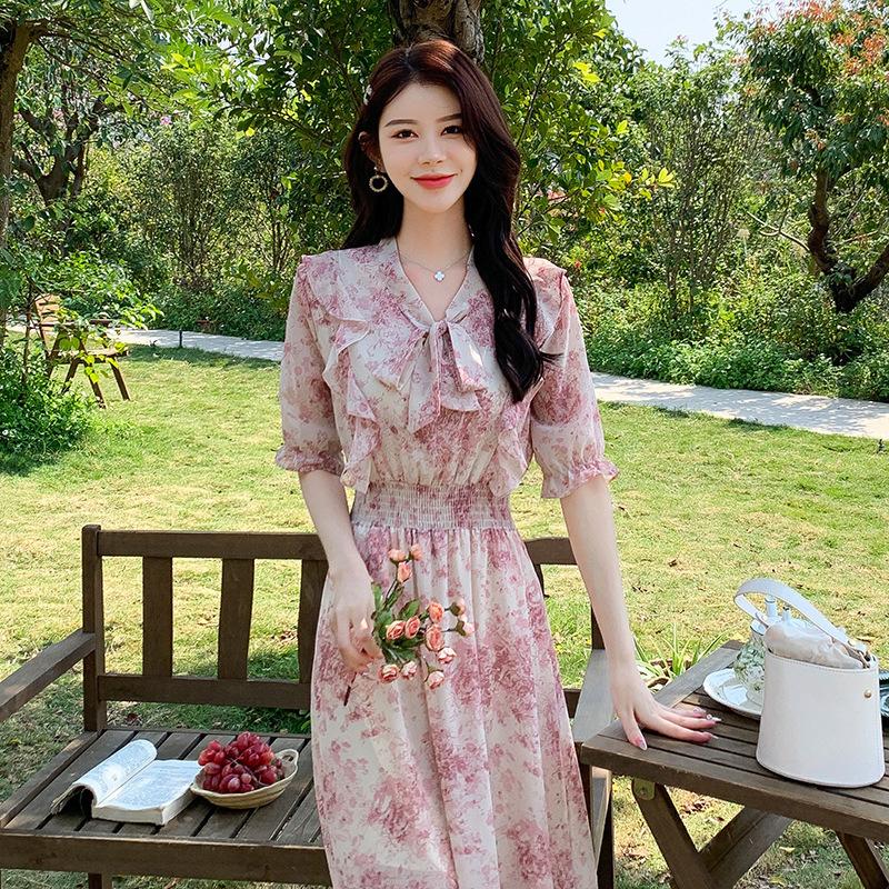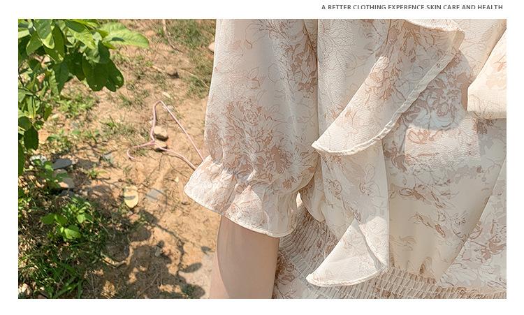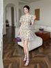Vestido de gasa con escote en V francés, estilo suave y cruzado, para mujer, nuevo vestido de verano con volantes, corte A, floral, ajustado