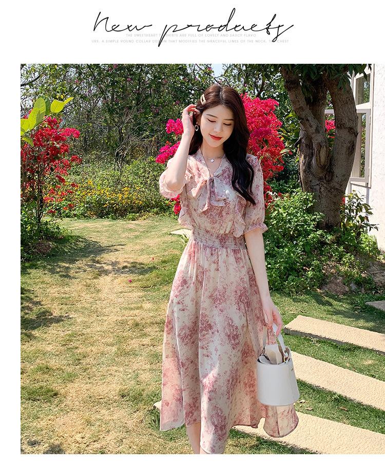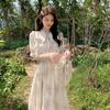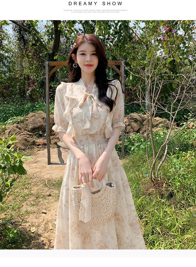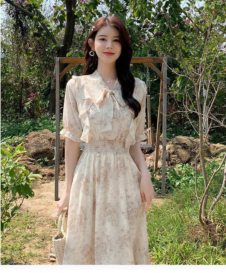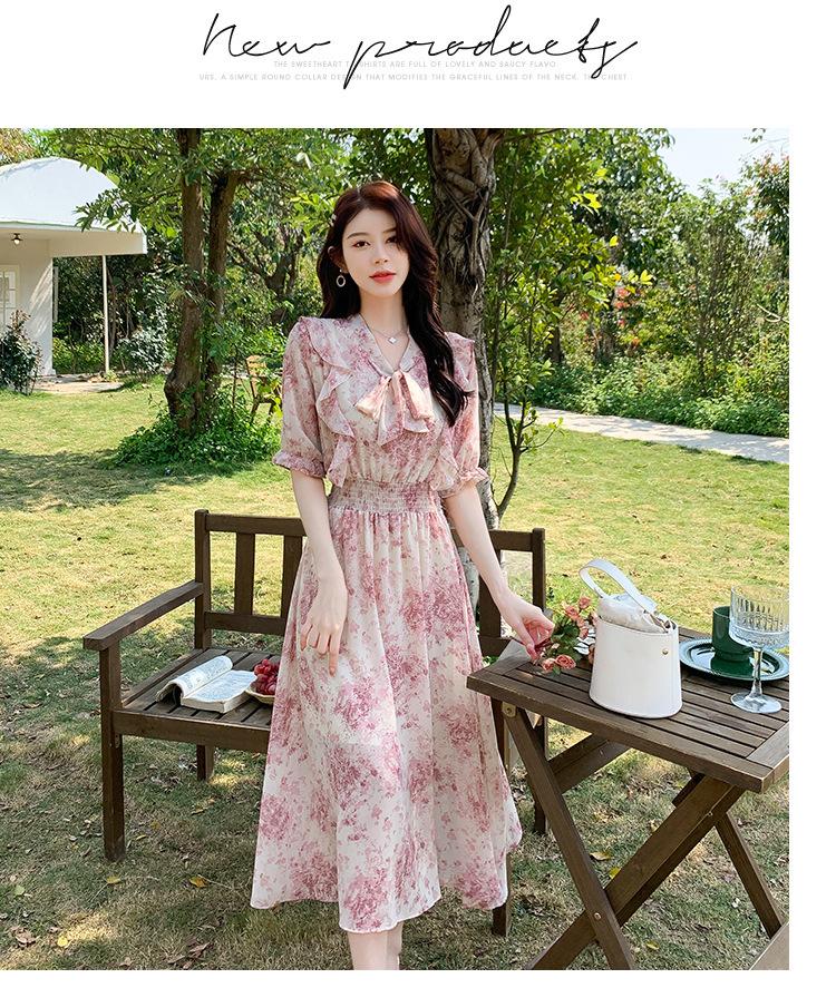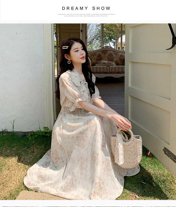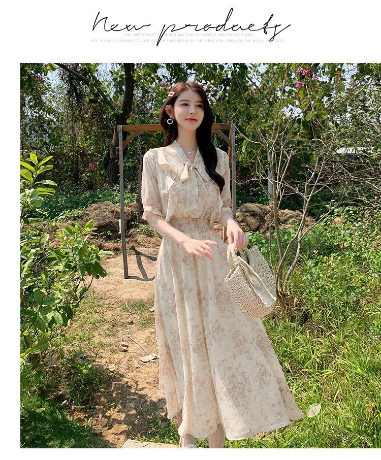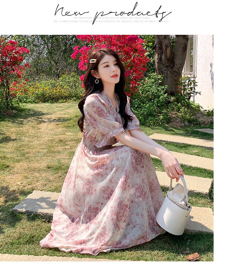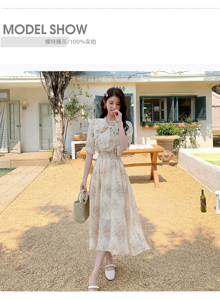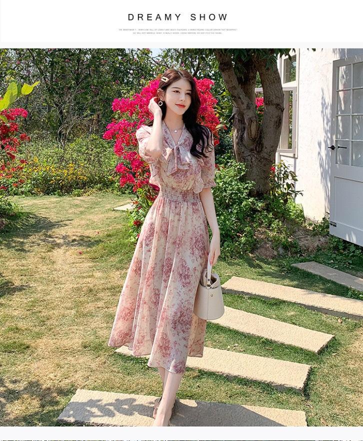 Vestido de gasa con escote en V francés, estilo suave y cruzado, para mujer, nuevo vestido de verano con volantes, corte A, floral, ajustado