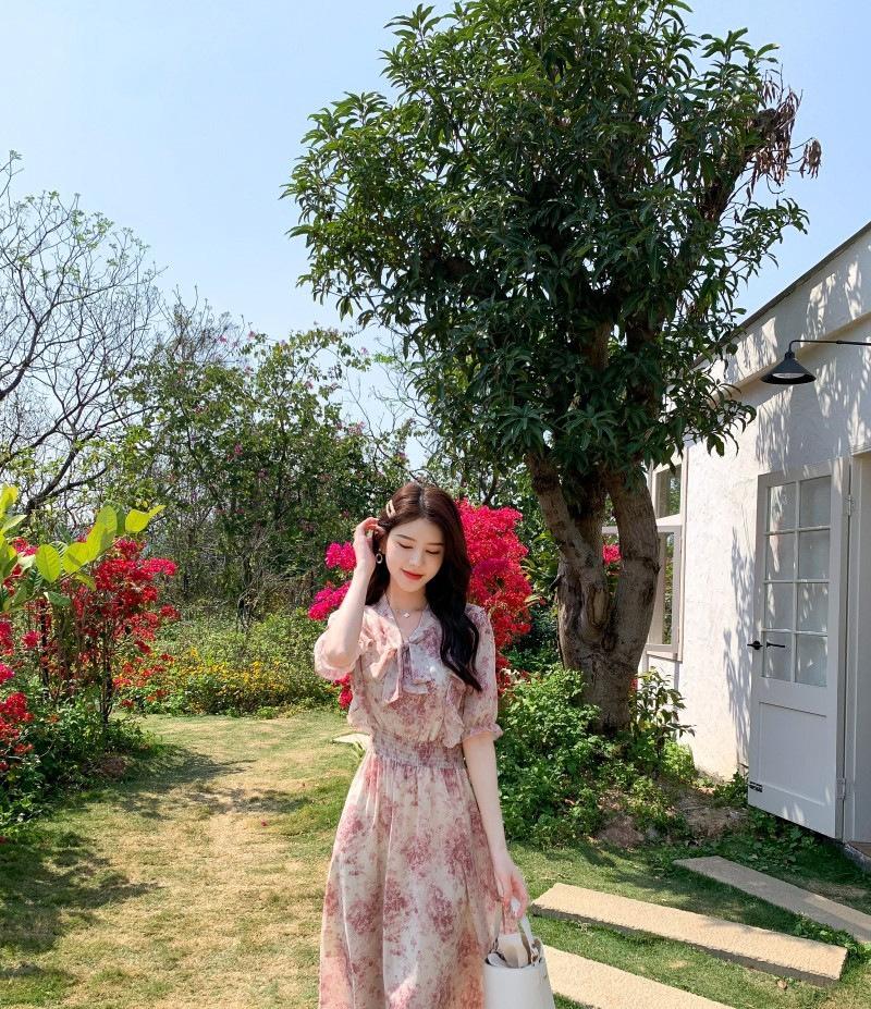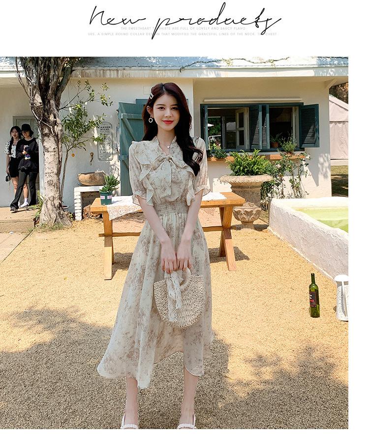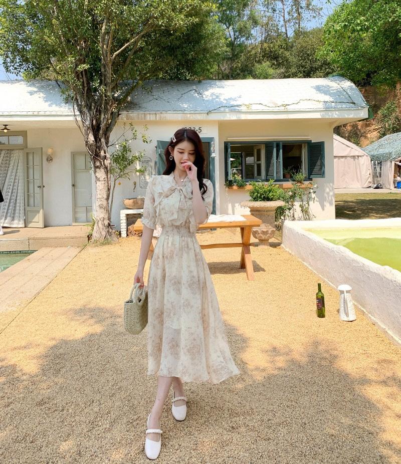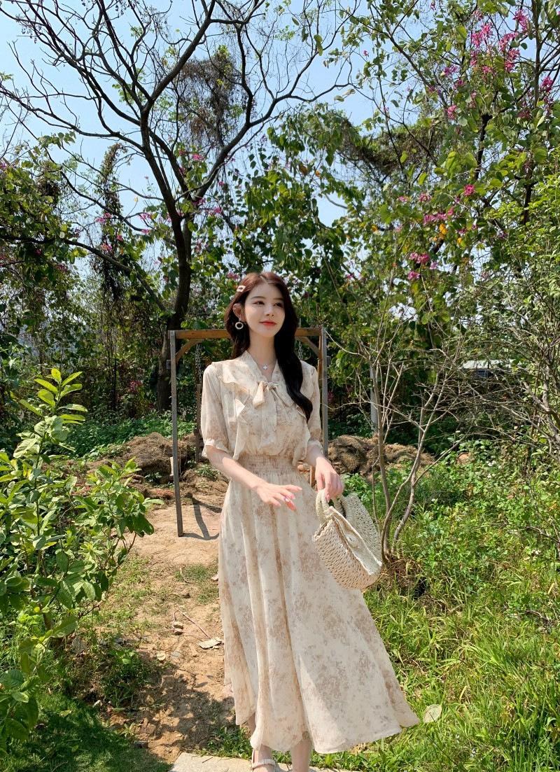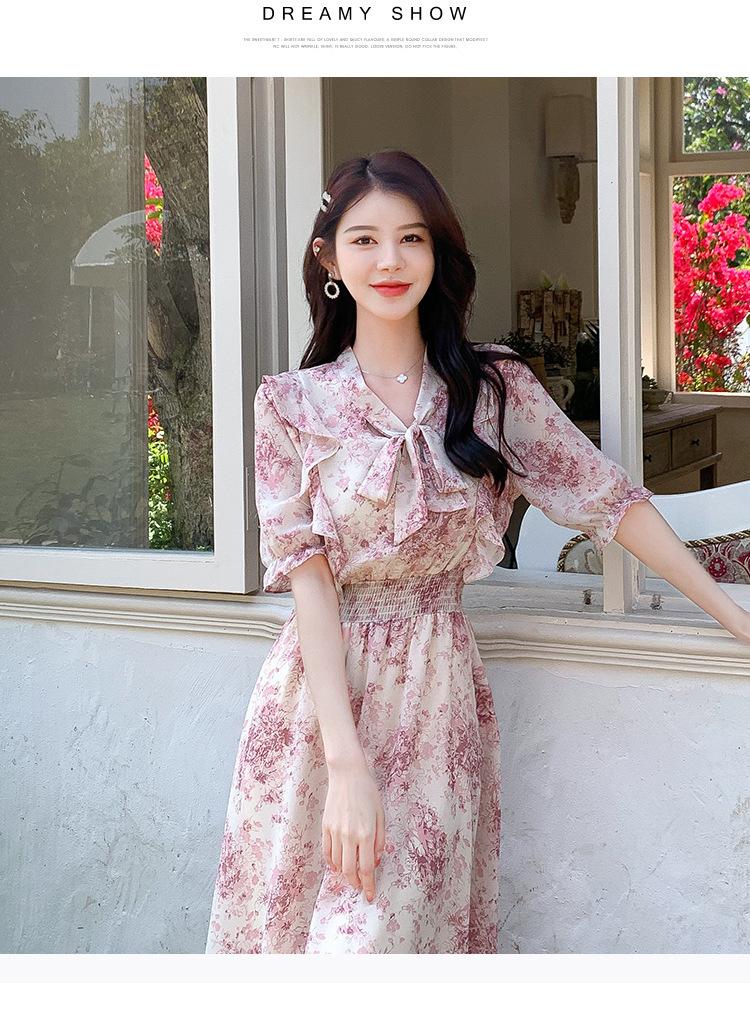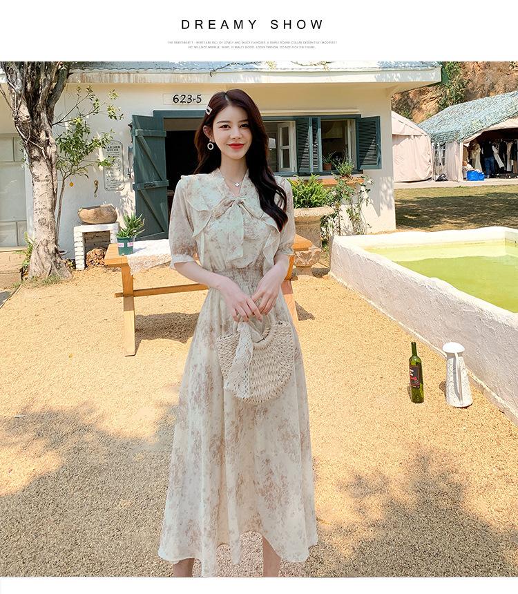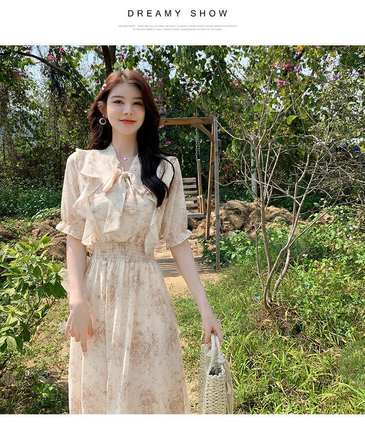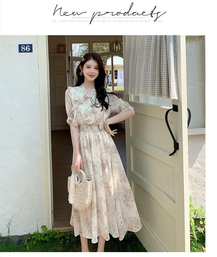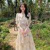 Vestido de gasa con escote en V francés, estilo suave y cruzado, para mujer, nuevo vestido de verano con volantes, corte A, floral, ajustado