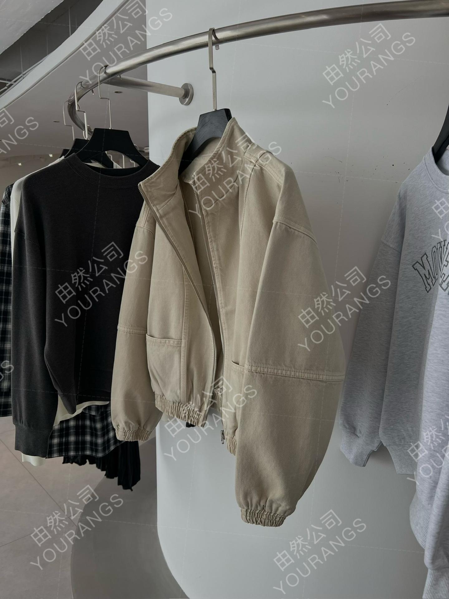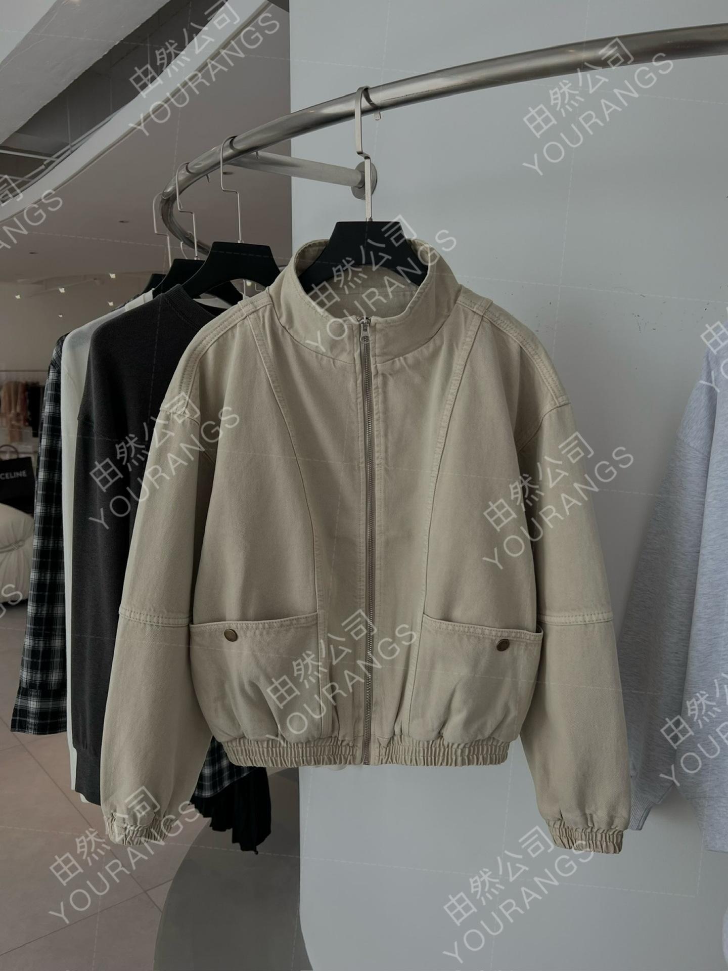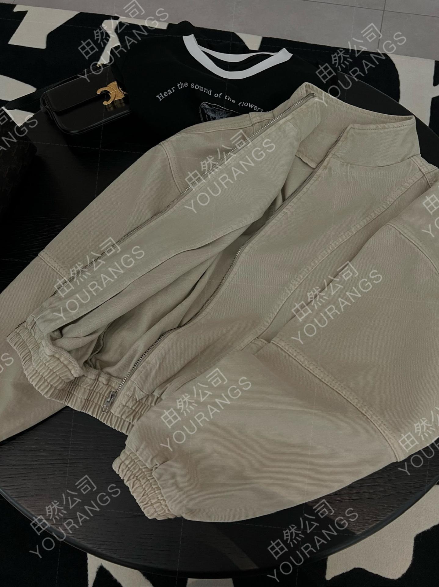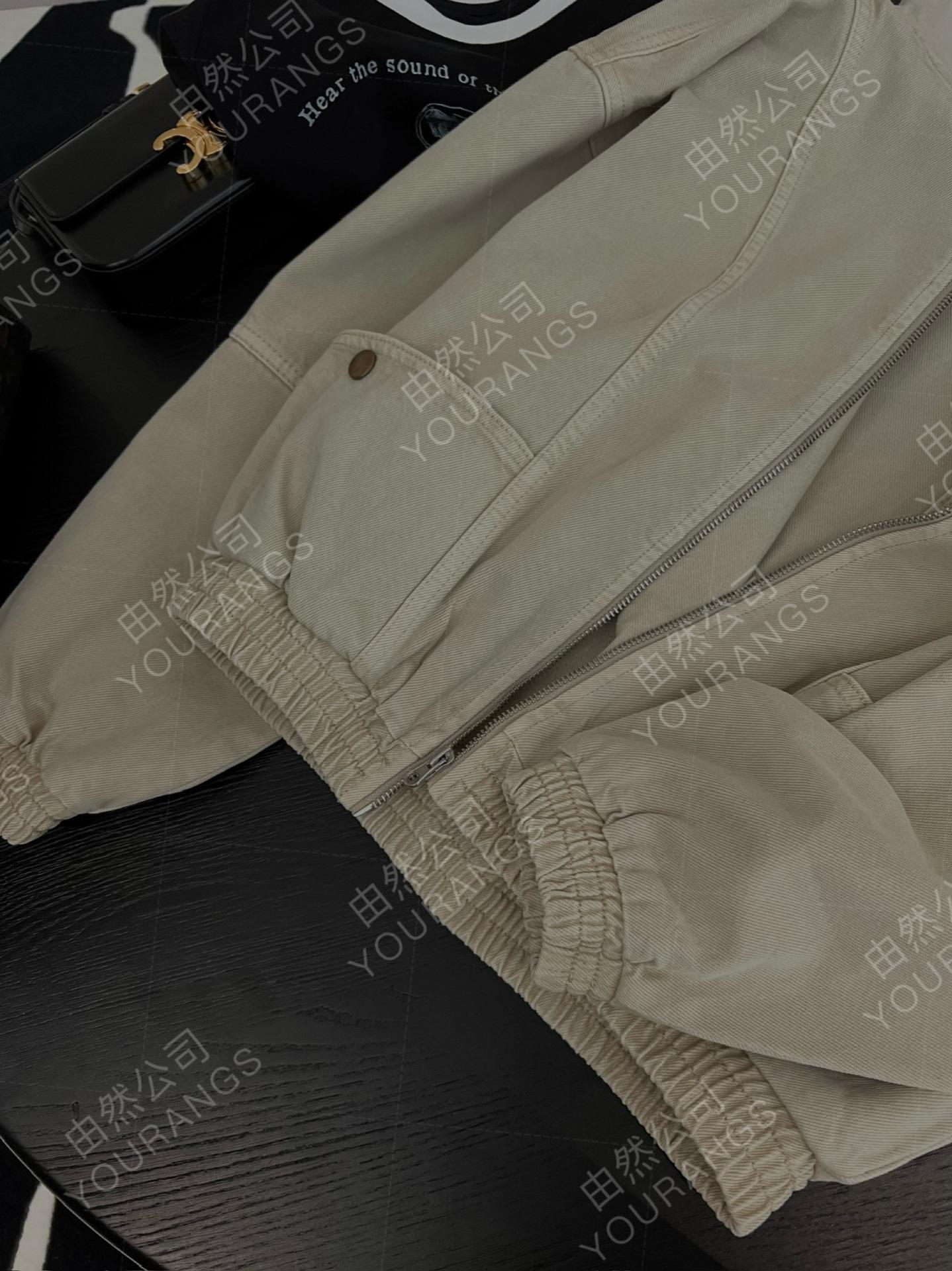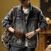 25 Otoño/Invierno Nc Asutte Estilo Ropa de Trabajo Denim Lavado Descolorido Chaqueta de Piloto Suelta Vintage Abrigo Pequeño