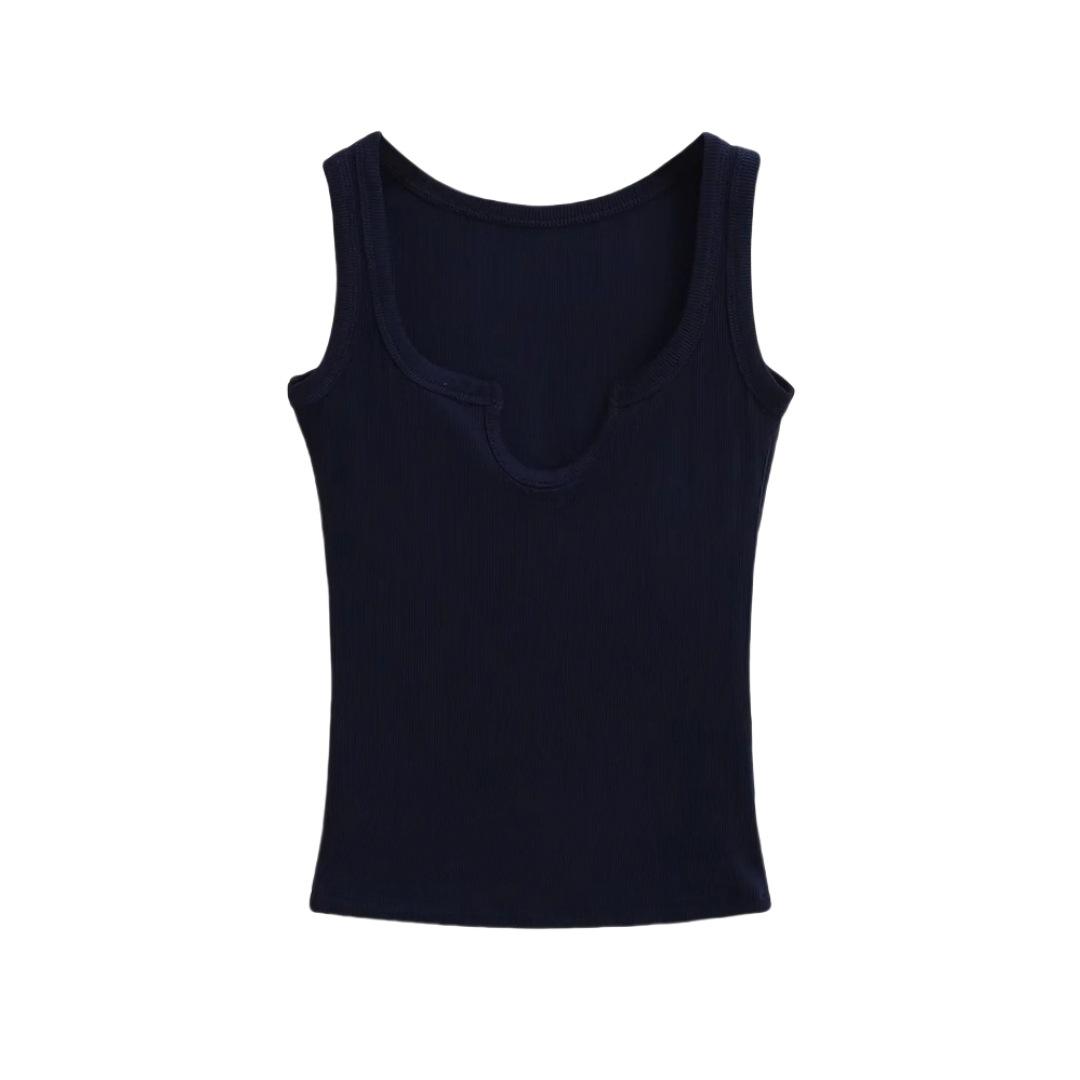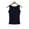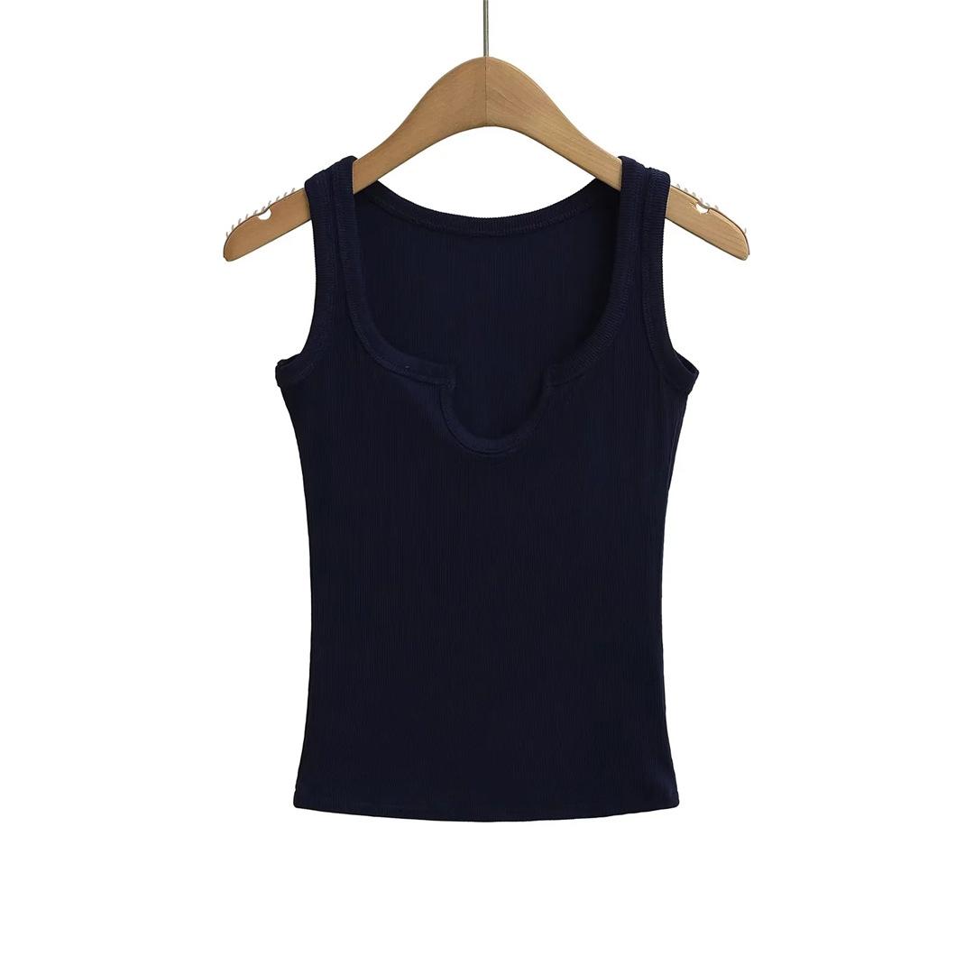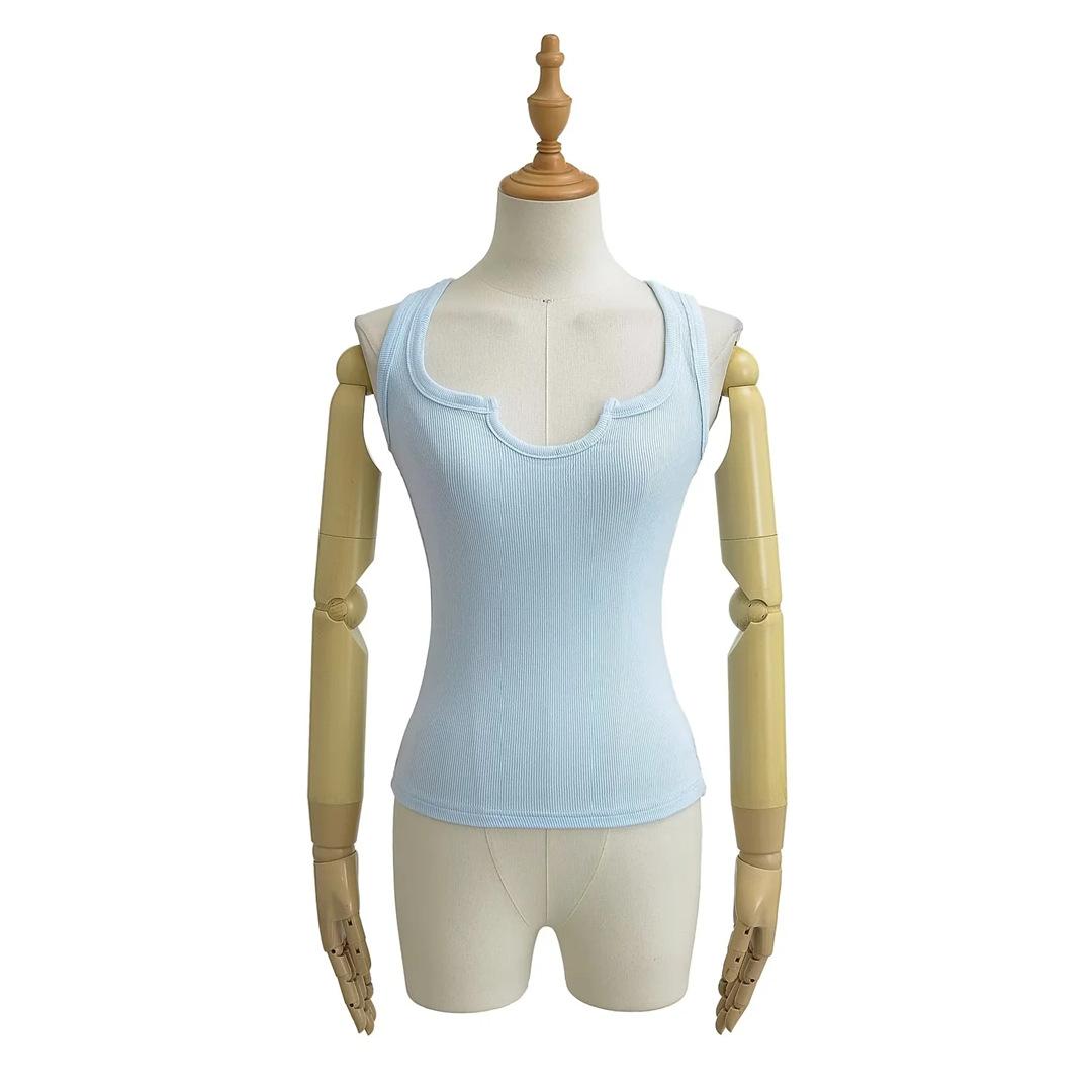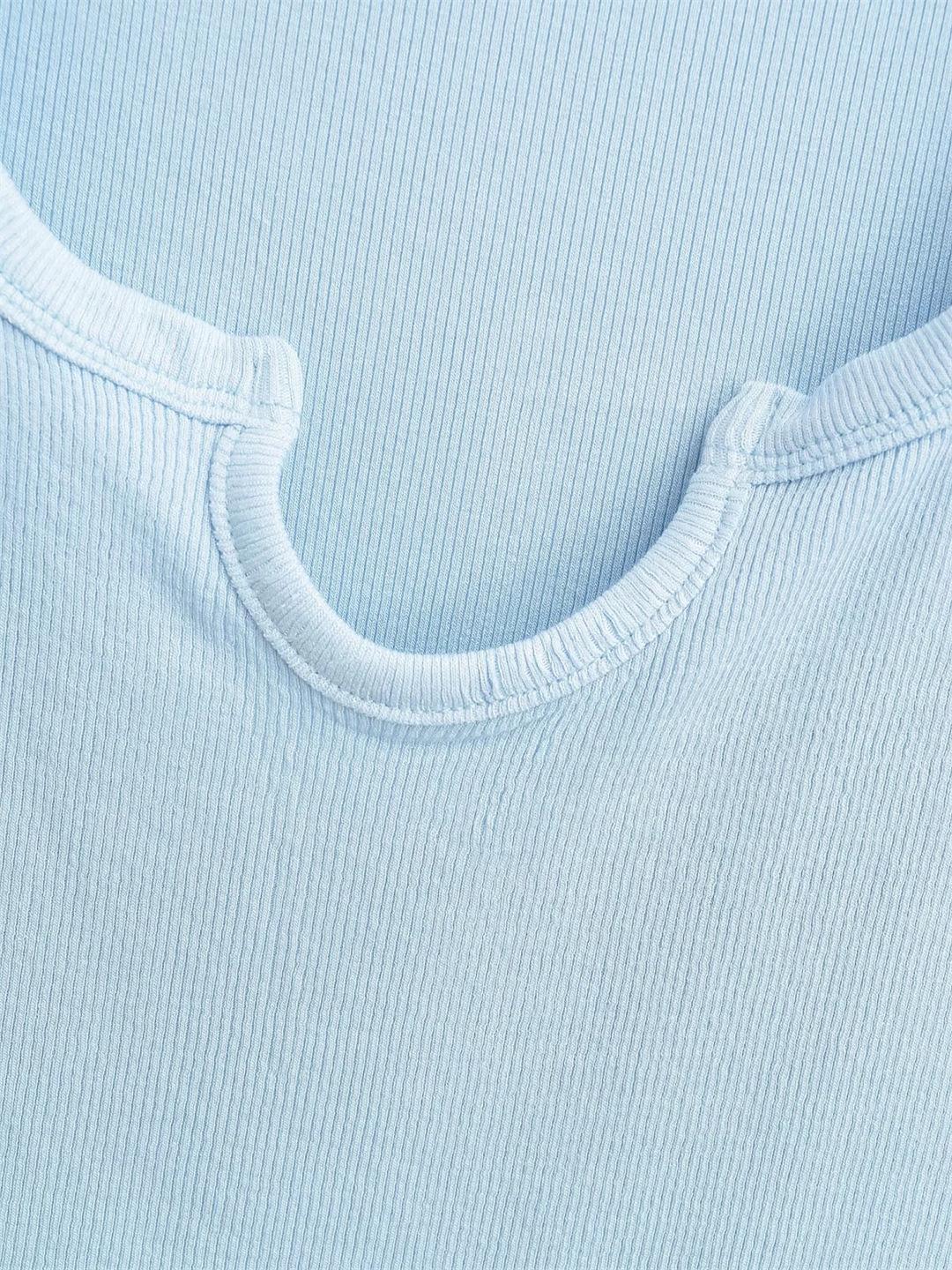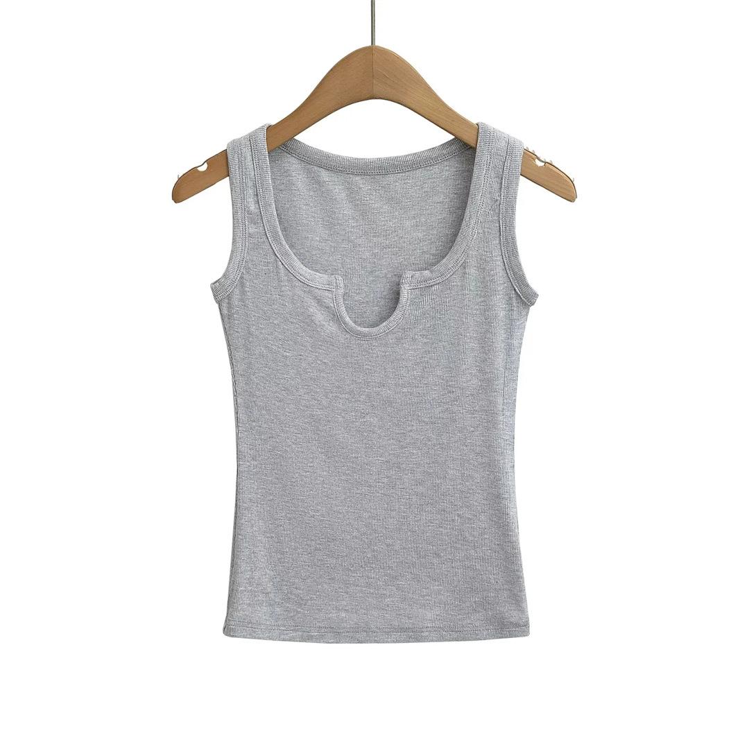 Top corto básico de color liso, estilo americano, sencillo, con escote en U, sin mangas y elástico, ajustado y con pecho pequeño para chica sexy.