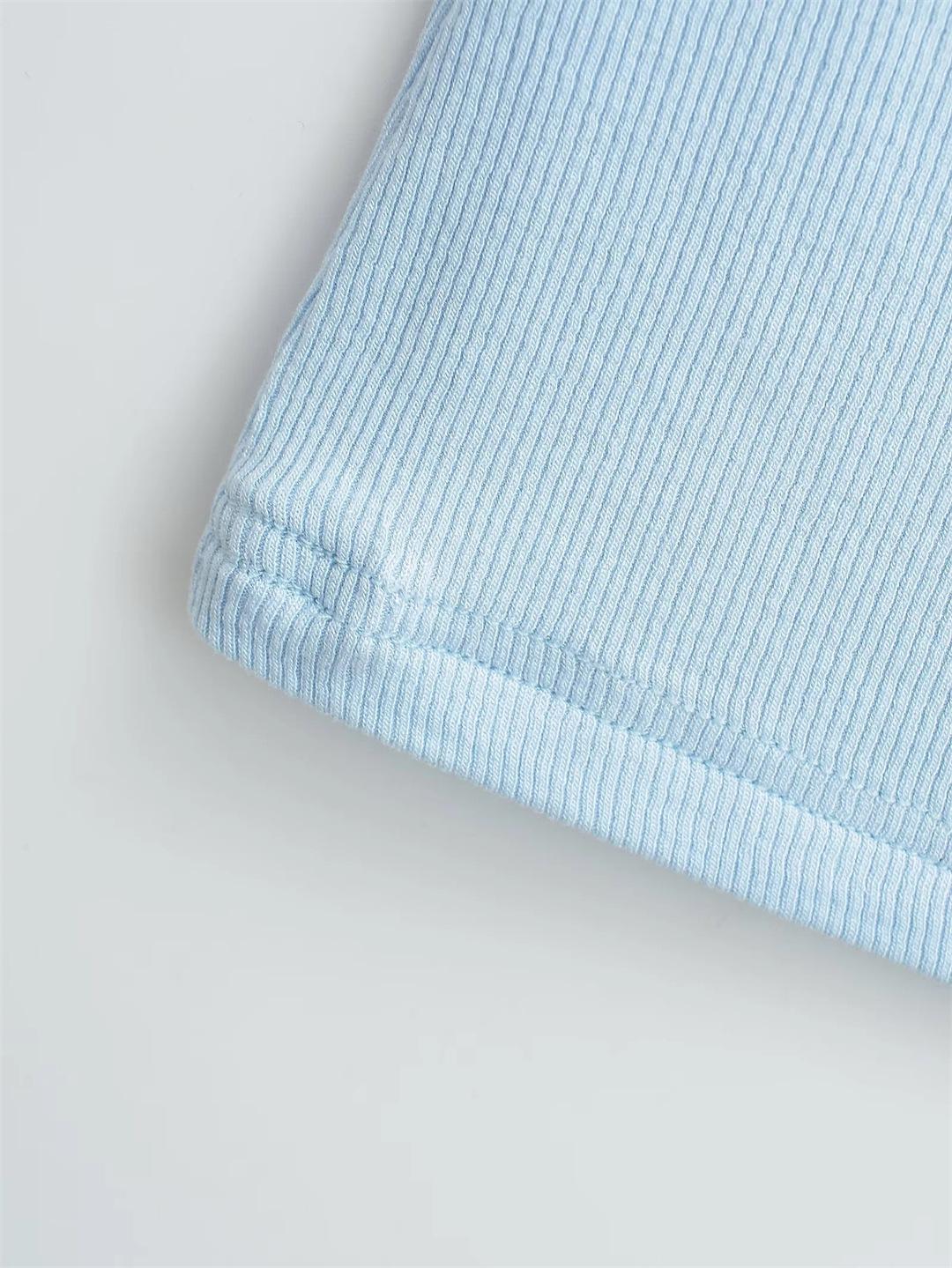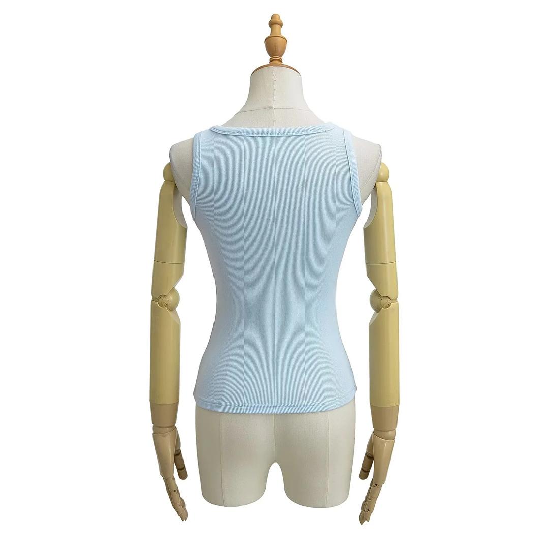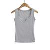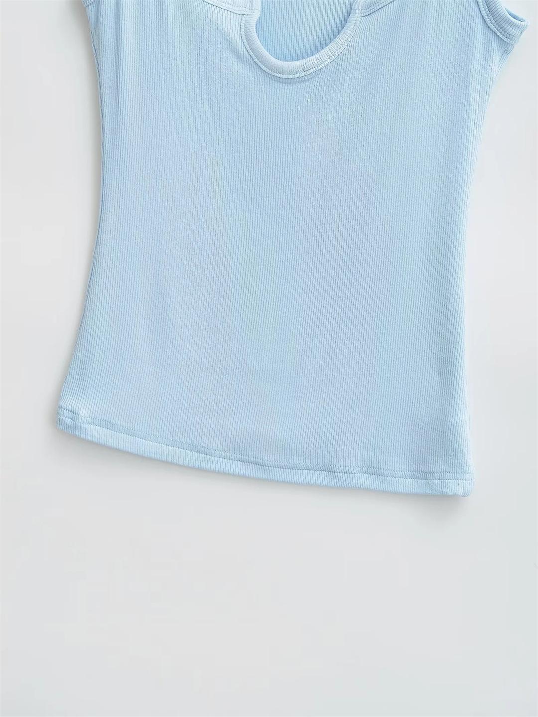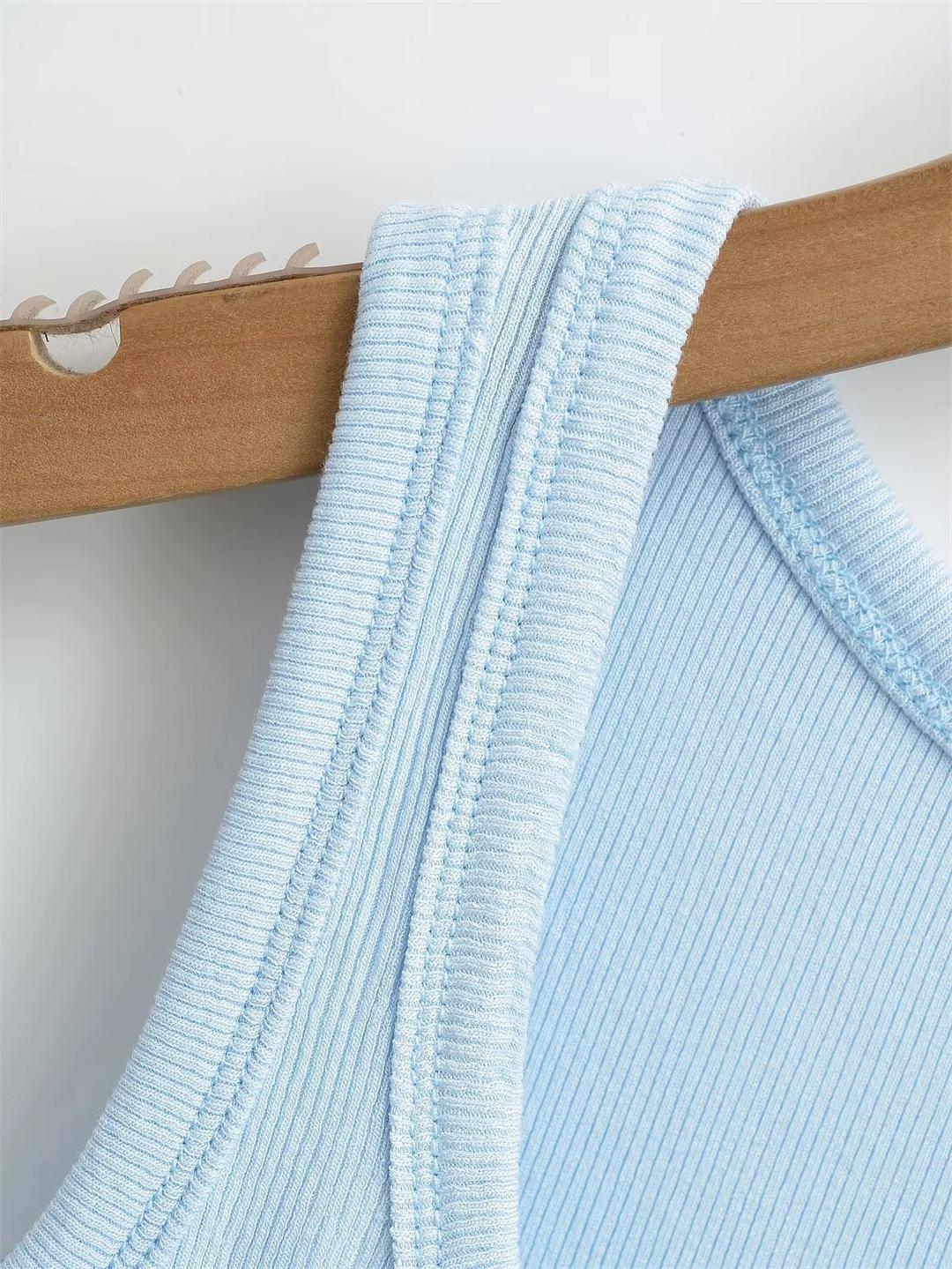 Top corto básico de color liso, estilo americano, sencillo, con escote en U, sin mangas y elástico, ajustado y con pecho pequeño para chica sexy.
