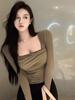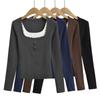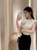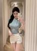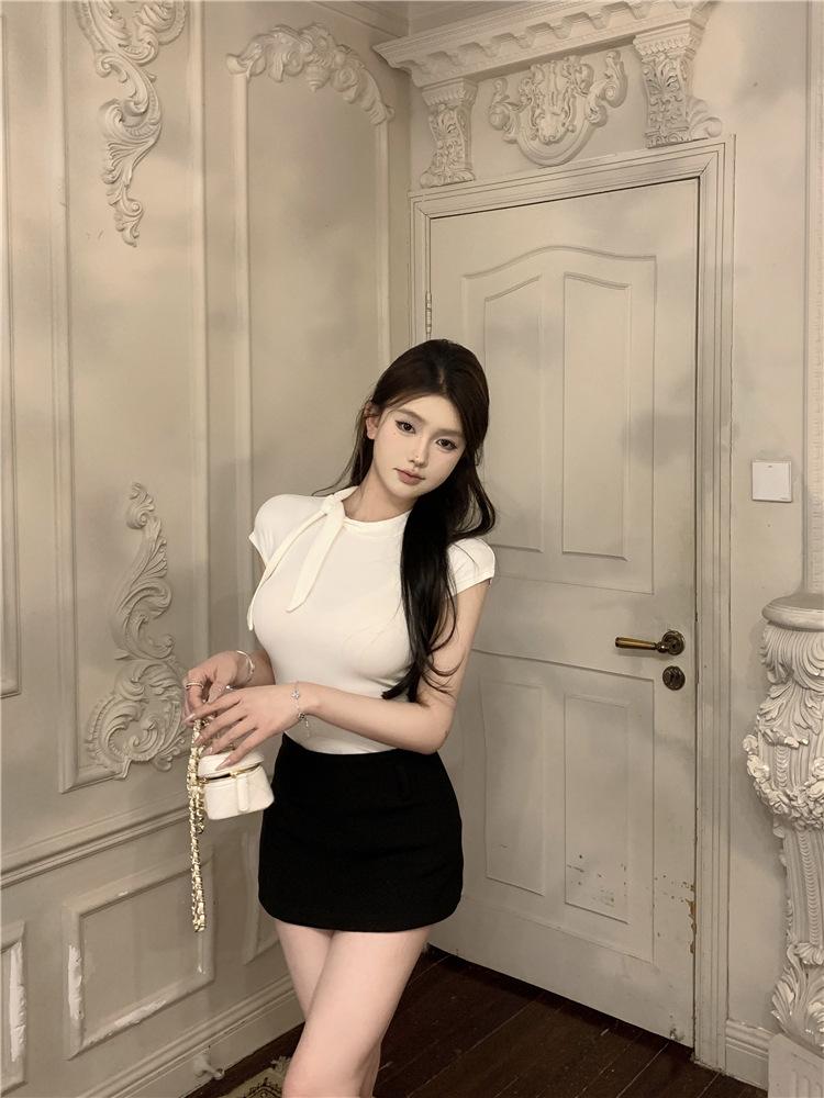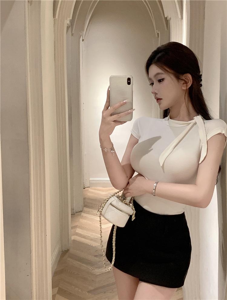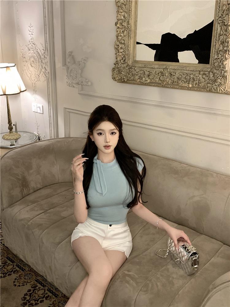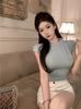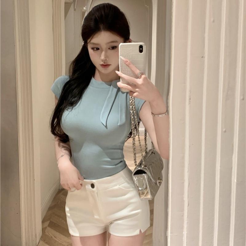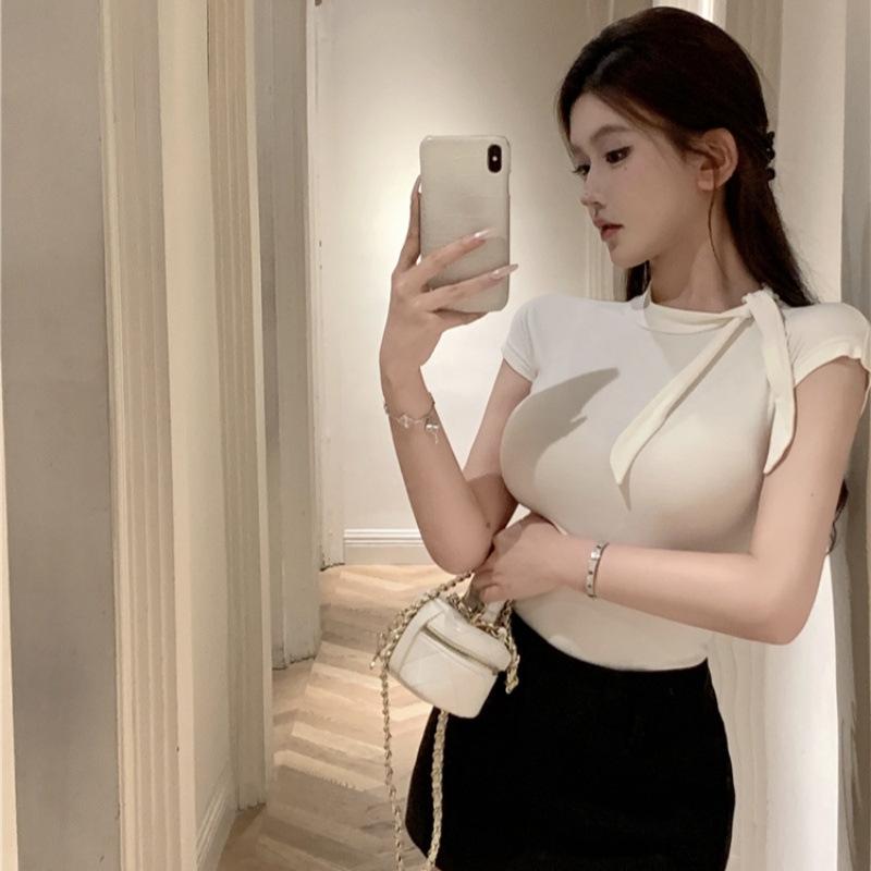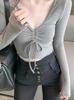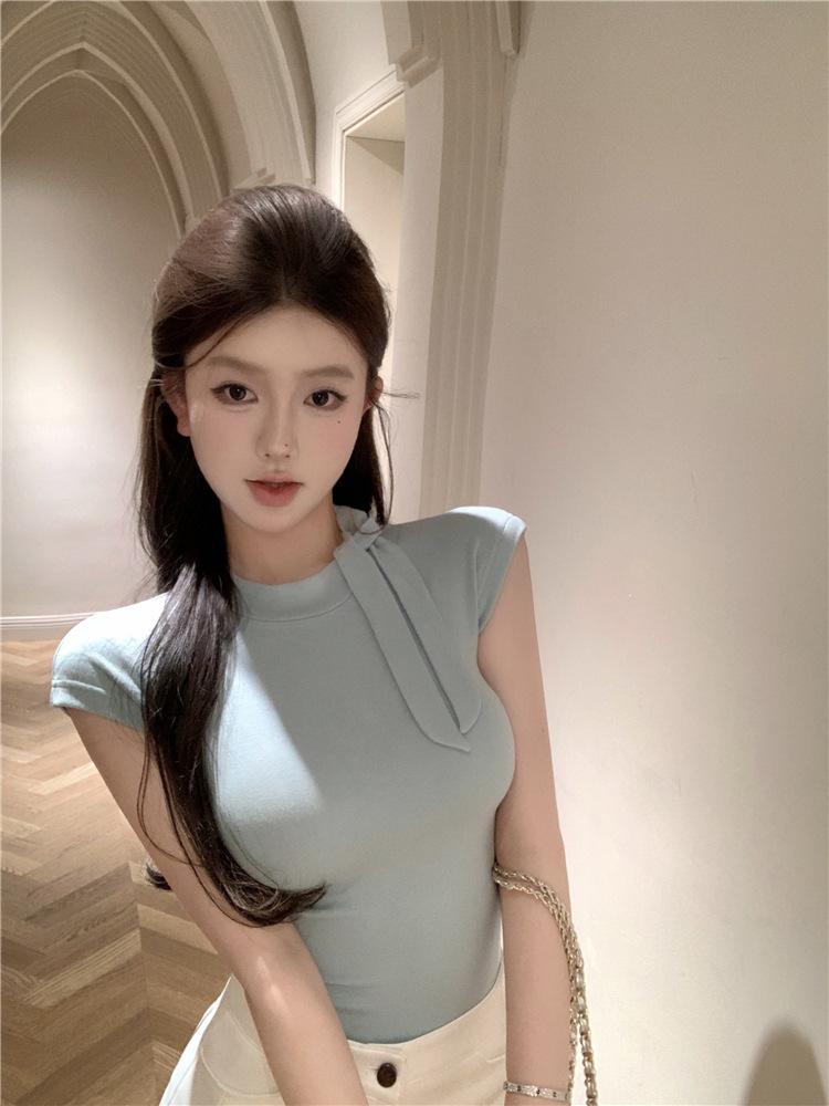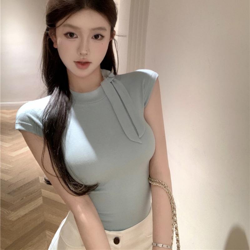 Camiseta de diseño con cordones, ajustada, adelgazante, de cintura ajustada y cuello medio alto, estilo coreano 2024, top de estilo informal que combina con todo para mujer.