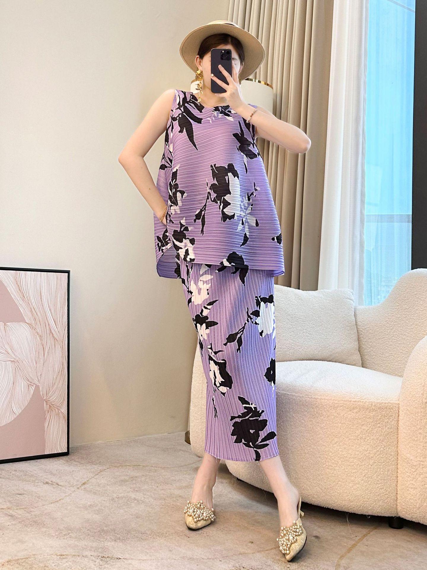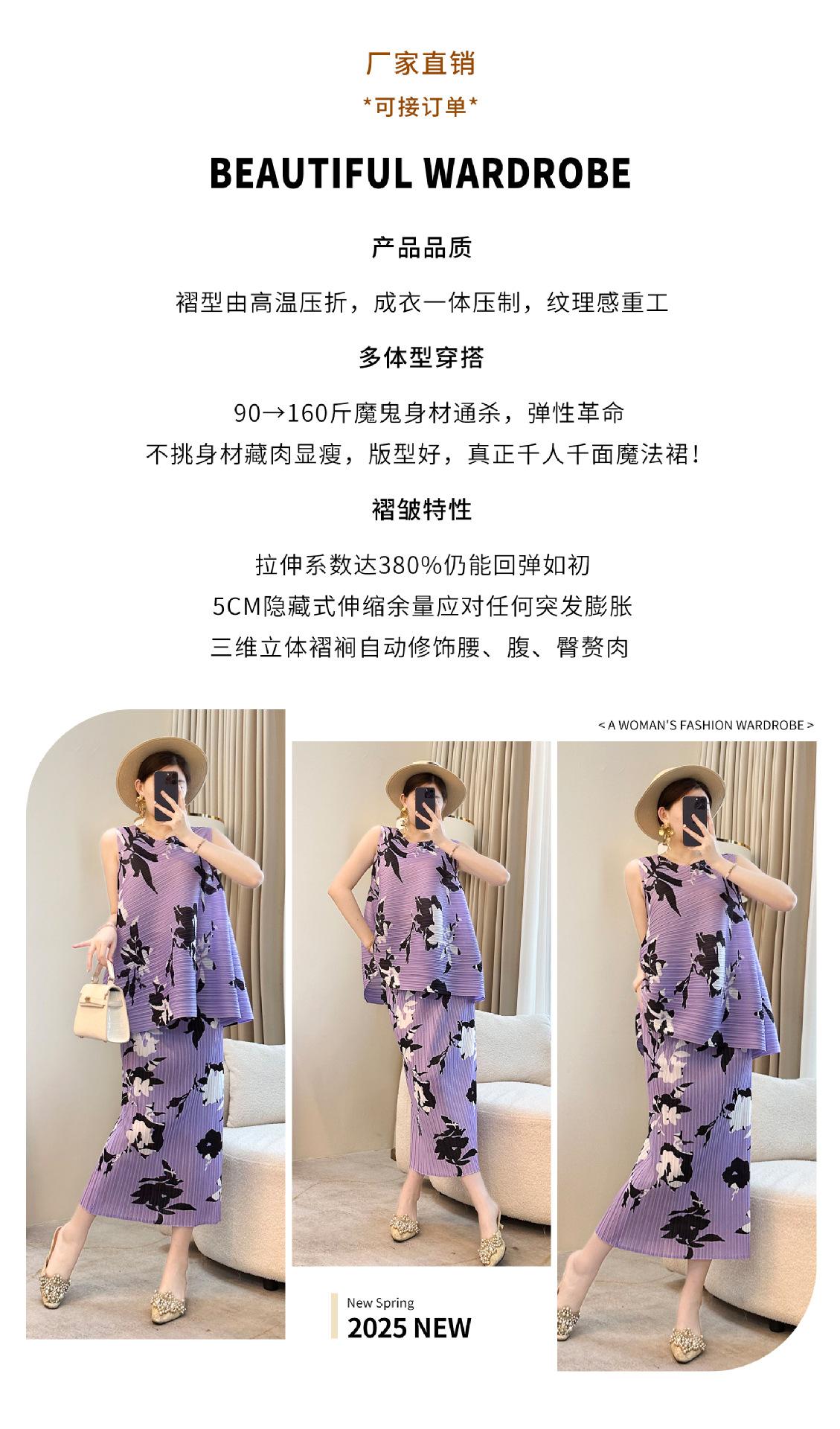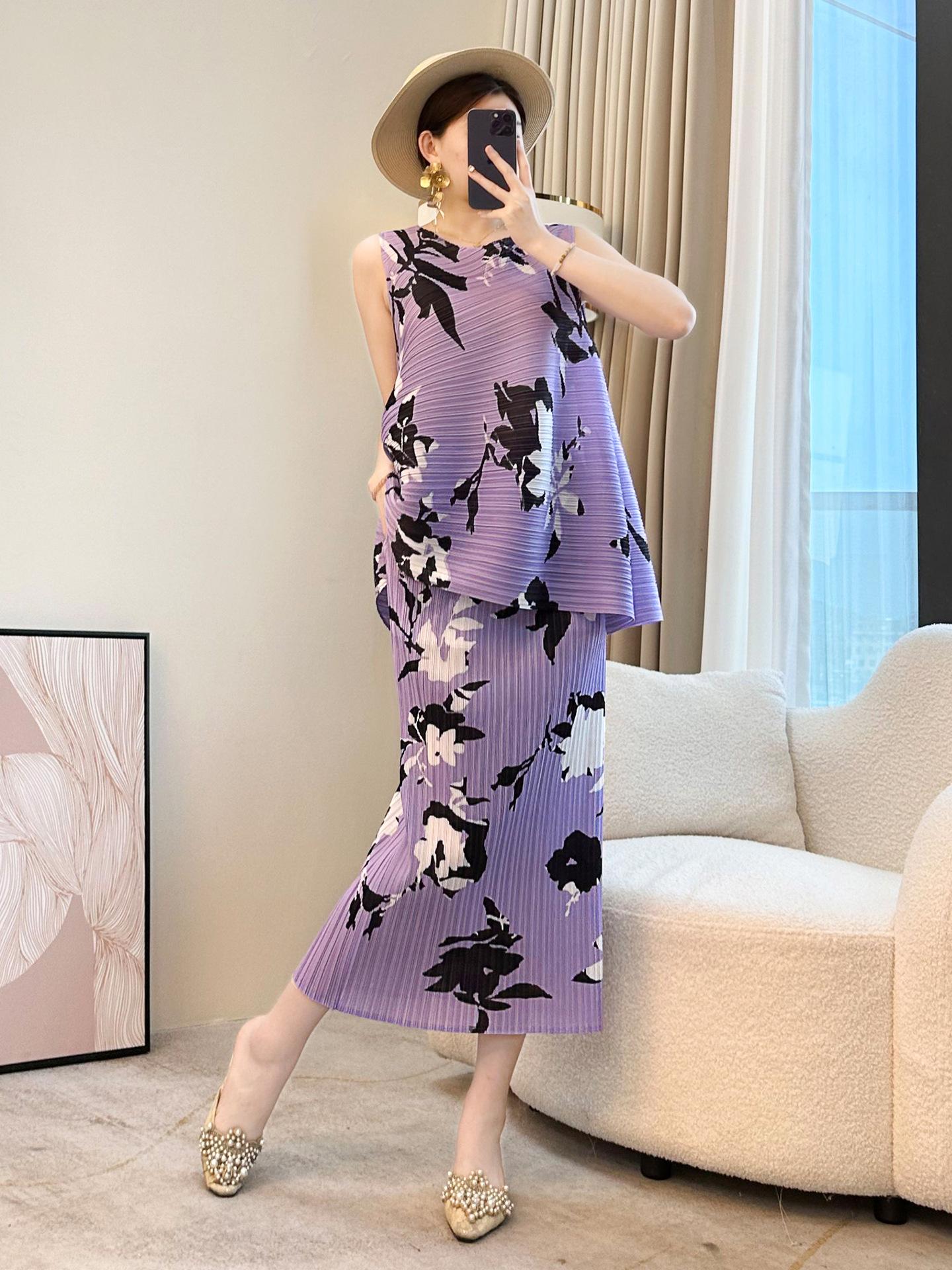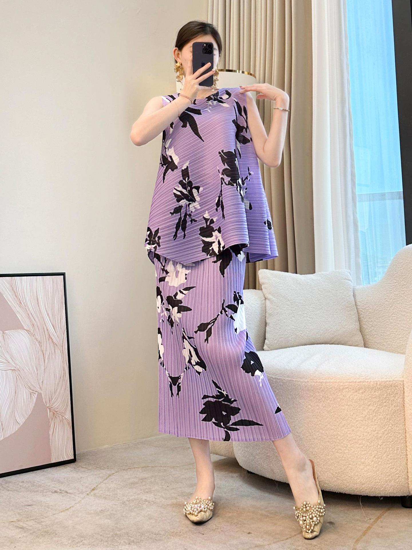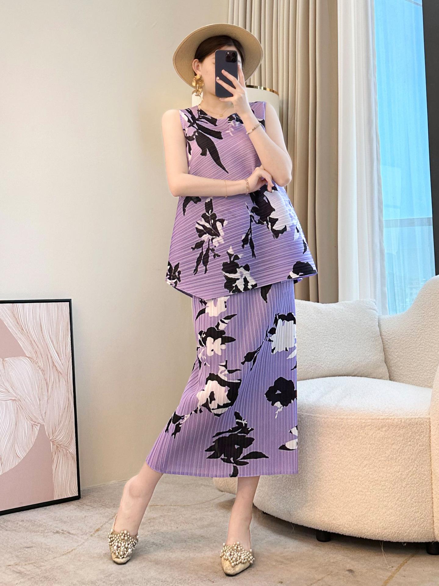 Conjunto Casual de Dos Piezas para Mujer de Verano 2025 Nuevo Elegante Holgazán Miyake Top Falda Plisada