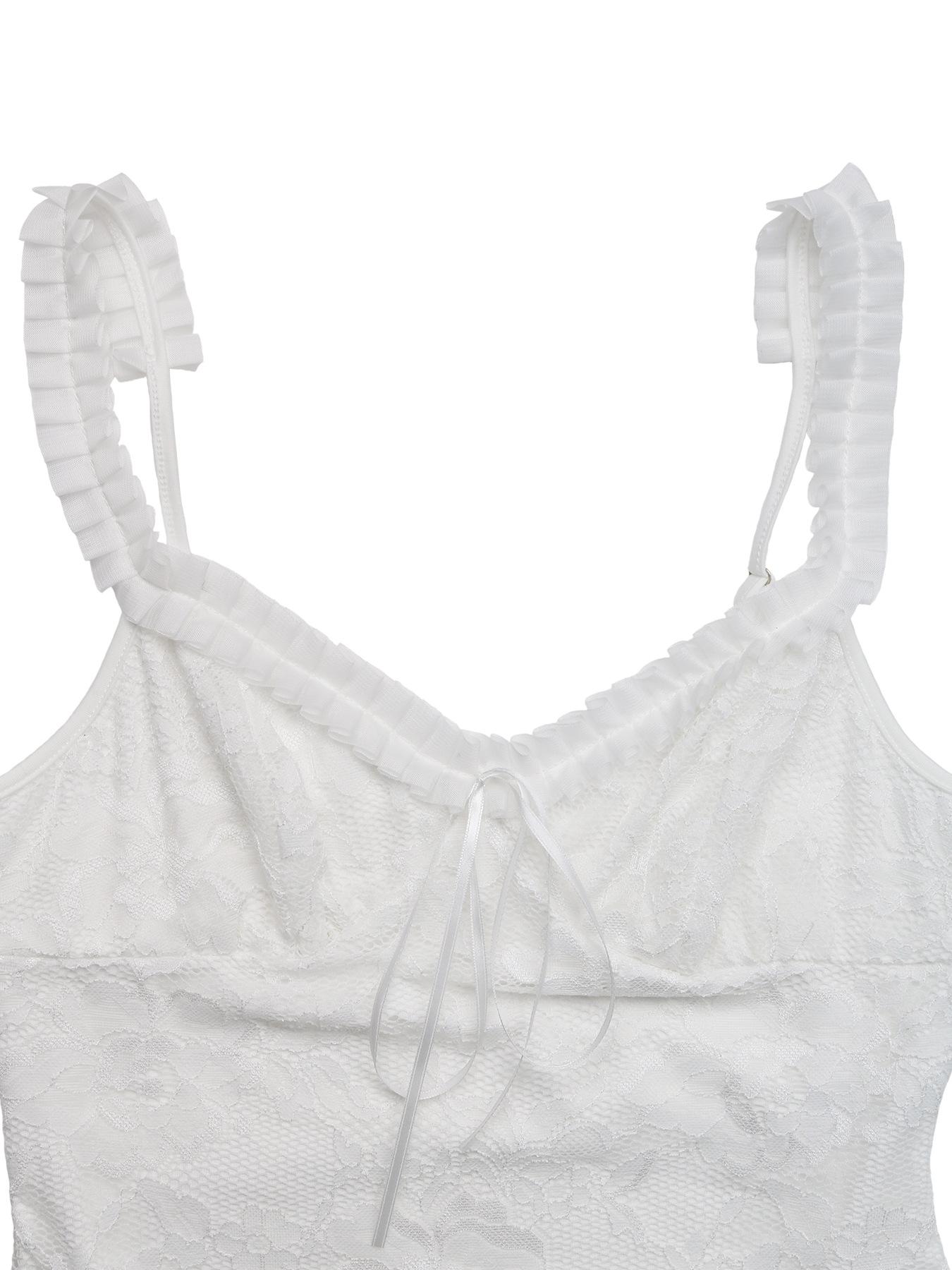 2025 Primavera y Verano Nuevo Estilo Color Puro Ajustado Dulce Sexy Estilo Ins Sin Mangas Tirantes Encaje Body Mujer