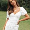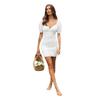 Vestido corto con escote en V y lazo en la cadera, color liso, para mujer, transfronterizo, Europa y Estados Unidos, 2023