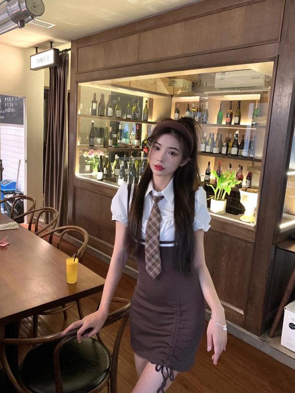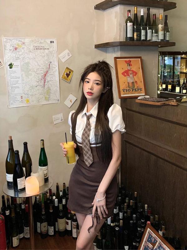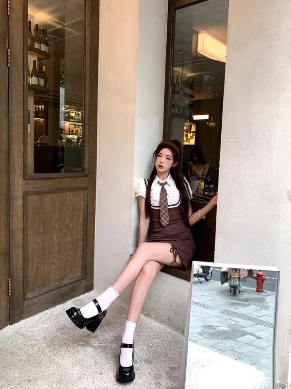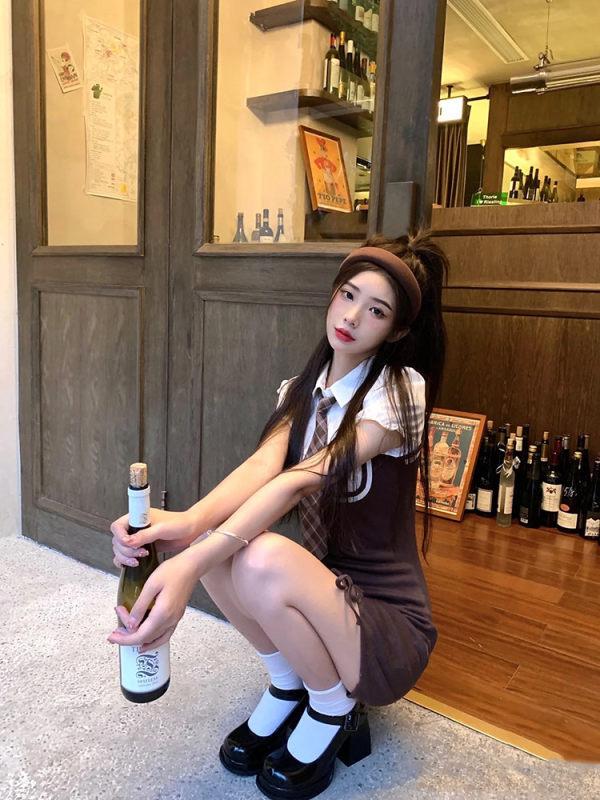 Vestido de dos piezas con tirantes finos y diseño de estilo universitario para mujer, de comercio exterior, falda JK de estilo dulce y puro, para verano de 2025.