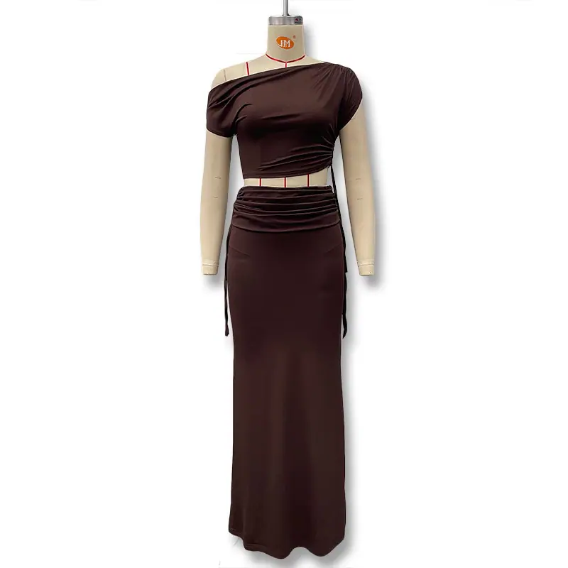 Traje de falda dividida con hombros descubiertos y cordones en color liso para mujer, primavera y verano de 2025, estilo europeo y americano transfronterizo