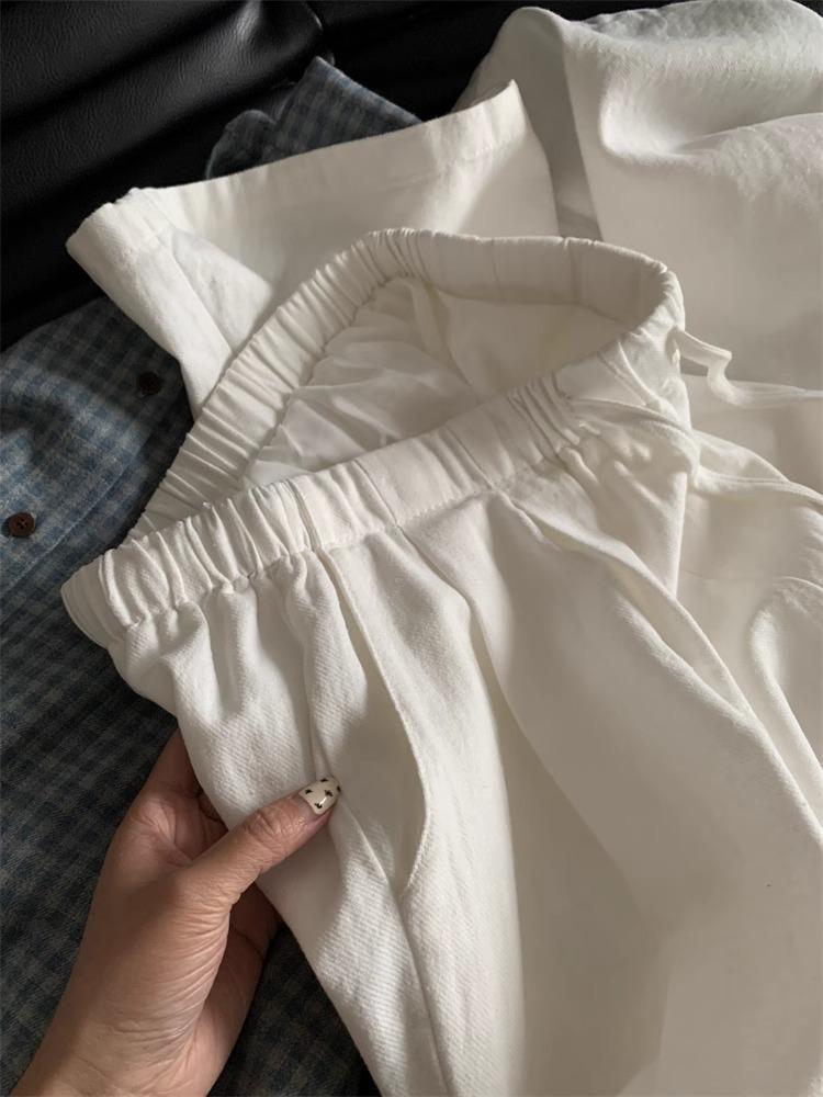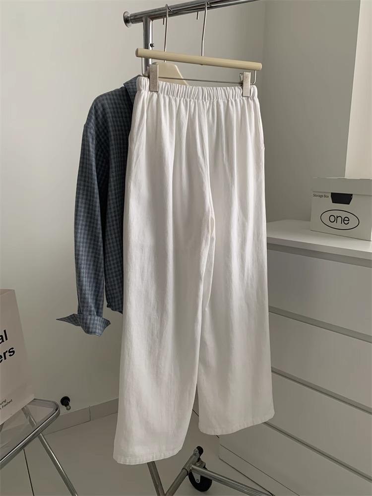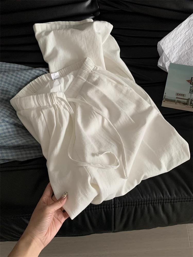 Pantalones blancos de imitación de lino de estilo temperamental para mujer, pantalones casuales rectos con forro de alta gama, sueltos e informales, para primavera y verano