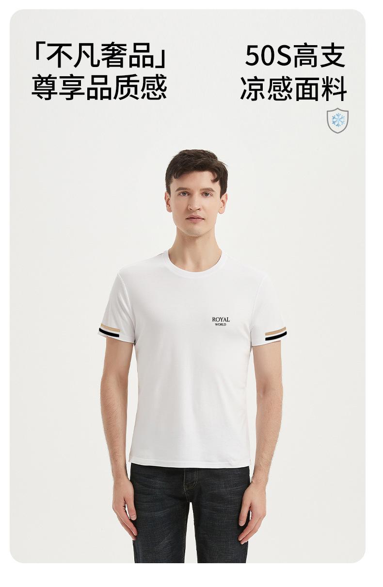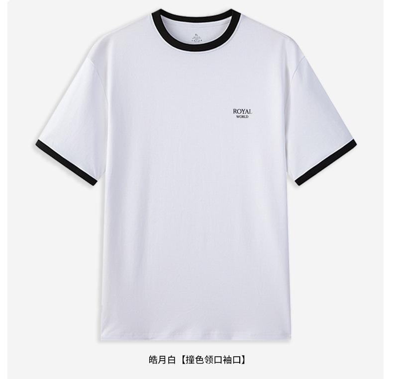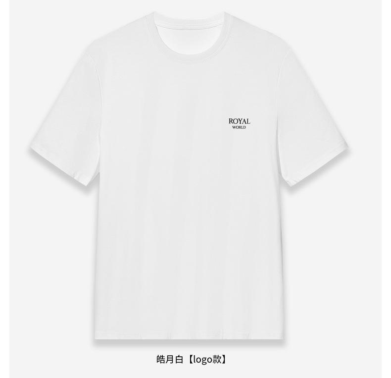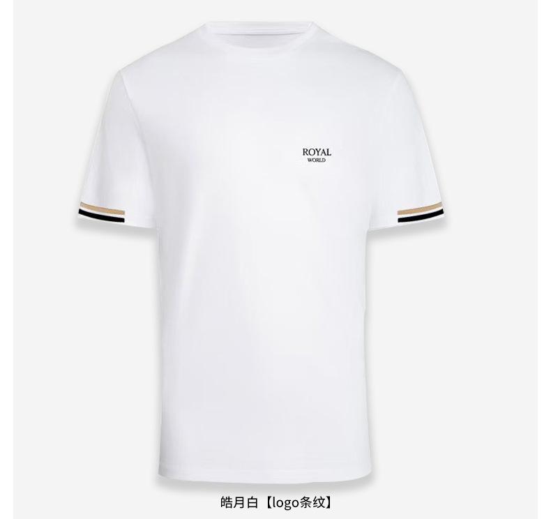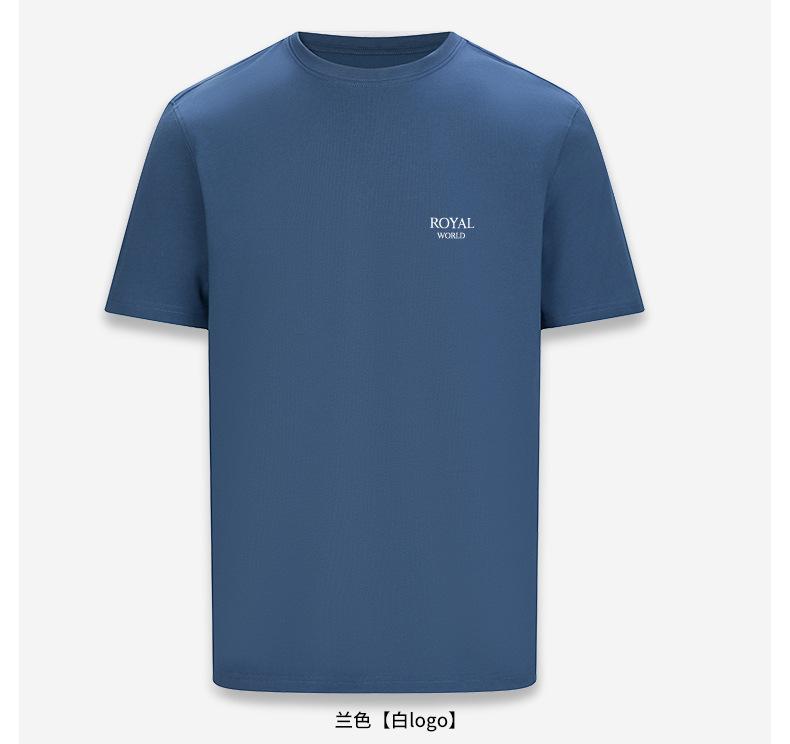 100% cotton blue short-sleeved men [white classic small royal logo]