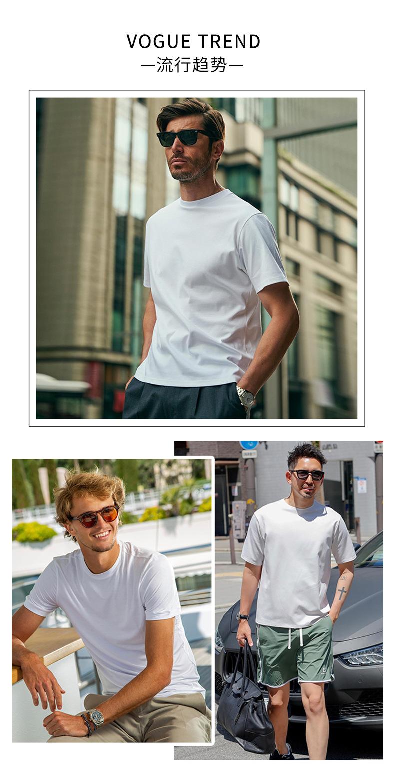 Camiseta de manga corta para hombre, 100% algodón, color blanco, base, algodón mercerizado, nueva camiseta de cuello redondo para primavera y verano.