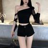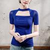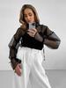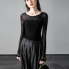 Camiseta de manga larga recortada con aberturas y malla elástica