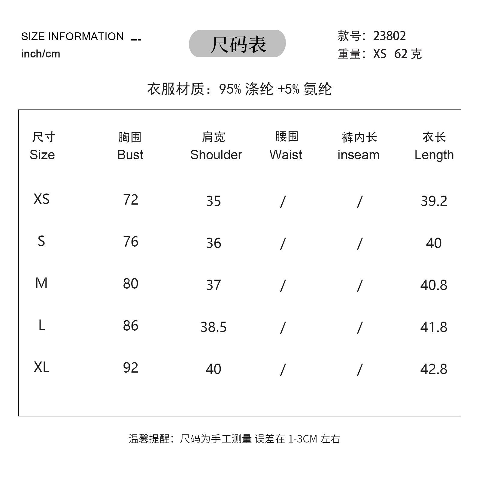 XS, S, M, L, XL