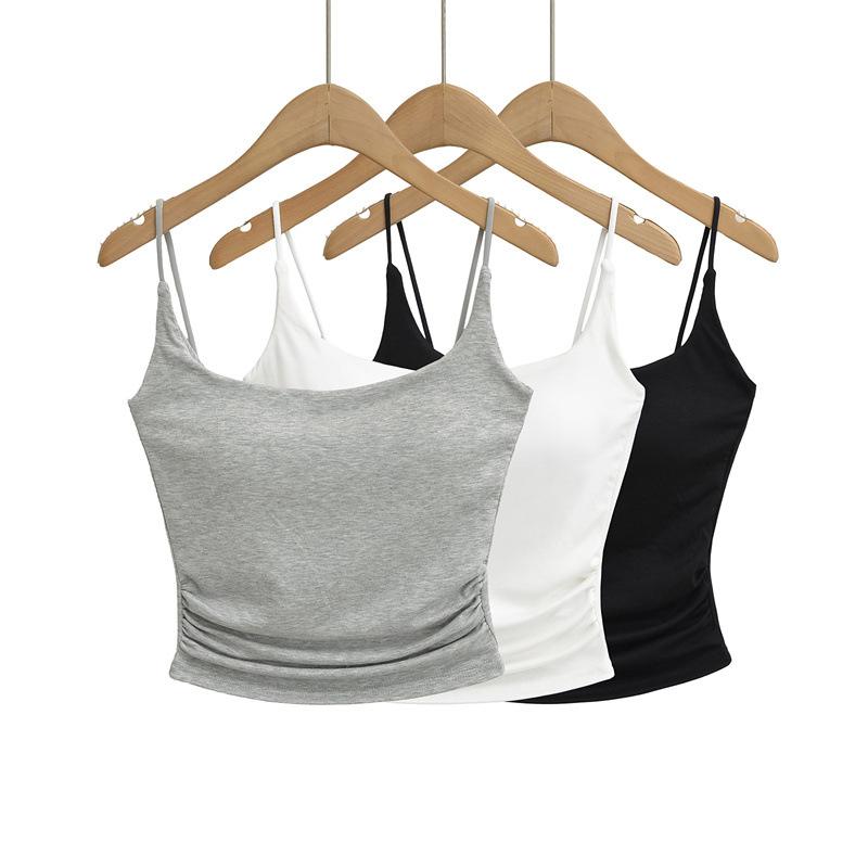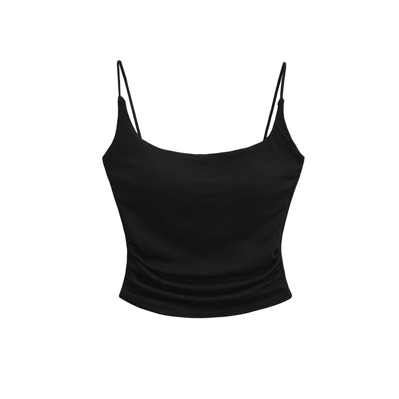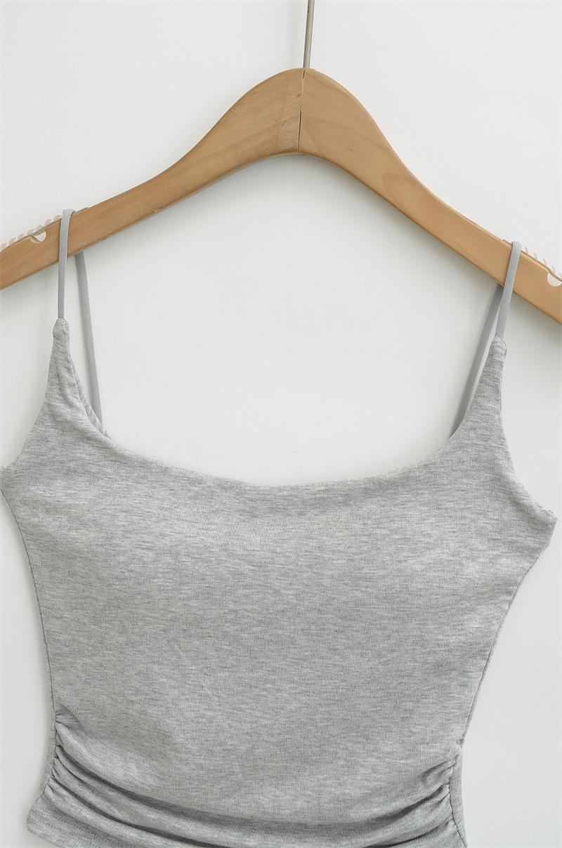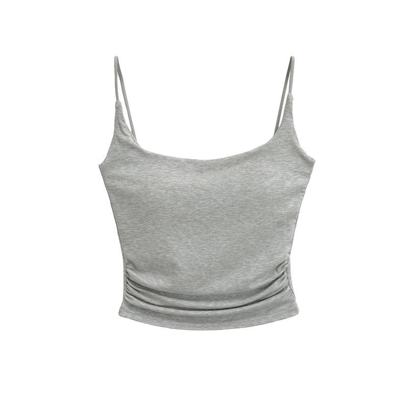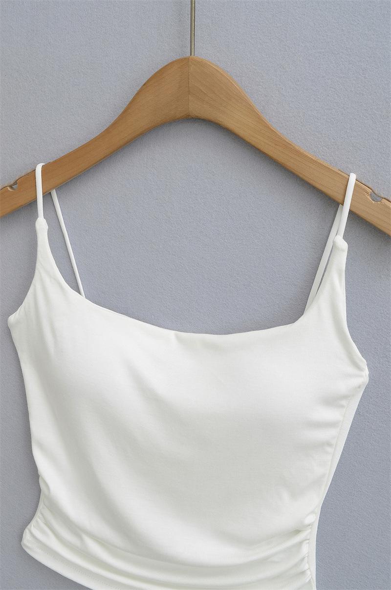 Deseo Puro Chica Caliente Sexy Camisola Plisada con Almohadilla para el Busto 2025 Verano Nueva Moda Top Corto Ajustado para Mujer