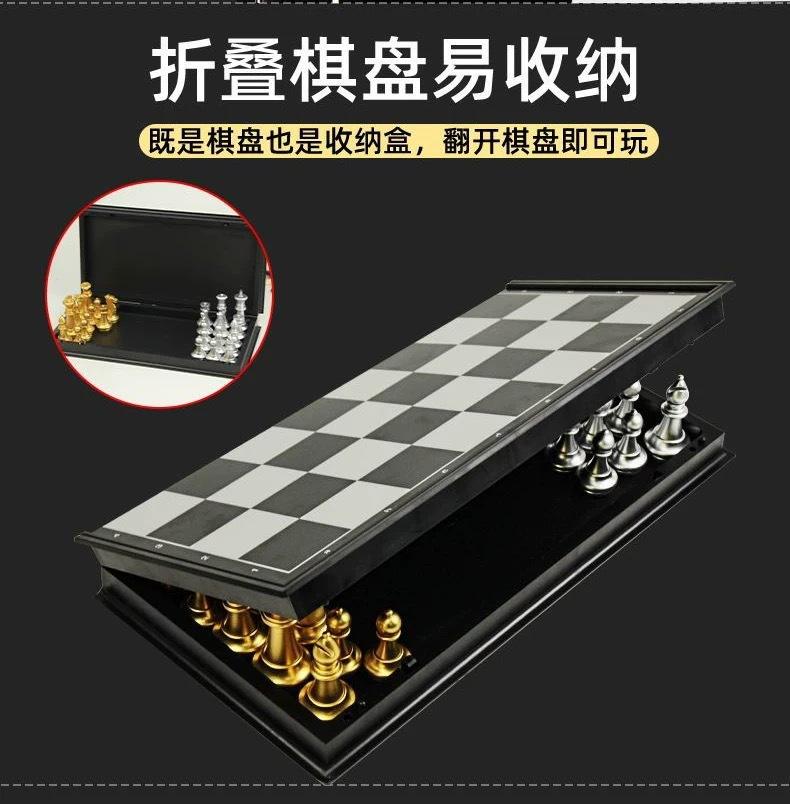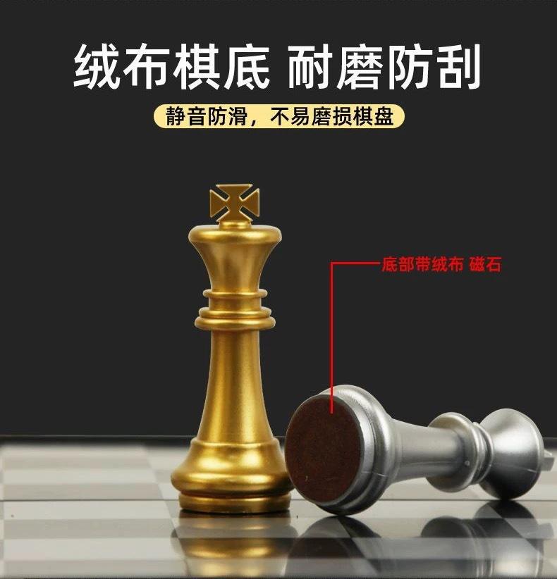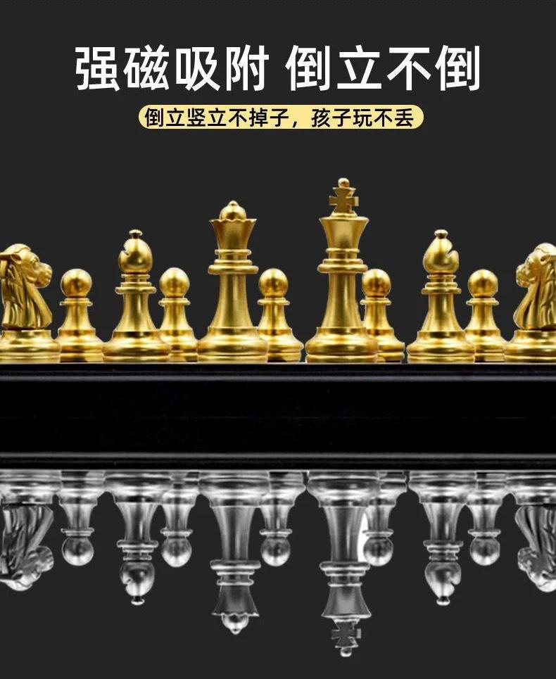 Tablero de ajedrez magnético plegable AIA 3810A dorado y plateado, ideal para desarrollar la inteligencia.