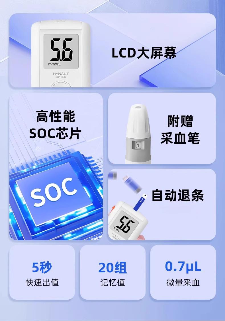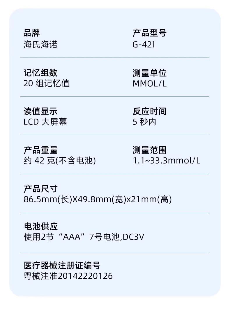 1 blood glucose meter + 50 blood glucose test strips + 30g/50 blood collection needles