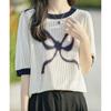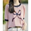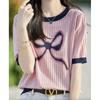 Camiseta de Manga Corta para Mujer 2025 Nuevo Estilo Lazo Especial Talla Grande Verano para Mujer Delgada Holgada Tejido de Punto Seda de Hielo Top