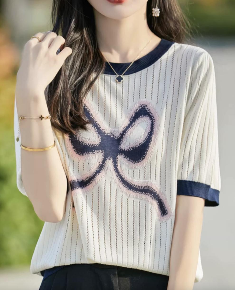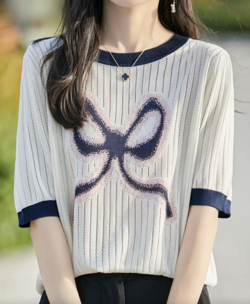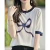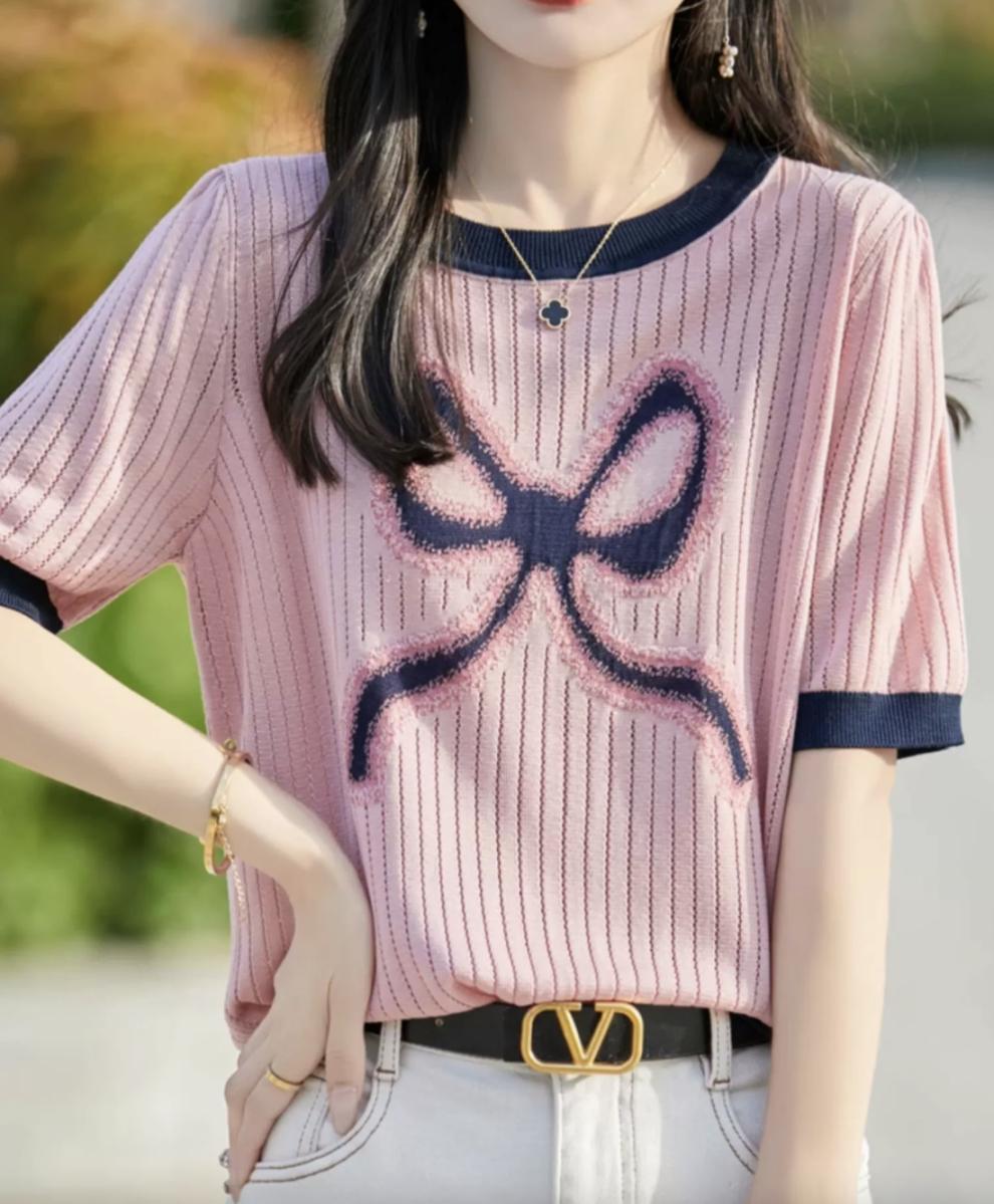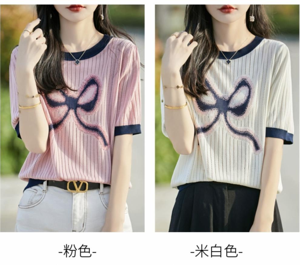 Compra Camiseta de Manga Corta para Mujer 2025 Nuevo Estilo Lazo Especial Talla Grande Verano para Mujer Delgada Holgada Tejido de Punto Seda de Hielo Top al por mayor en Joom.pro