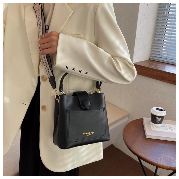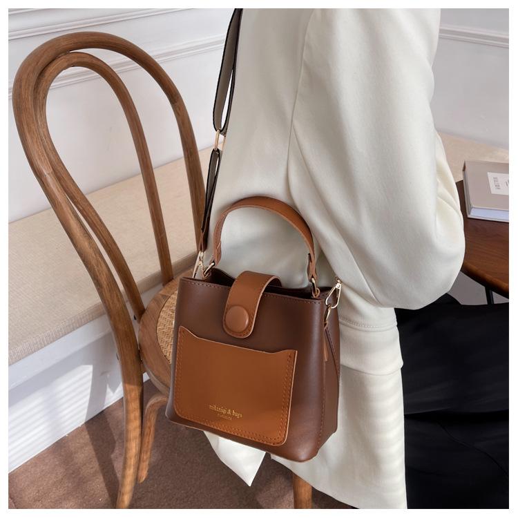Bolsos de mujer de otoño e invierno, bolso tipo cubo esmerilado, de alta gama, de gran capacidad, cruzado de un solo hombro, temperamento nicho, bolso pequeño de mano debajo del brazo