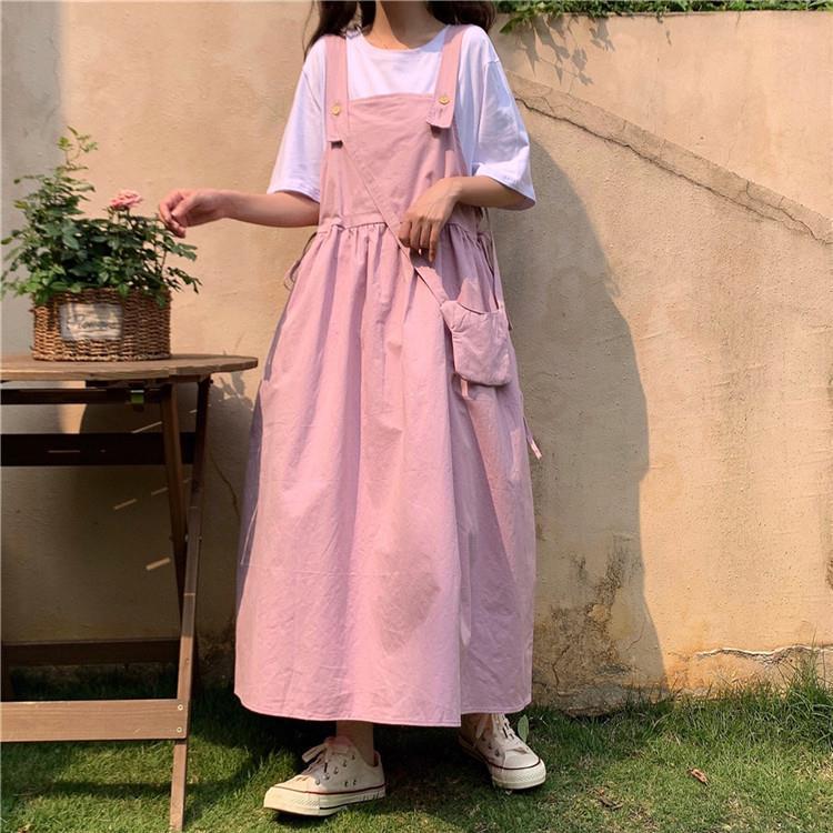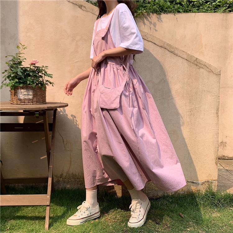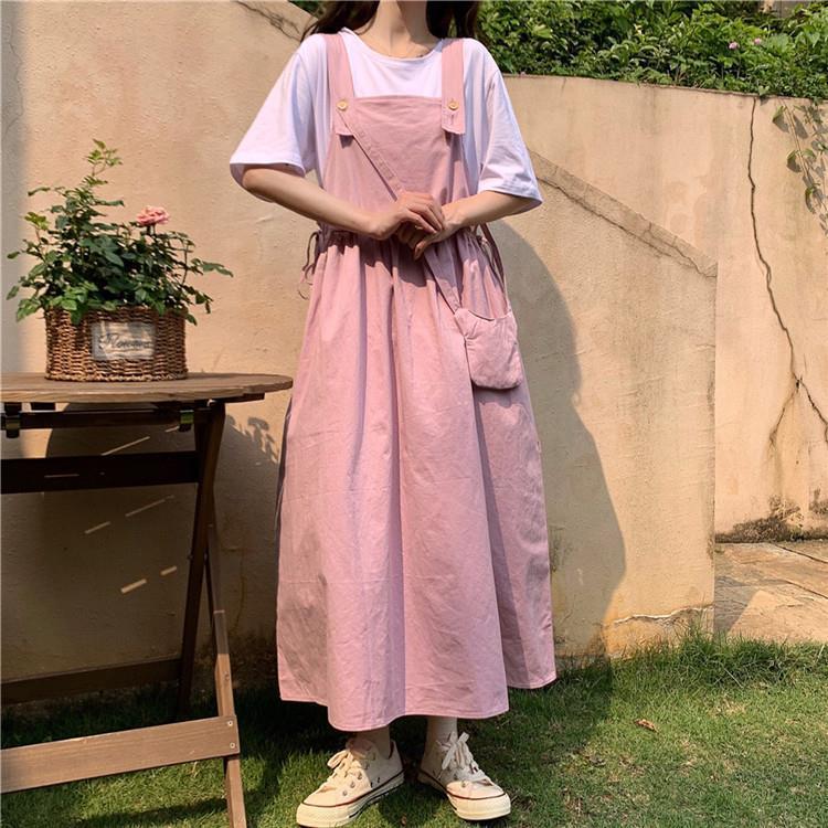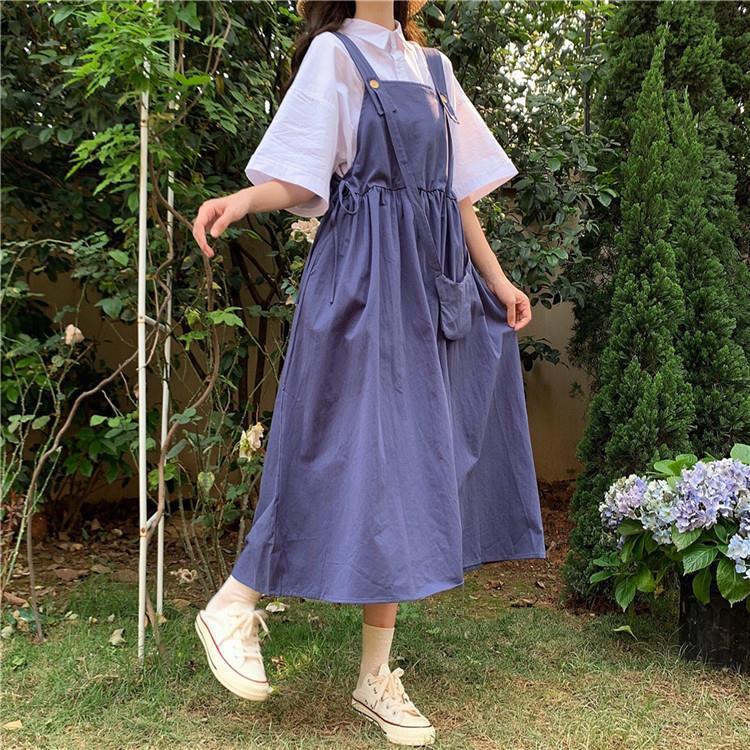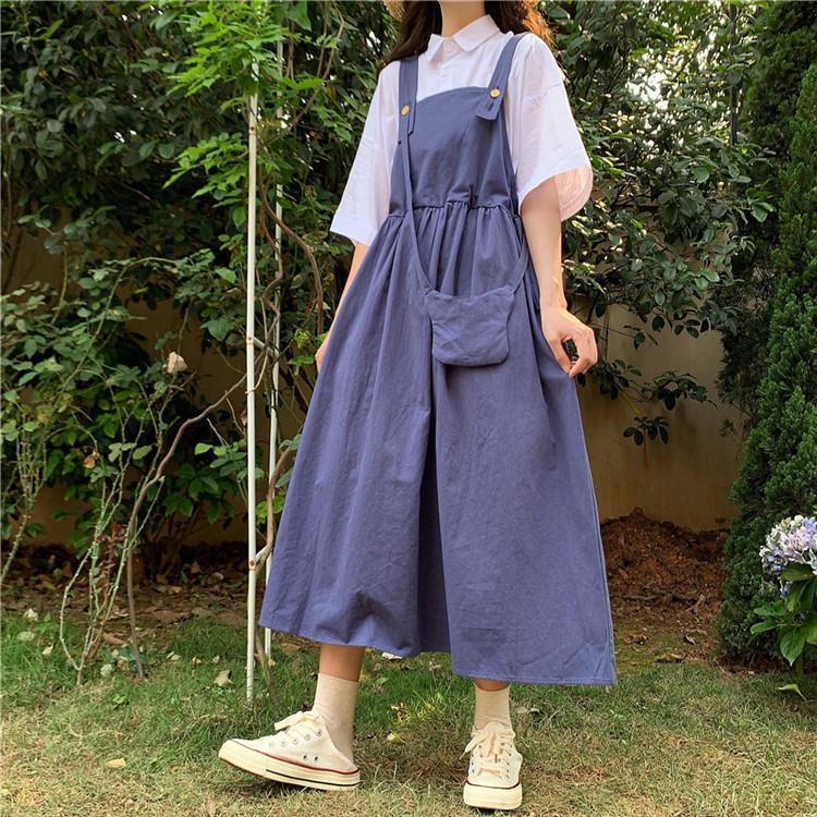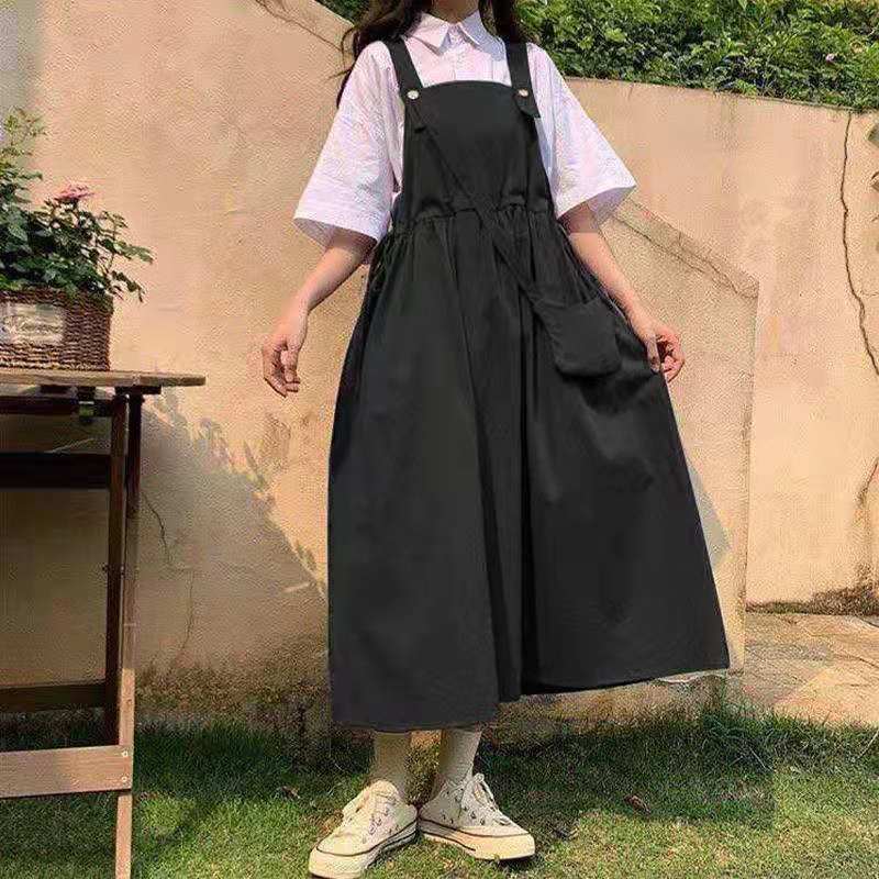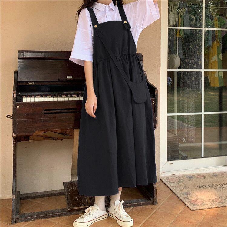 Vestido de tirantes estilo universitario estilo japonés, vestido largo para estudiantes, vestido de verano estilo coreano holgado, combinable, de longitud media, moderno