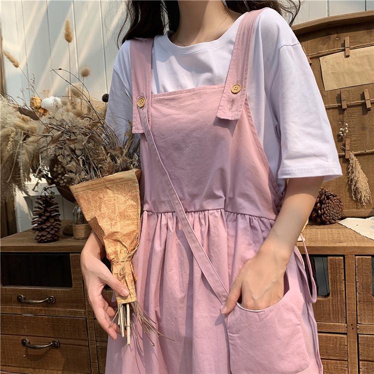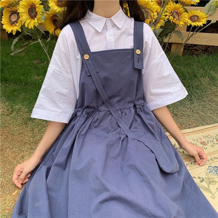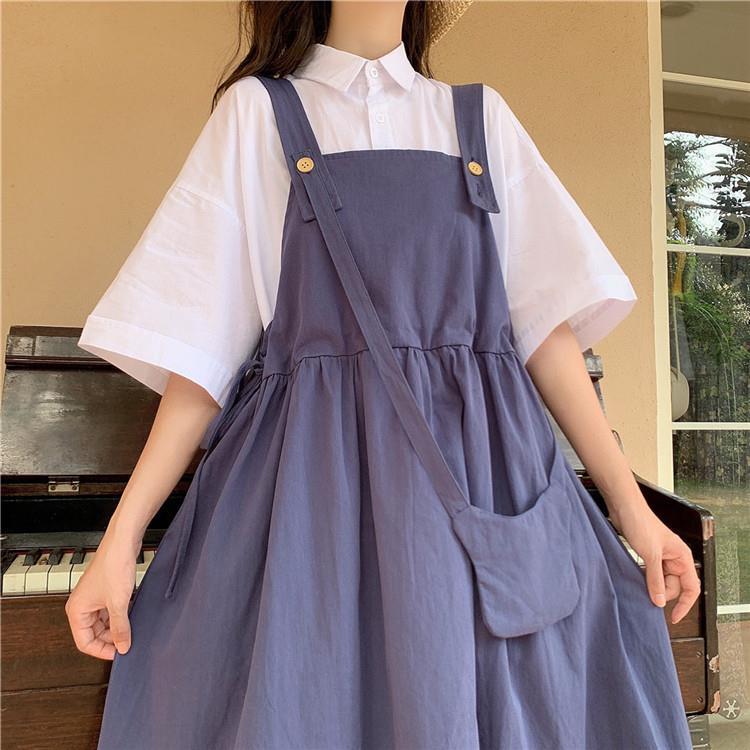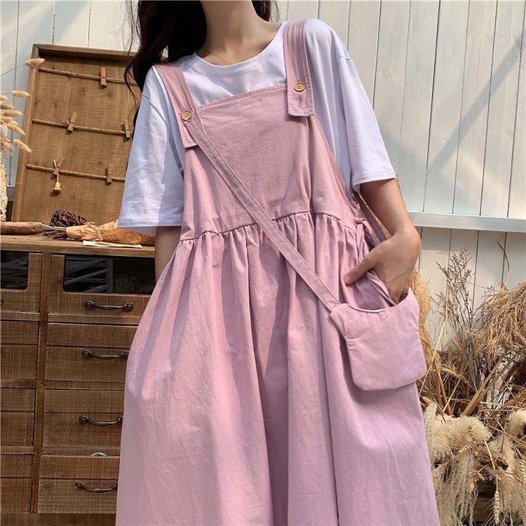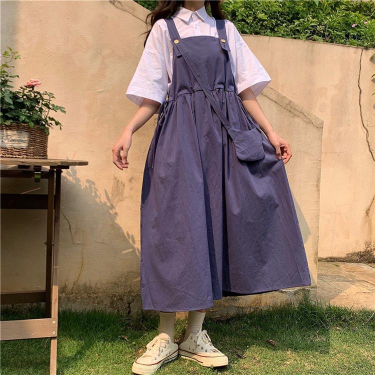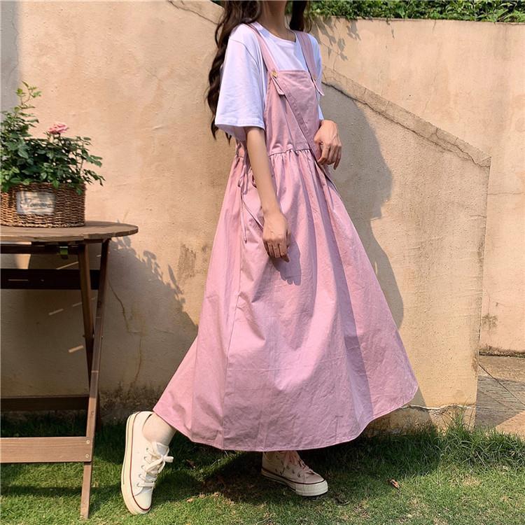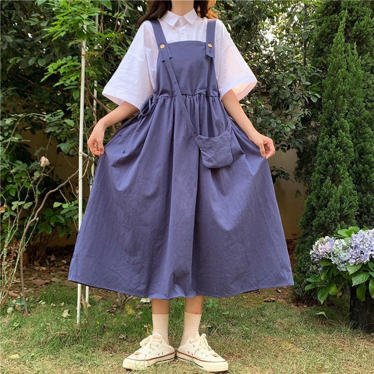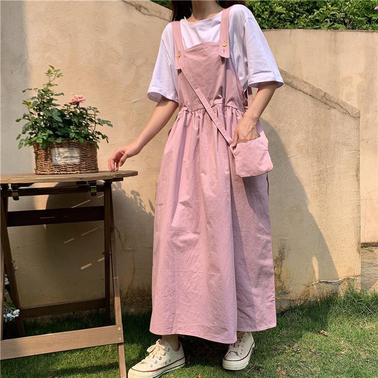 Vestido de tirantes estilo universitario estilo japonés, vestido largo para estudiantes, vestido de verano estilo coreano holgado, combinable, de longitud media, moderno