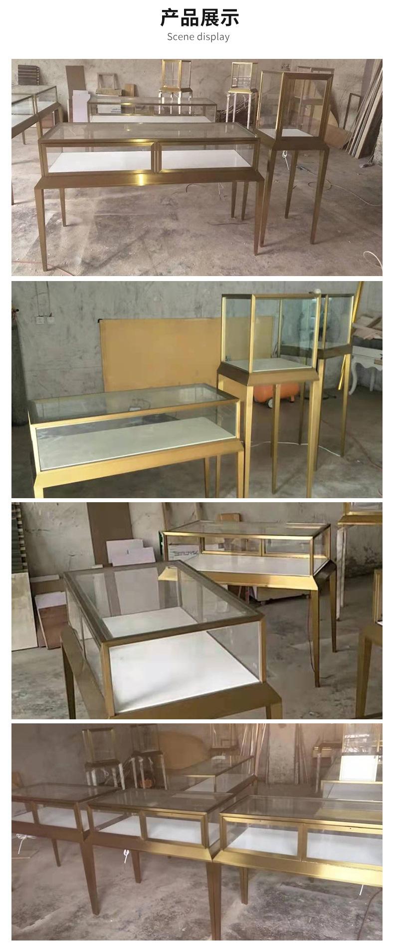 Vitrina de Exhibición de Joyería Personalizada Mostrador de Joyería de Acero Inoxidable Vitrina de Exhibición de Joyería Plateada Jade Oro Muebles de Hotel Mostrador de Museo