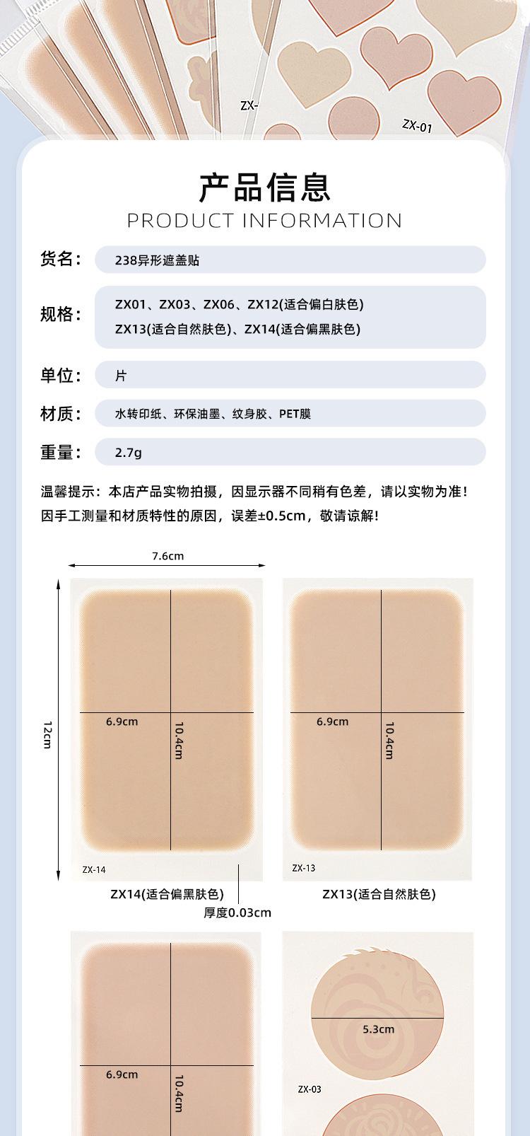 Nuevo Sticker Cubre Tatuaje Alienígena Corrector de Marcas de Nacimiento Cubre Cicatrices Largas Impermeable a Prueba de Sudor Delgado Invisible Sticker Cubre Cicatrices