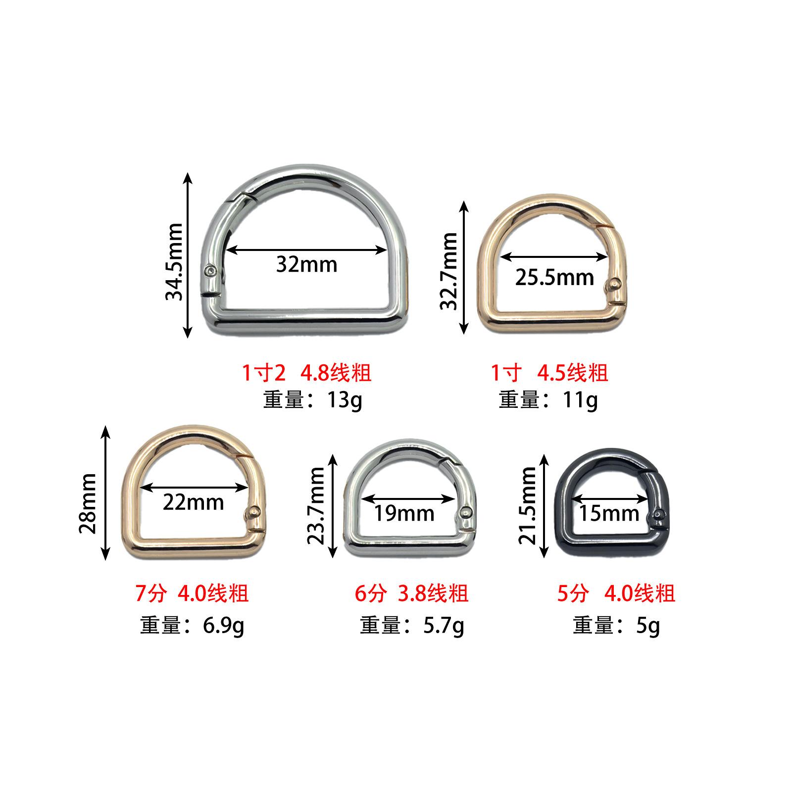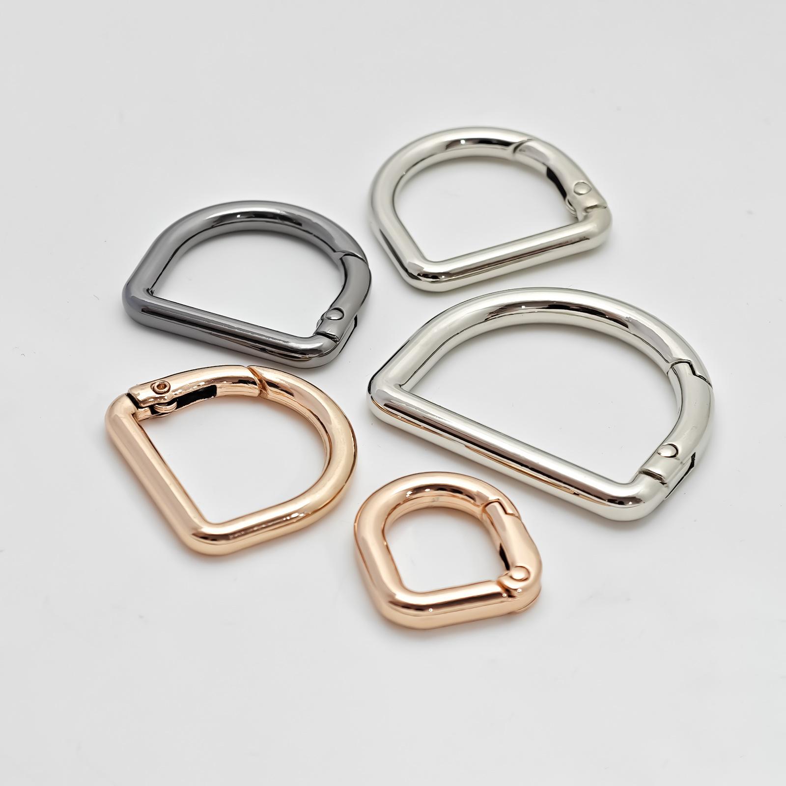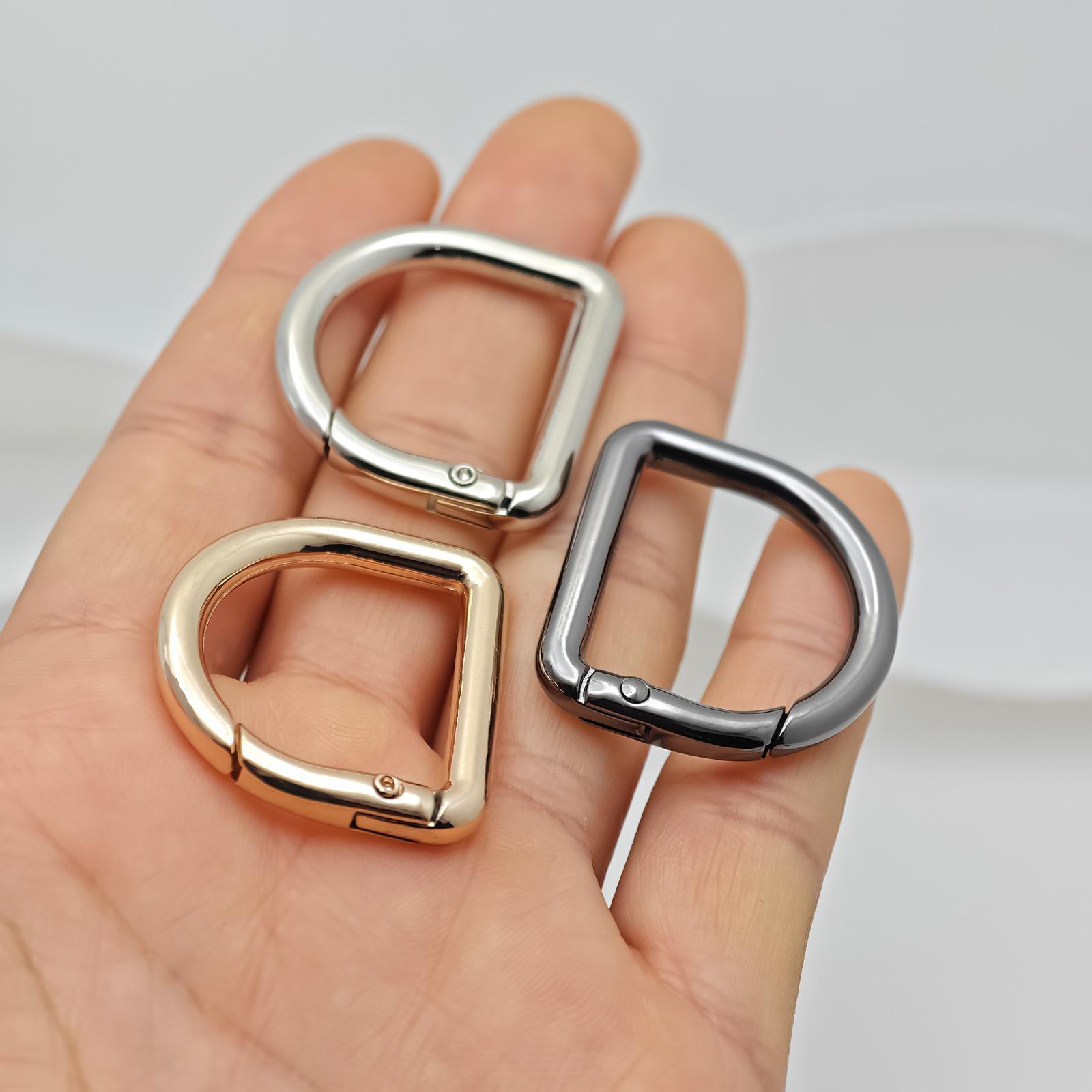 Hebilla de anillo de resorte en forma de D al por mayor en stock, hebilla de conexión de correa de aleación de zinc, hebilla de conexión de correa de hombro abierta con resorte, hebilla en D