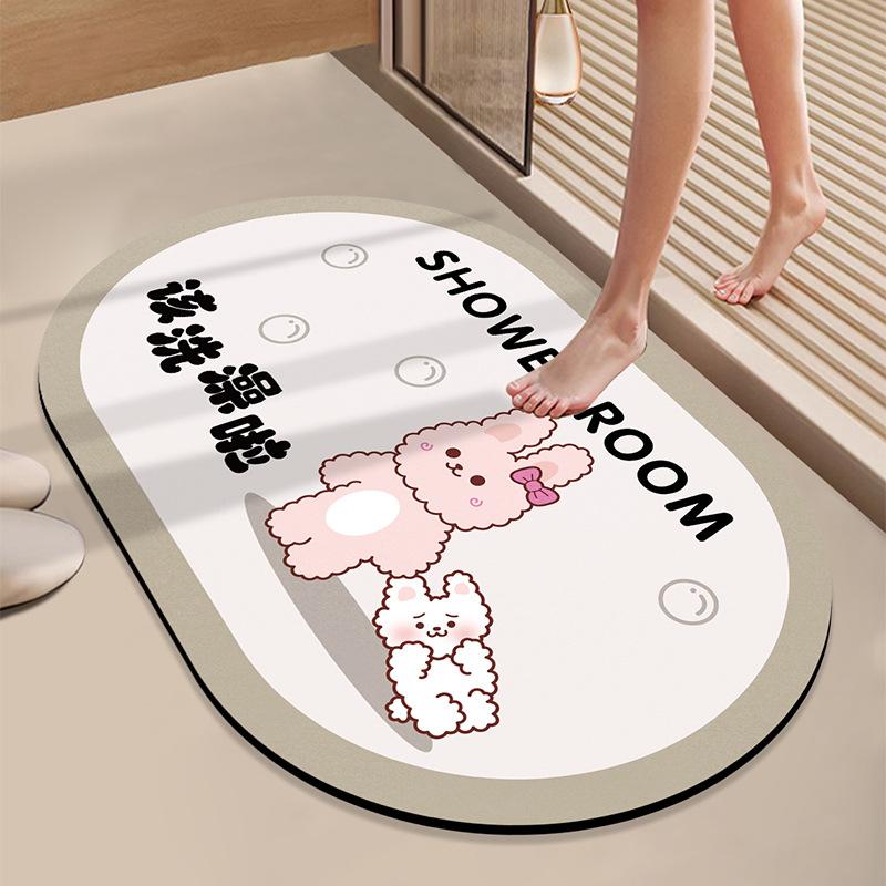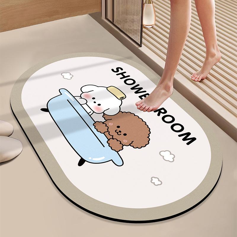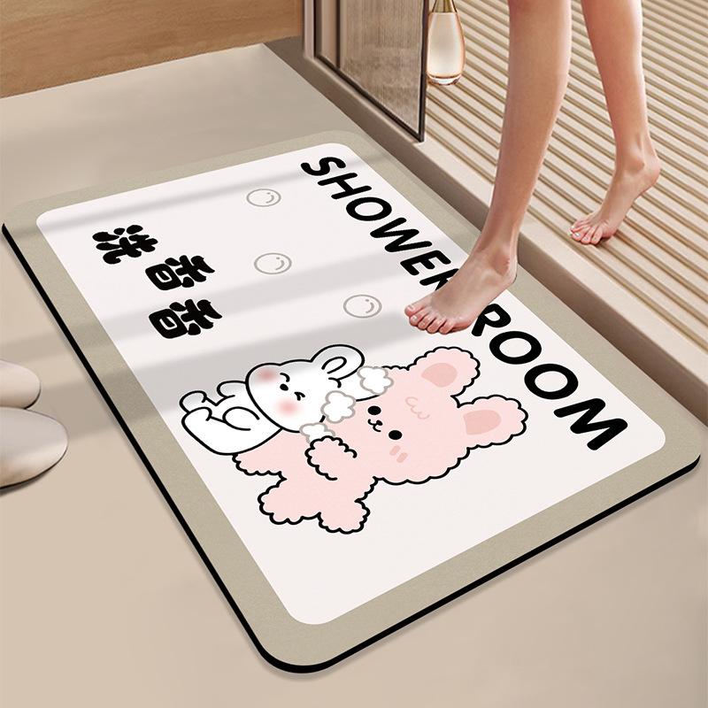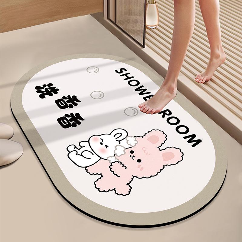 Alfombra de Piso de Baño de Barro Diatómico de Dibujos Animados Alfombra Absorbente Antideslizante para el Hogar Alfombra para Pies de Secado Rápido Alfombra para Puerta de Baño Alfombra de Fácil Cuidado