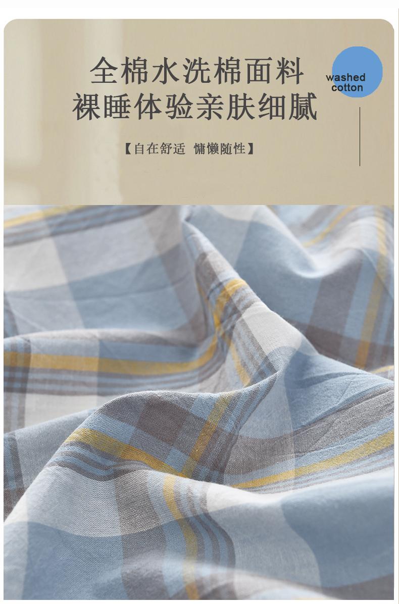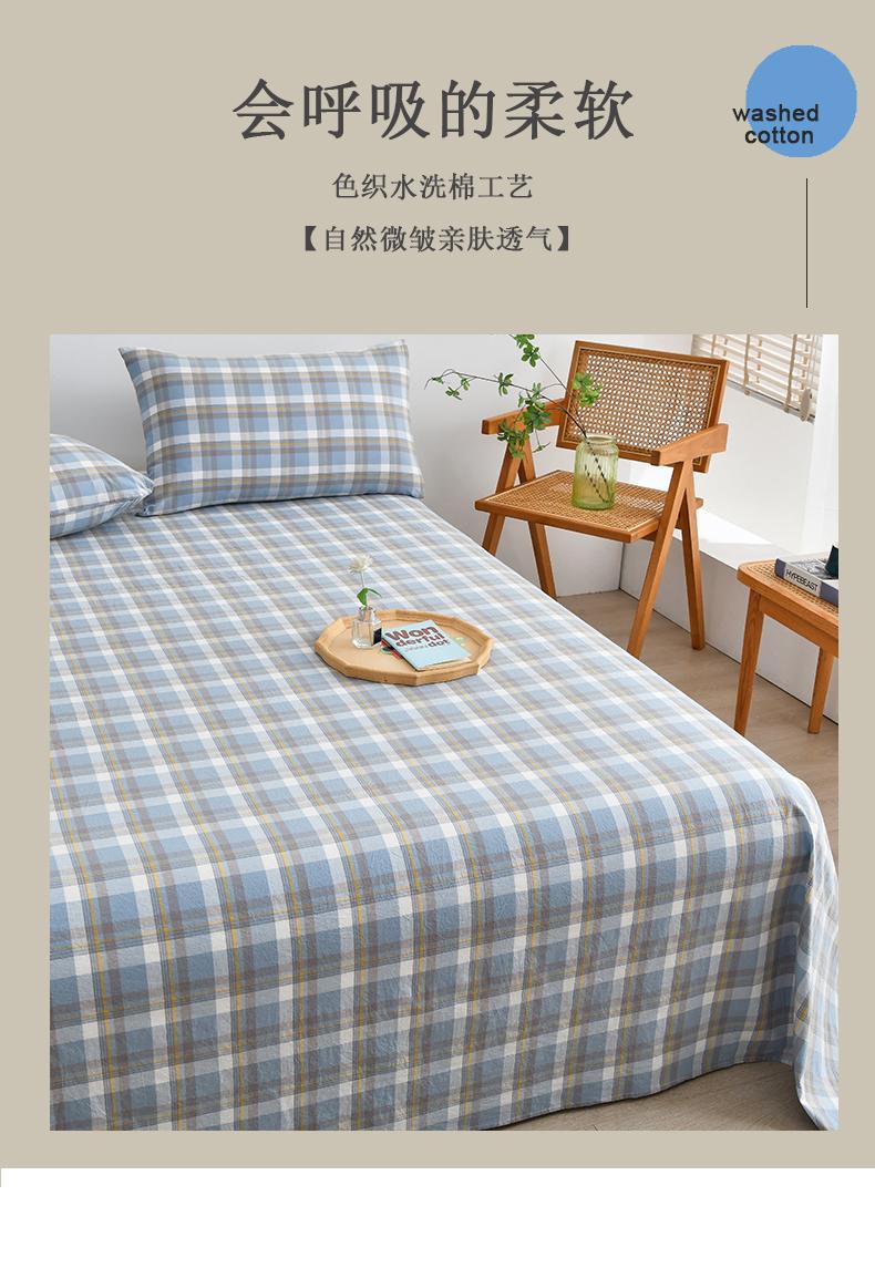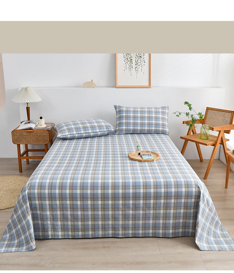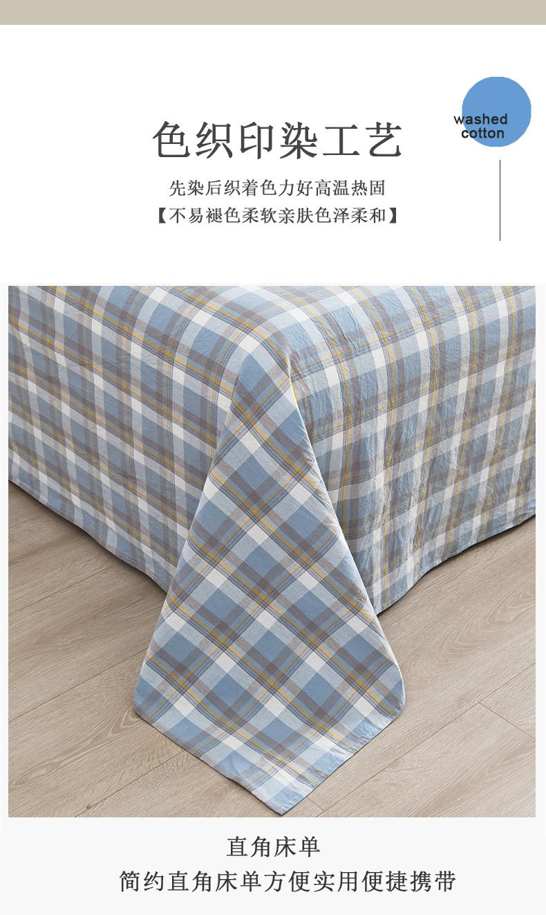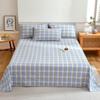 Sábana de algodón lavado de una pieza, edredón de algodón 100%, funda de almohada de tres piezas, para dormitorio de estudiantes, individual, a cuadros, color liso