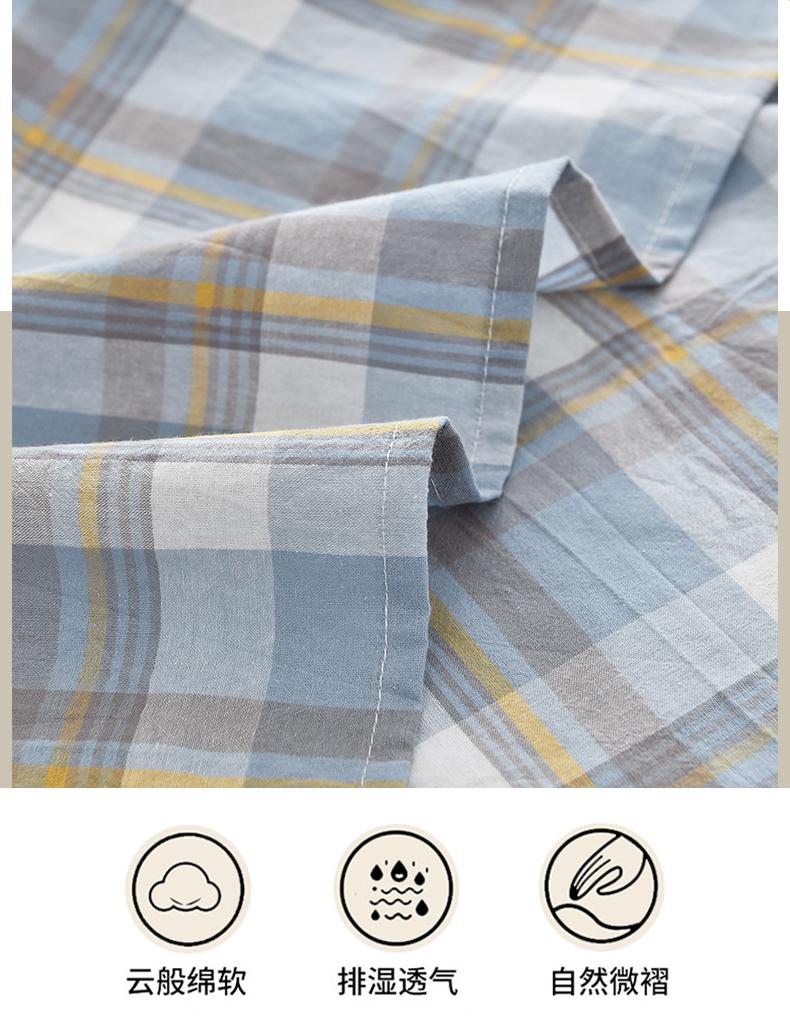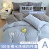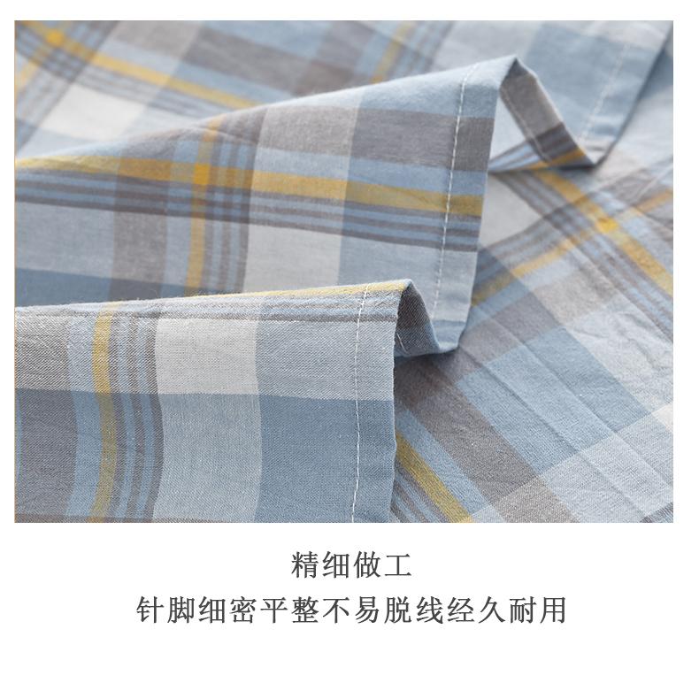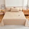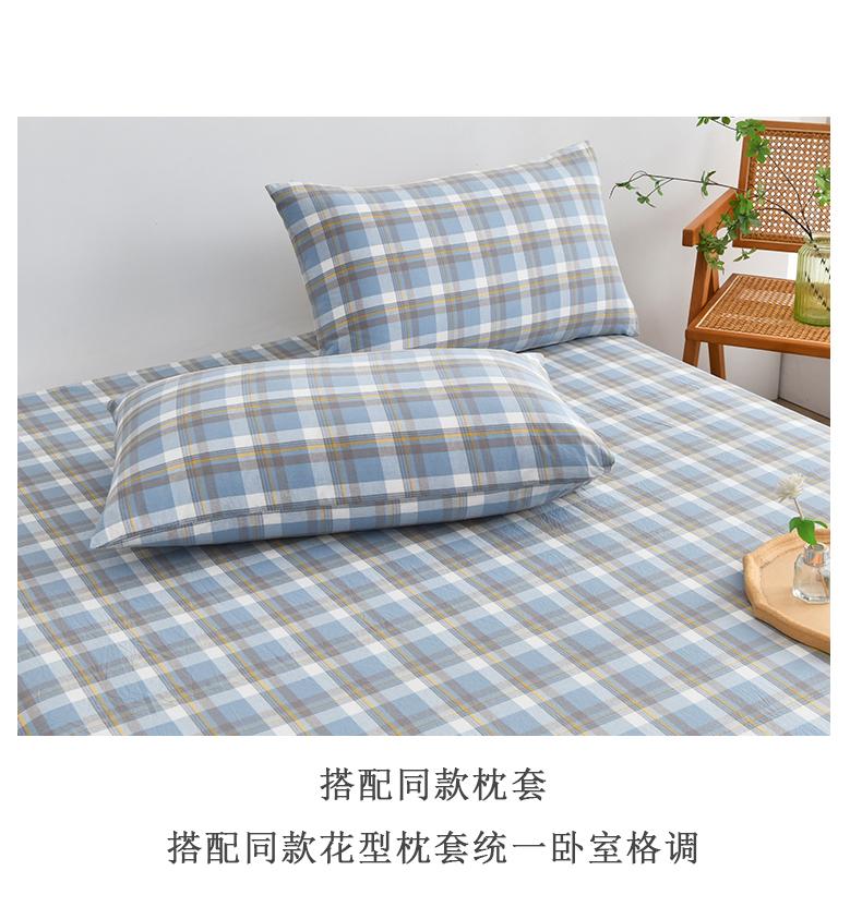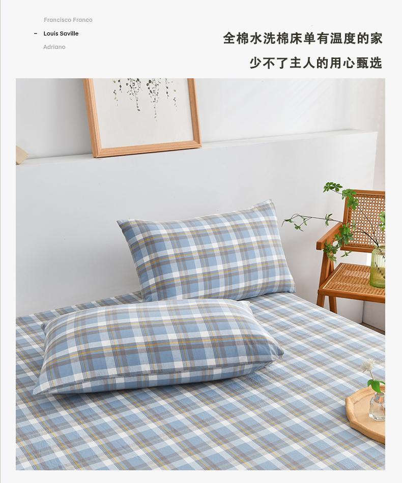 Sábana de algodón lavado de una pieza, edredón de algodón 100%, funda de almohada de tres piezas, para dormitorio de estudiantes, individual, a cuadros, color liso