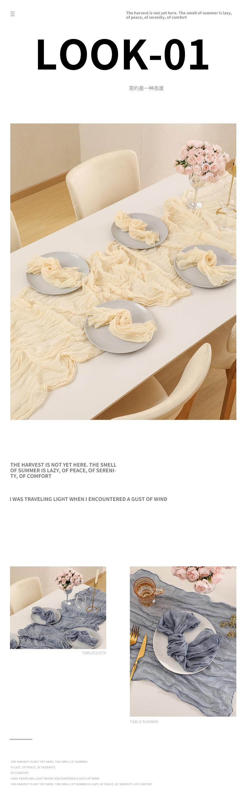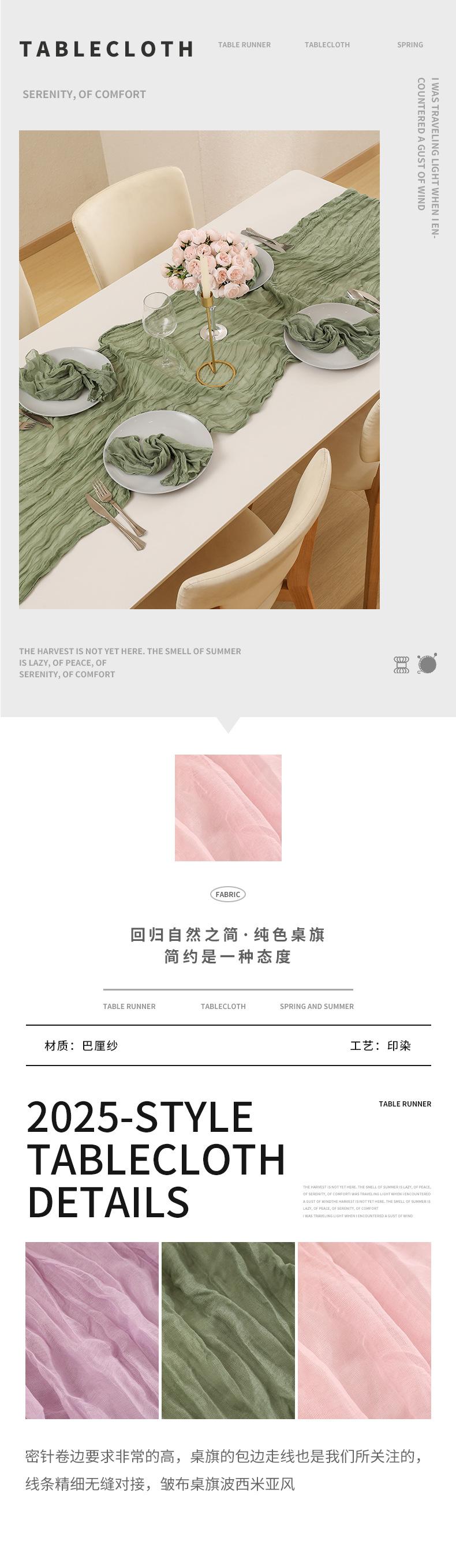 Camino de mesa seersucker 80-300cm peso 150g con bordes rizados en los cuatro lados