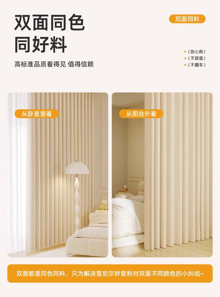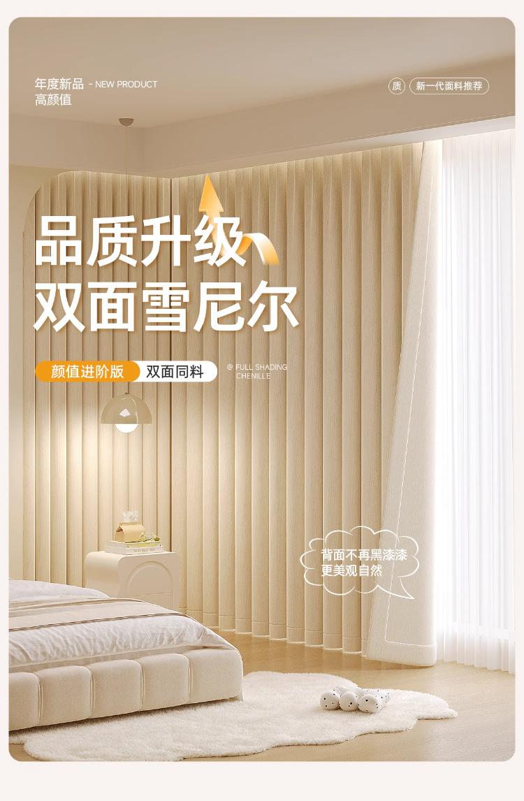 Nueva cortina de chenilla de doble cara de cachemira para dormitorio, estilo crema, Shaoxing Keqiao, cortina personalizada para toda la casa.